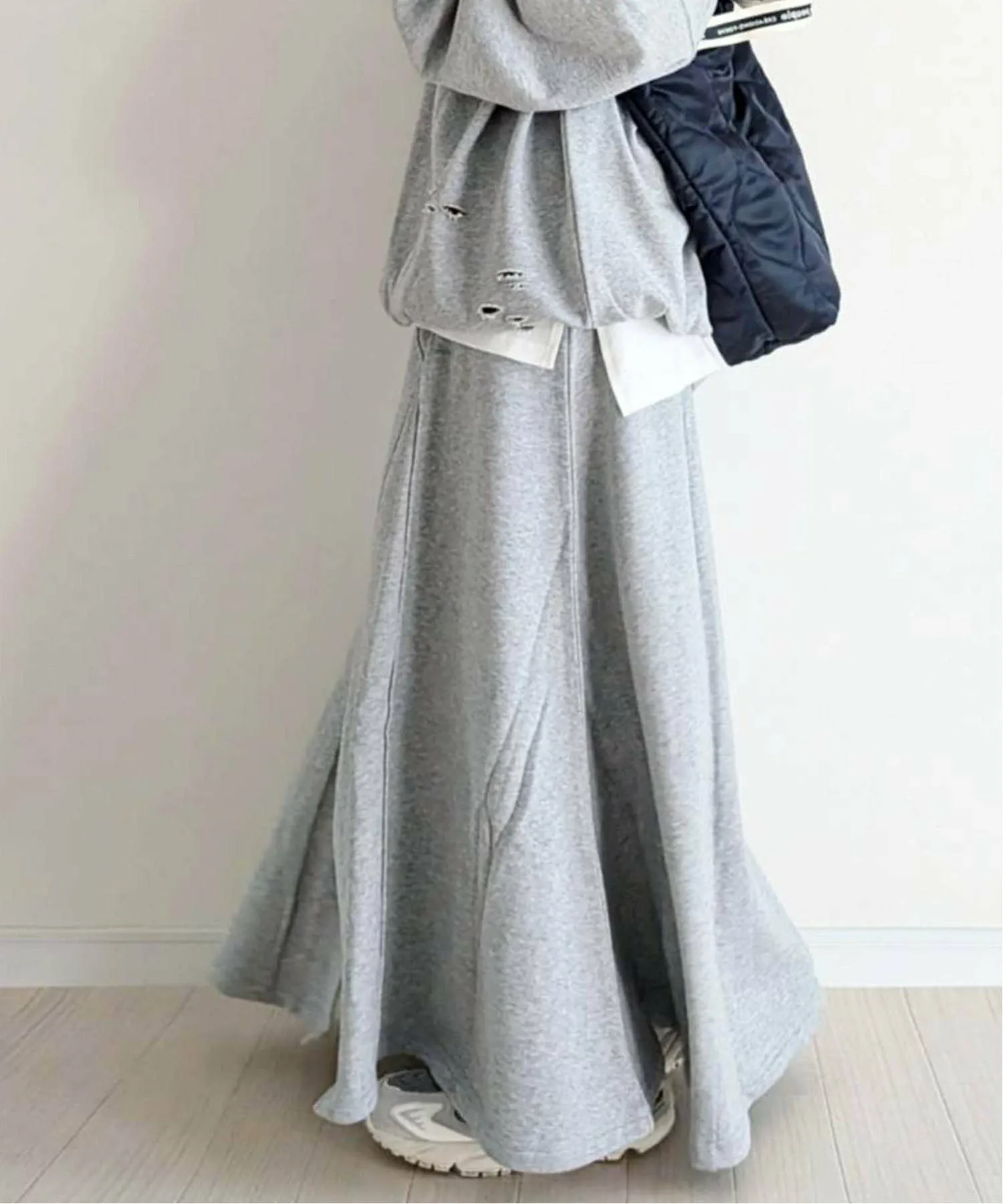 Силуэт красивый, поэтому она также мило смотрится в сочетании с объемным трикотажем♪