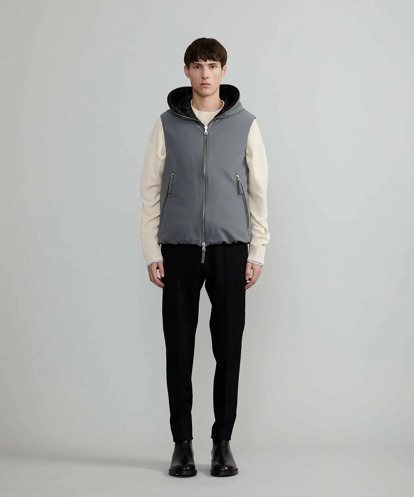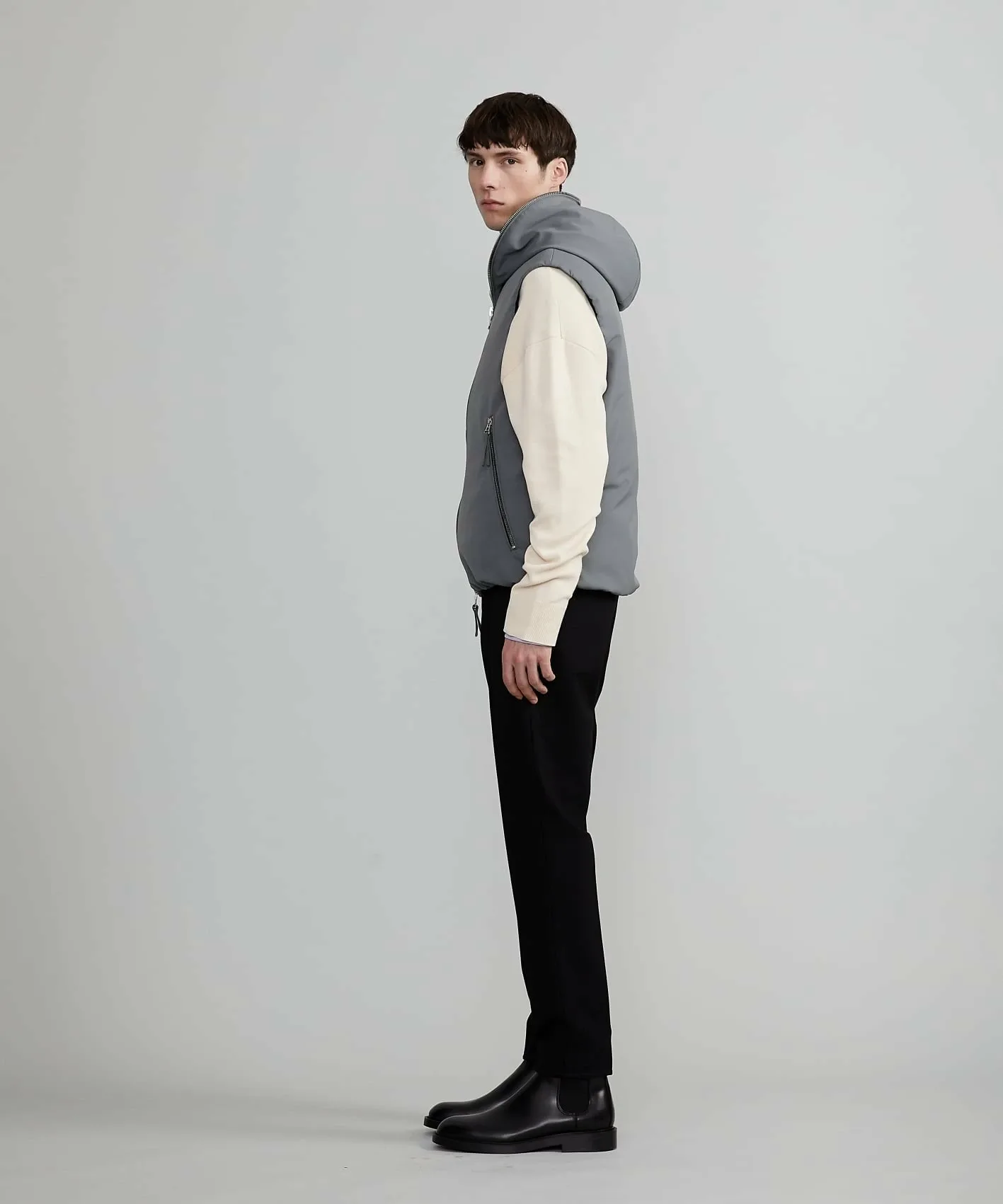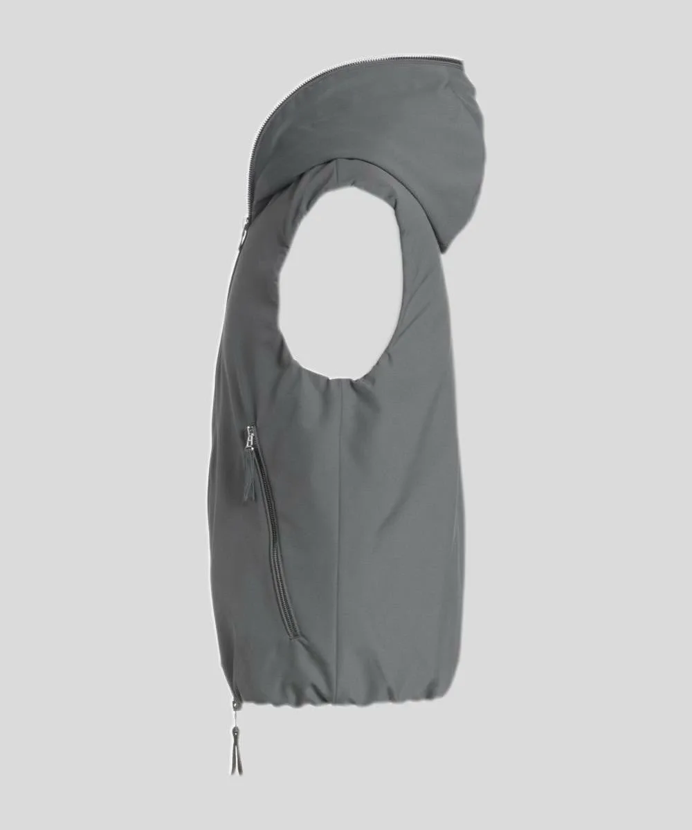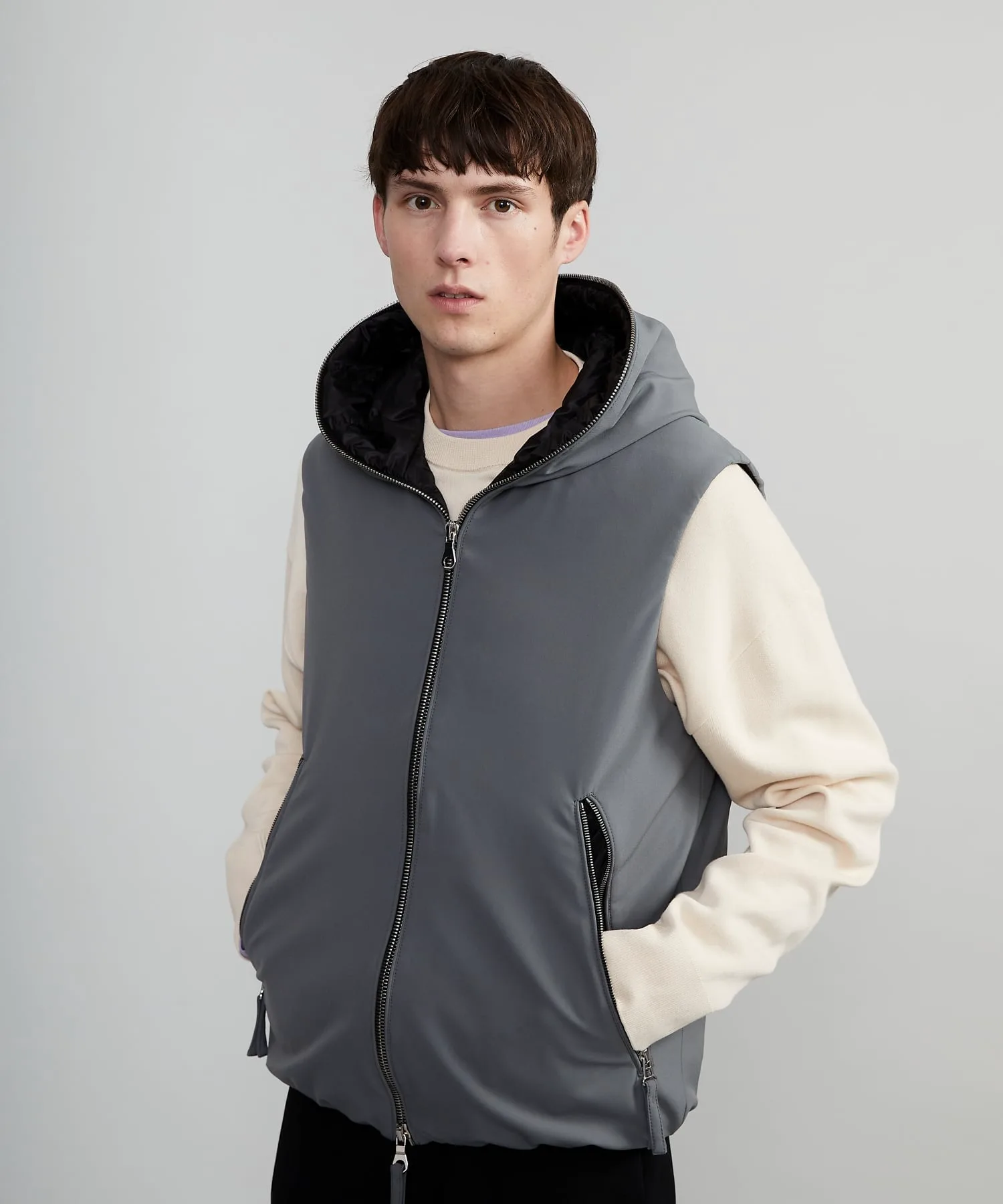 Эта базовая однотонная жилетка-куртка создает современное впечатление и придает образу утонченность и взрослую привлекательность.