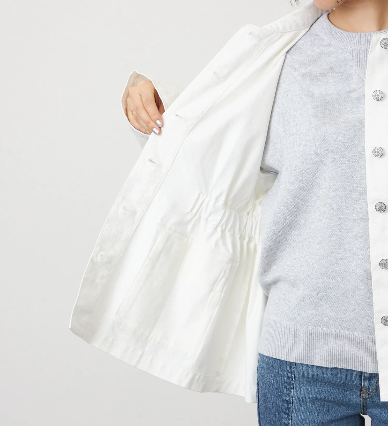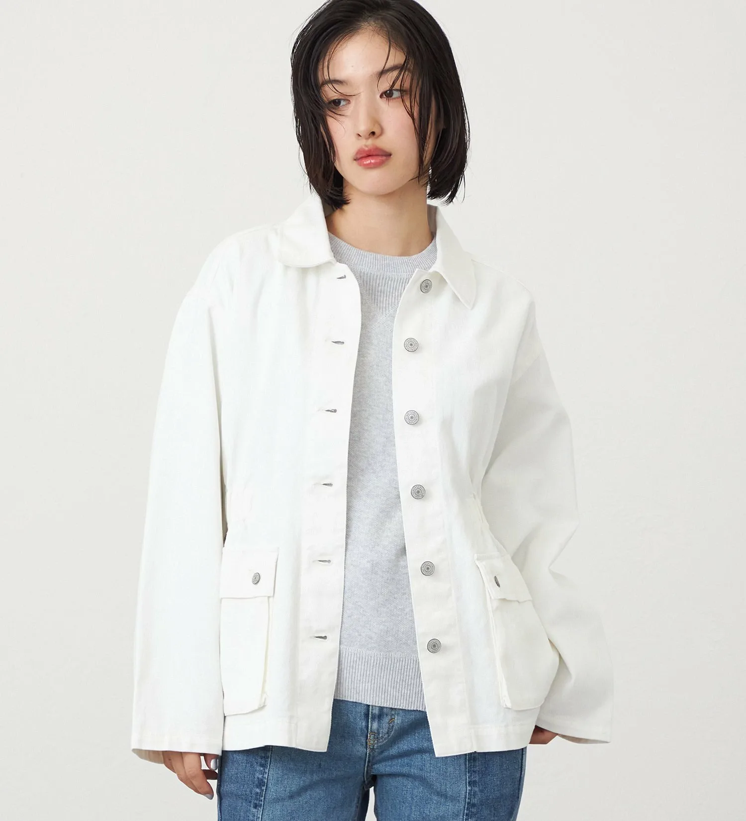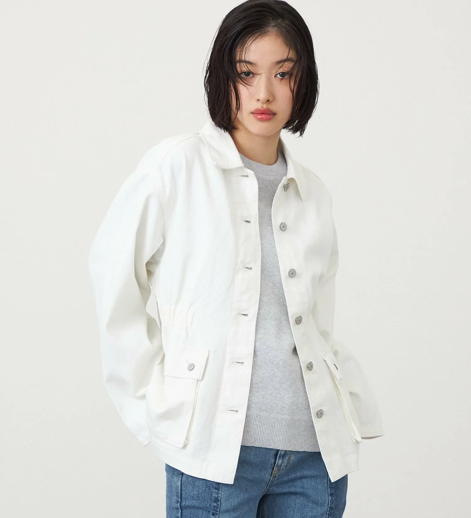 Светло-голубой : Этот 100% хлопковый деним, изготовленный из плотно скрученной пряжи, имеет сухую текстуру. Его минимальная неровность придает ему изысканный вид, не делая его слишком повседневным. Оба цвета легкие и идеально подходят в качестве легкой весенней верхней одежды.