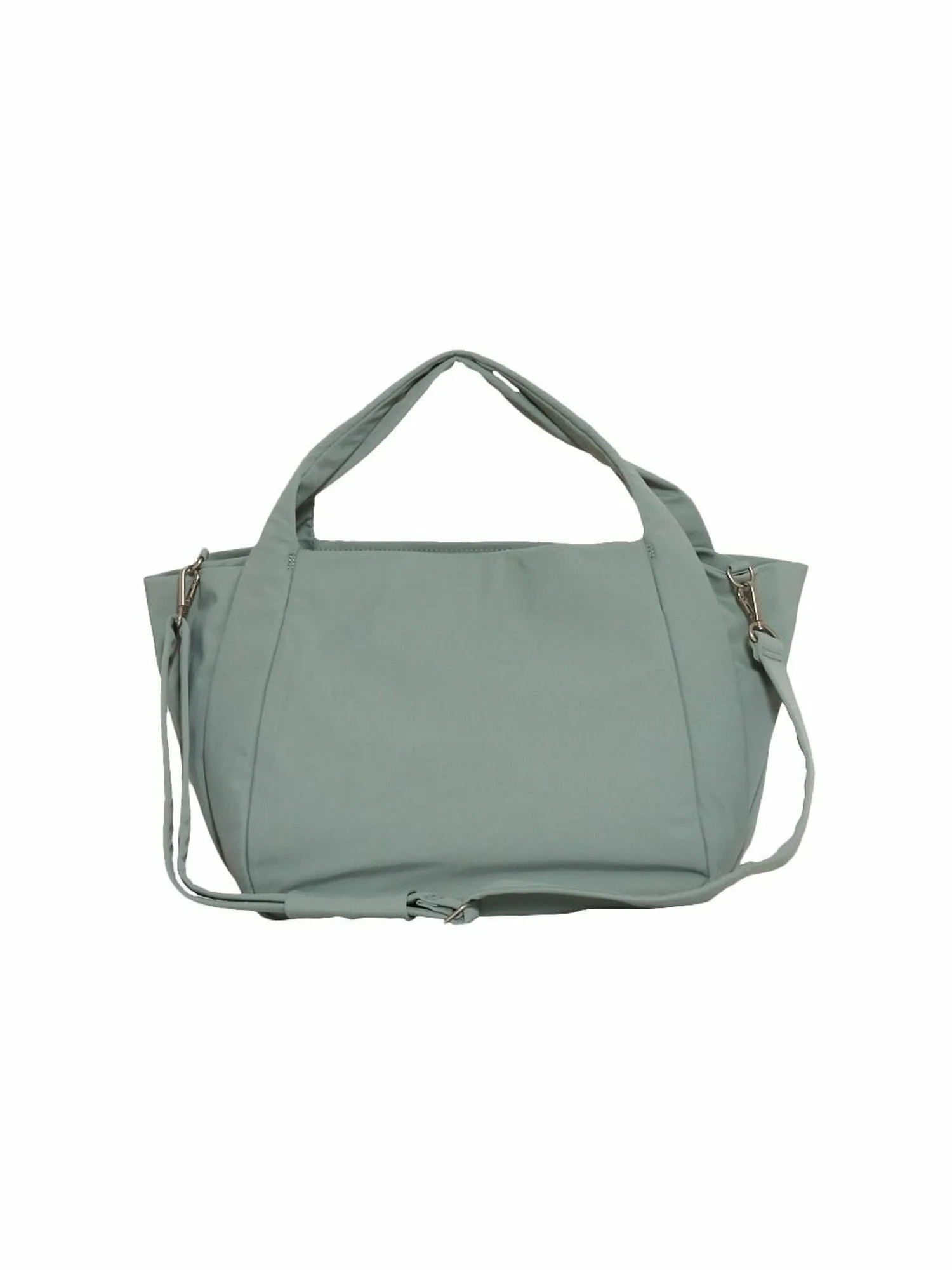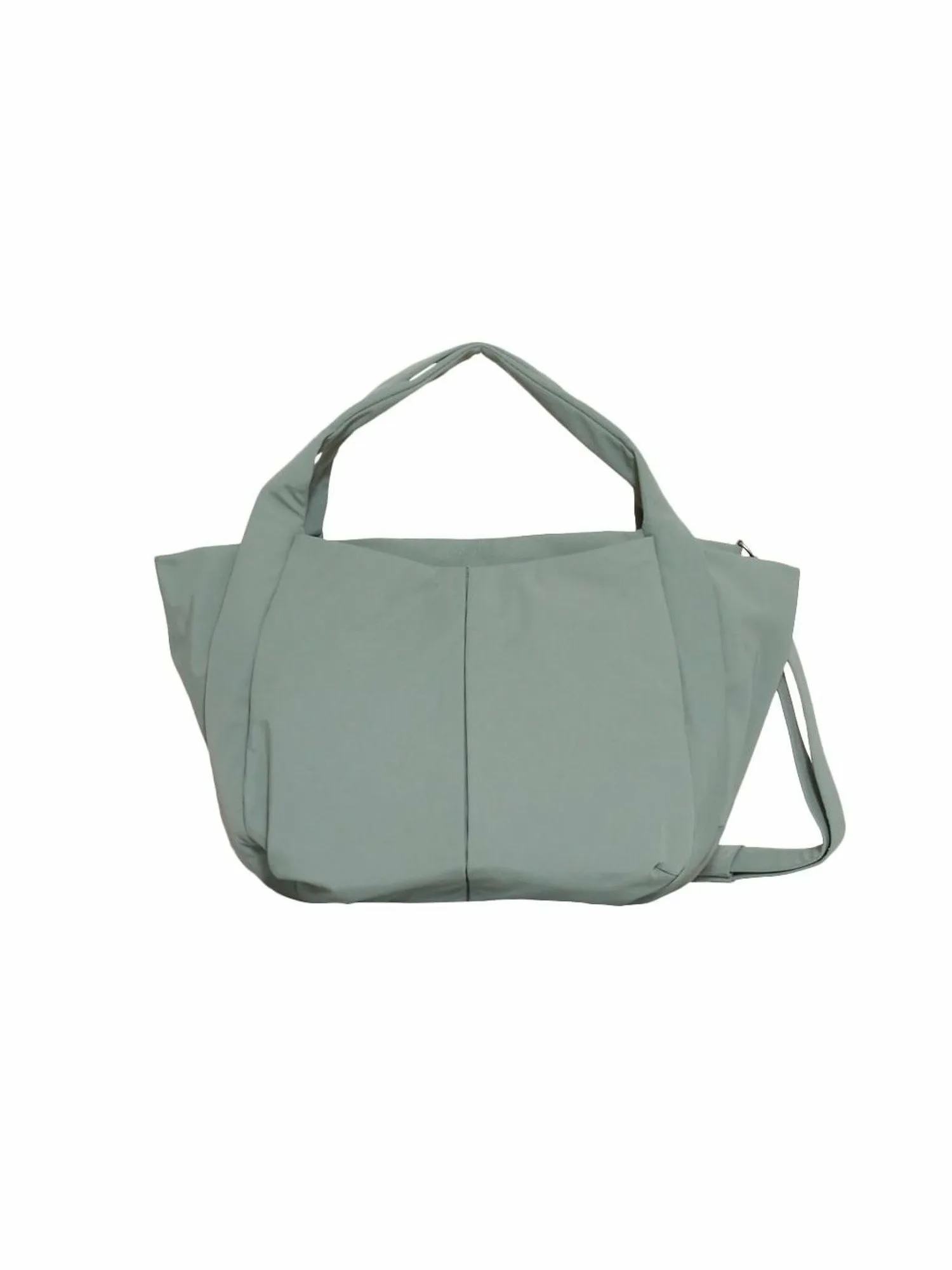 Ручки сконструированы таким образом, чтобы складываться внутрь сумки, сохраняя свою форму. Карманы расположены спереди и по бокам для удобной организации и быстрого доступа к вашим вещам. Плечевой ремень сумки-тоут достаточно длинный, чтобы носить ее в руке, а съемный длинный плечевой ремень входит в комплект для большей универсальности. Плотная тканая ткань из переработанного нейлона имеет легкий блеск и слегка матовую текстуру, что позволяет легко сочетать ее с любым нарядом. Хотя сумка может выглядеть громоздкой, легкая и тонкая ткань дополняет повседневный стиль.