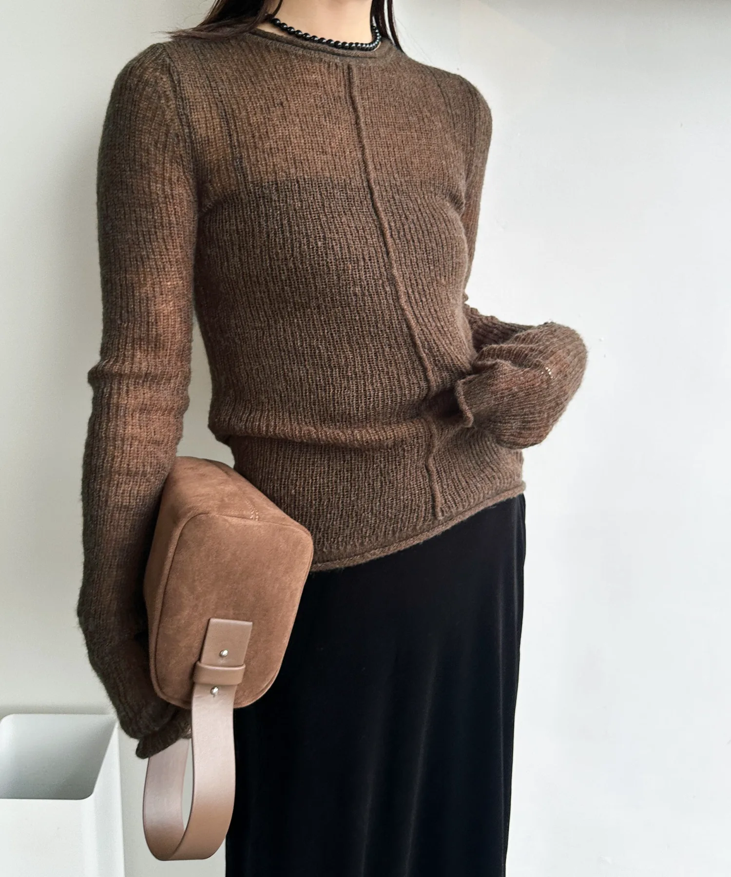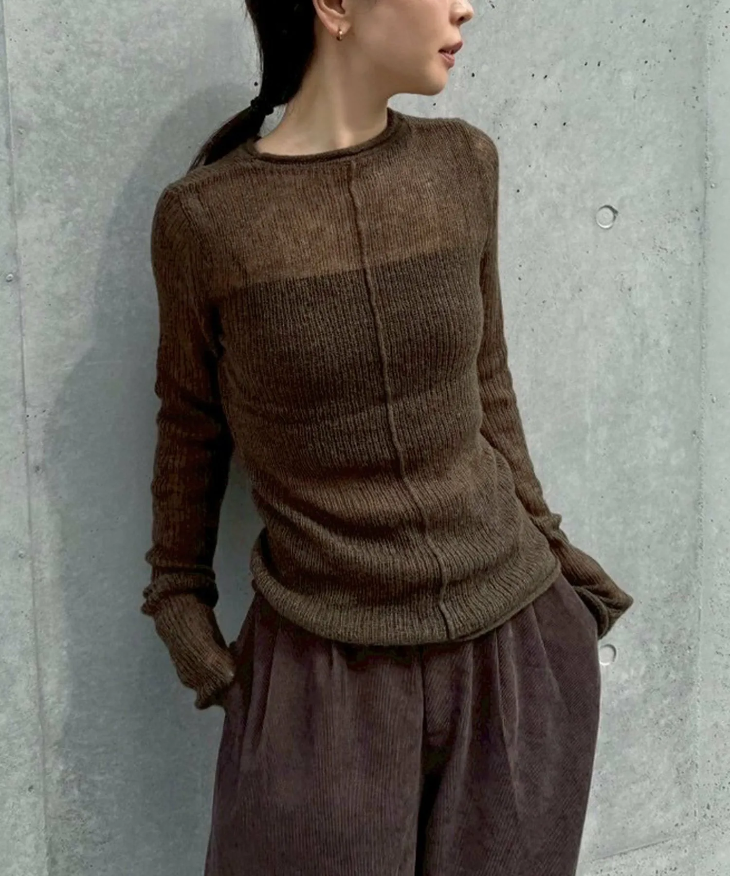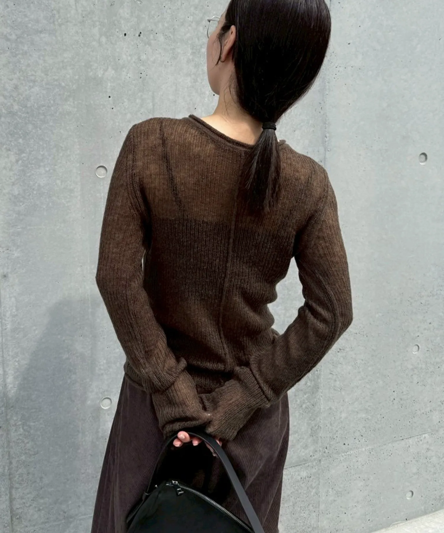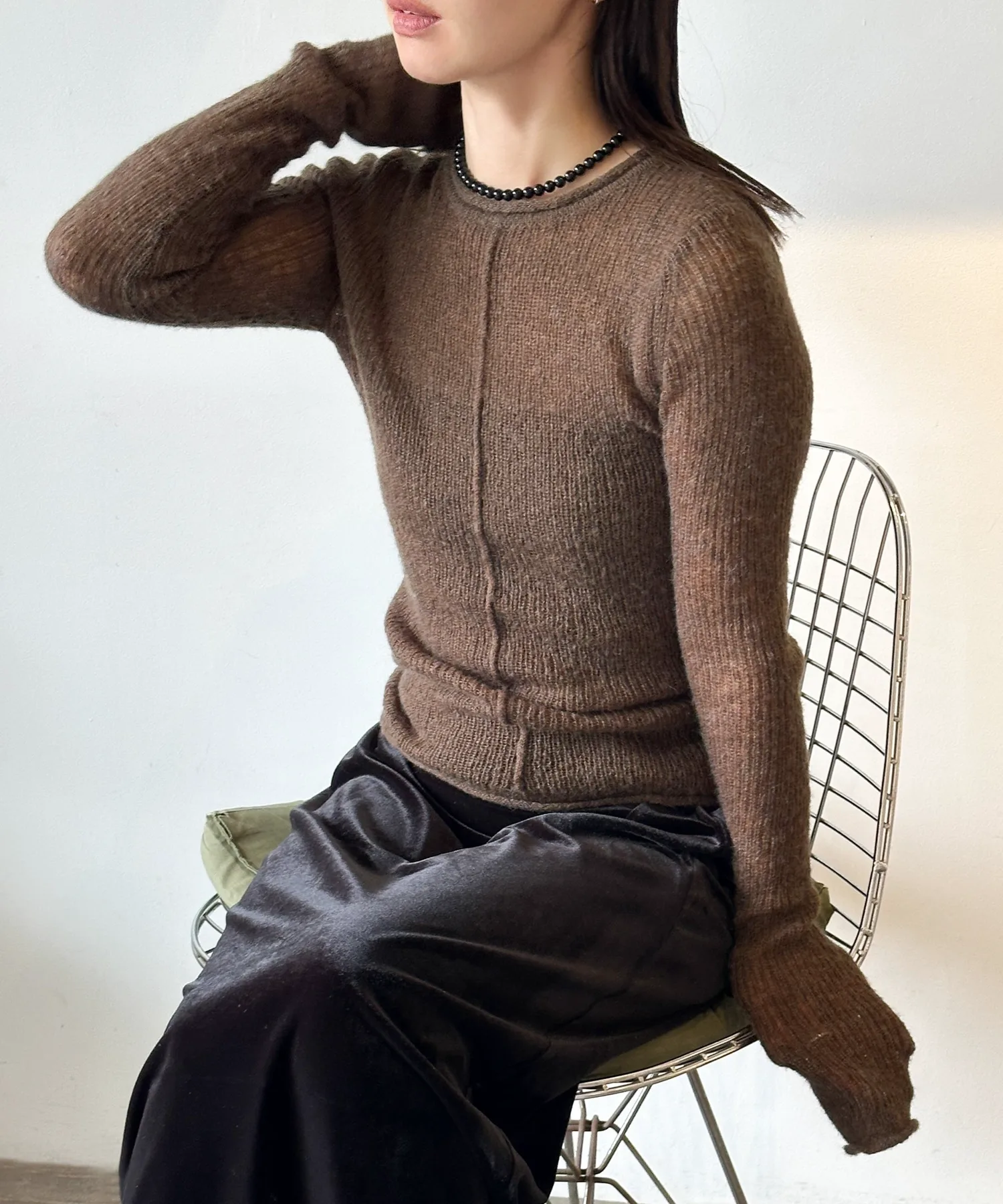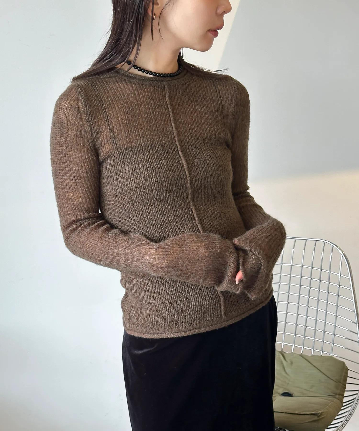Прозрачный трикотаж, излучающий утонченность и зрелость, подчеркивает сезонное настроение.