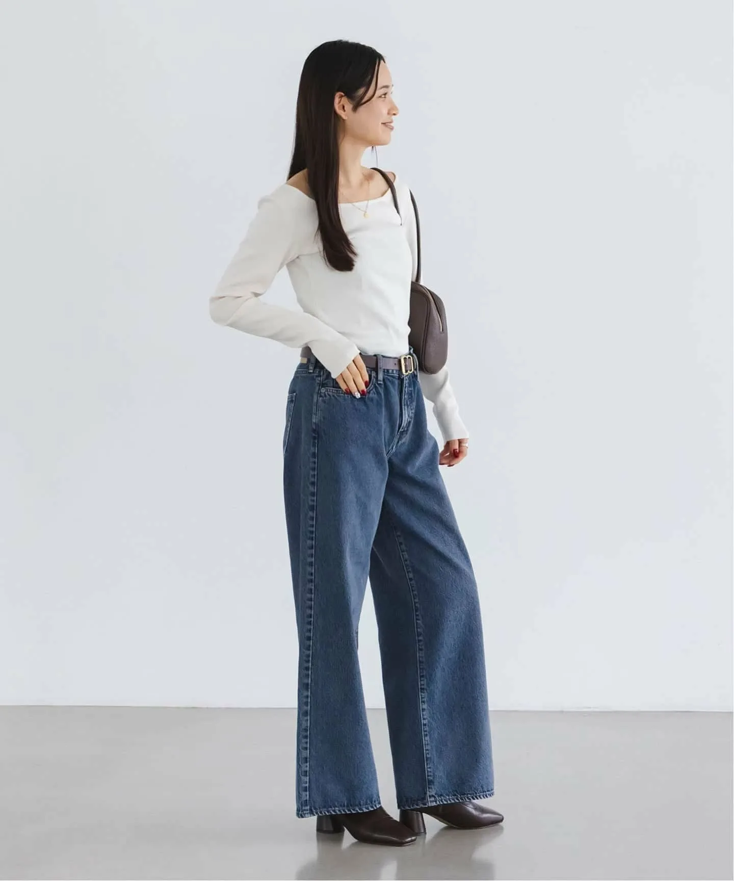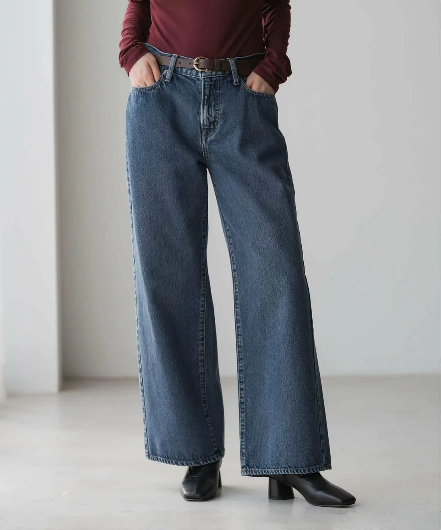 Синий оттенок дополняет осенние и зимние стили, не делая их слишком повседневными, позволяя вам наслаждаться изысканным стилем джинсов, идеально подходящим для женщин зрелого возраста.