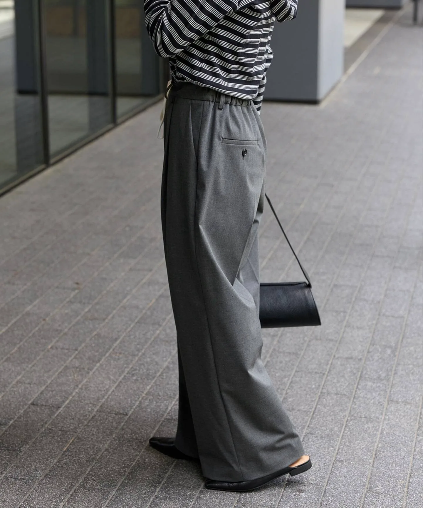 Эти брюки изготовлены из мягкого, эластичного, тонкого материала, похожего на костюмный, что придает им аккуратный и опрятный вид, а складки обеспечивают узкую, широкую посадку.