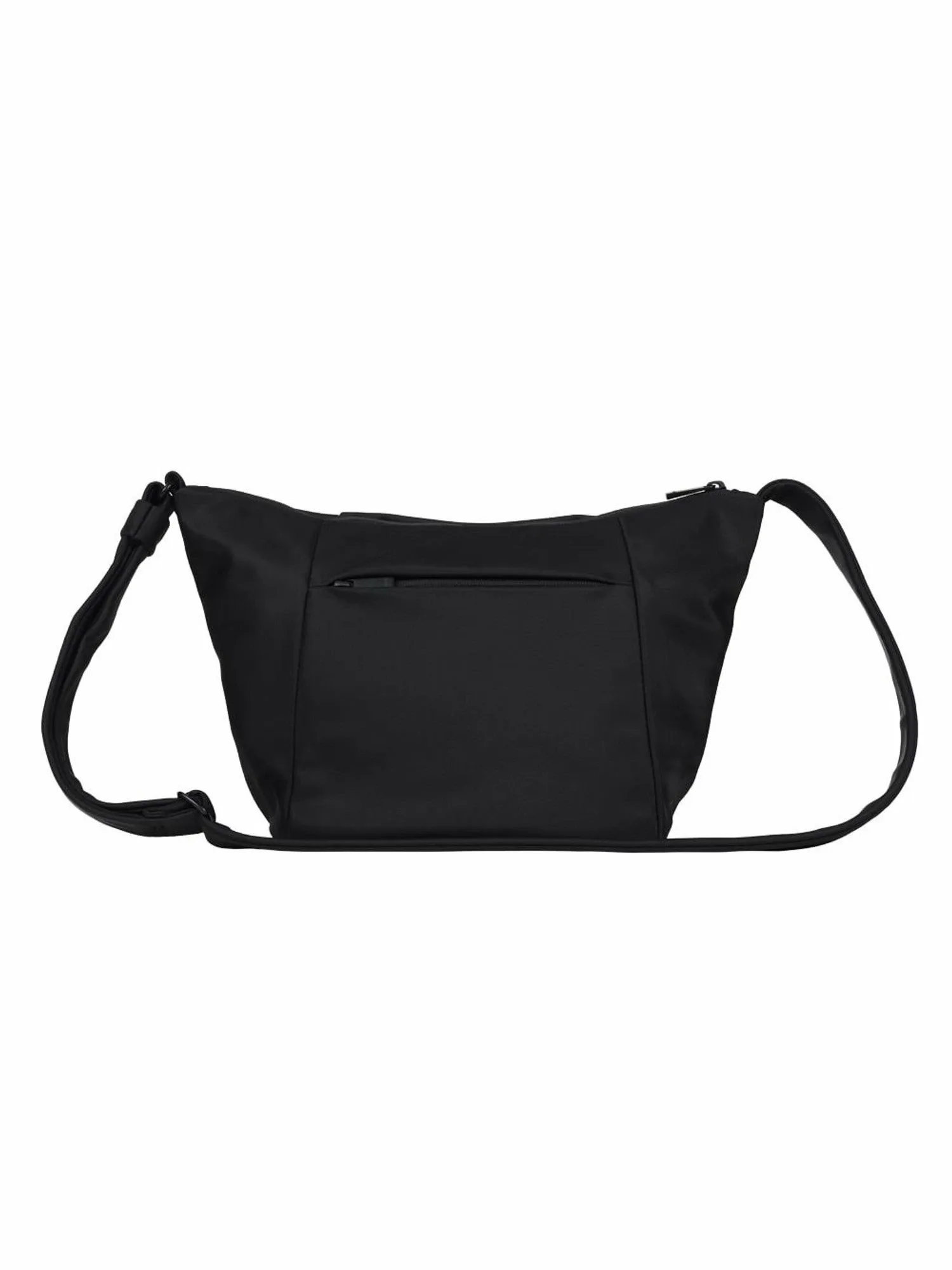 Сумка через плечо: форма перевернутой трапеции обеспечивает широкое отверстие, а сзади есть карман на молнии для дополнительной функциональности.