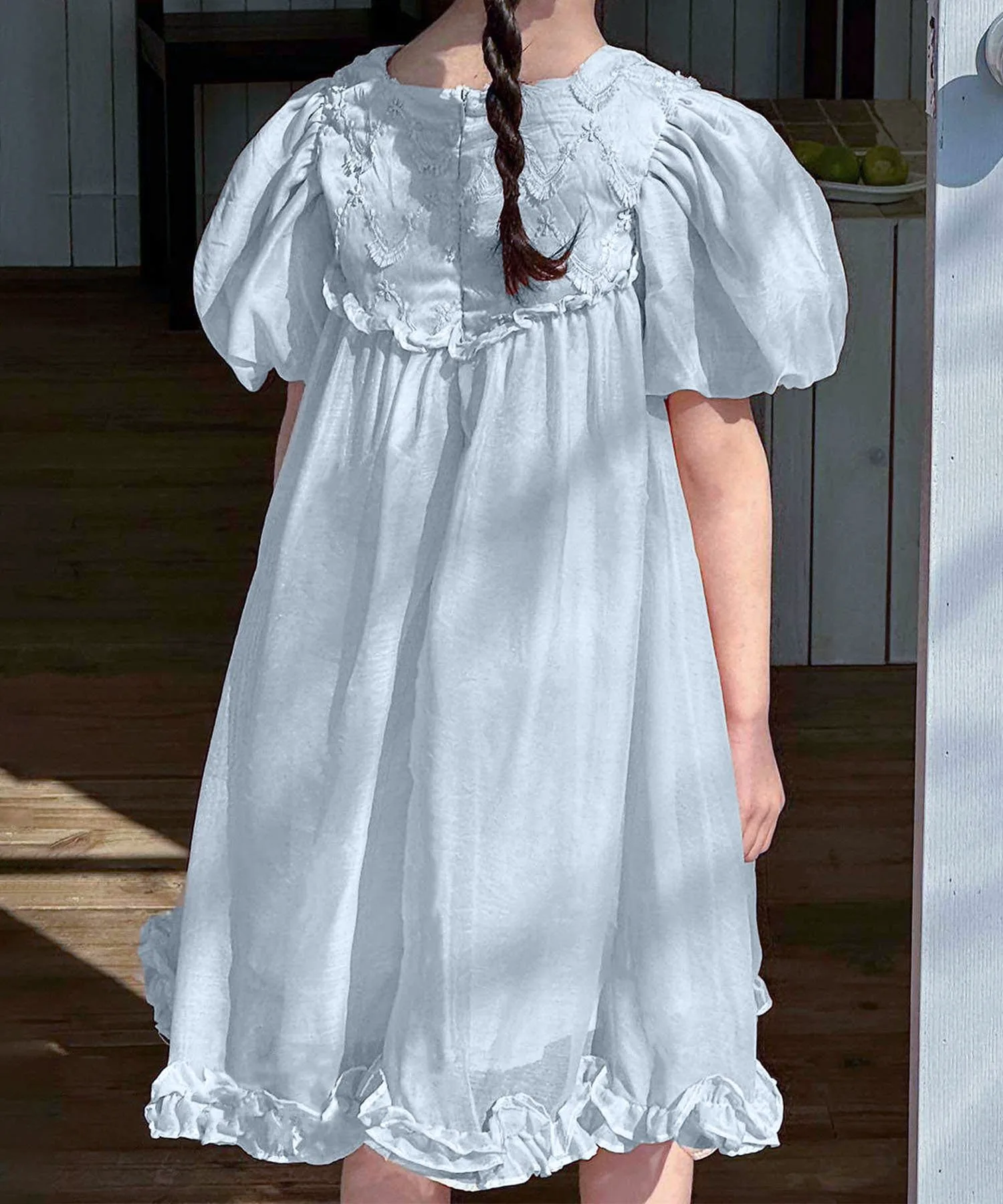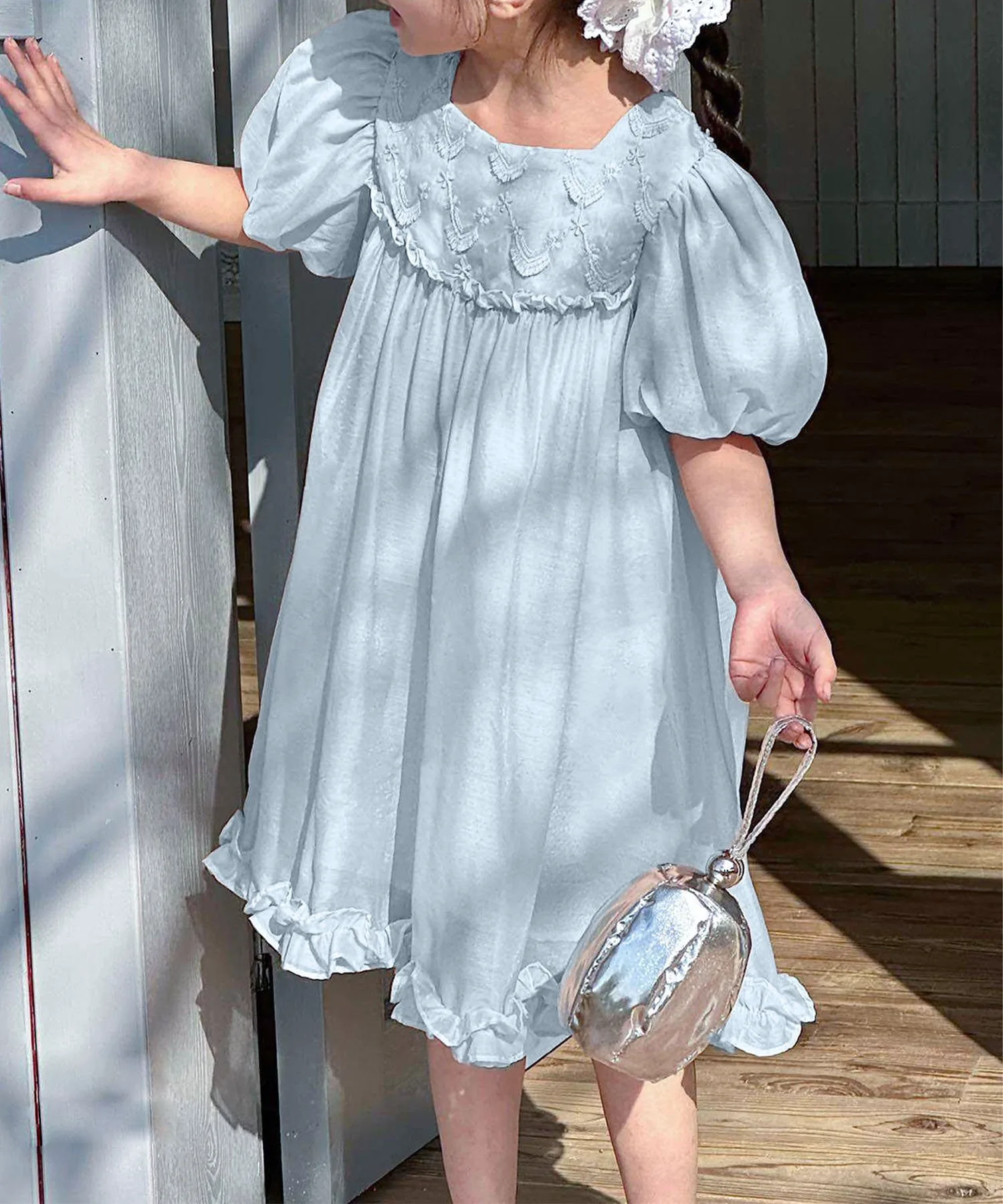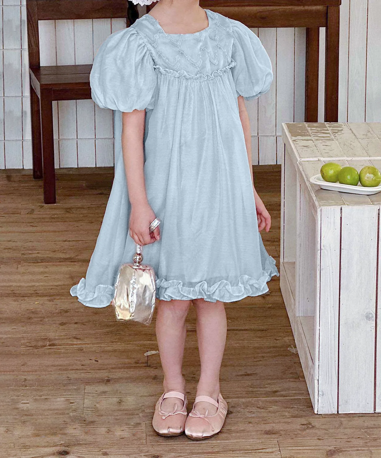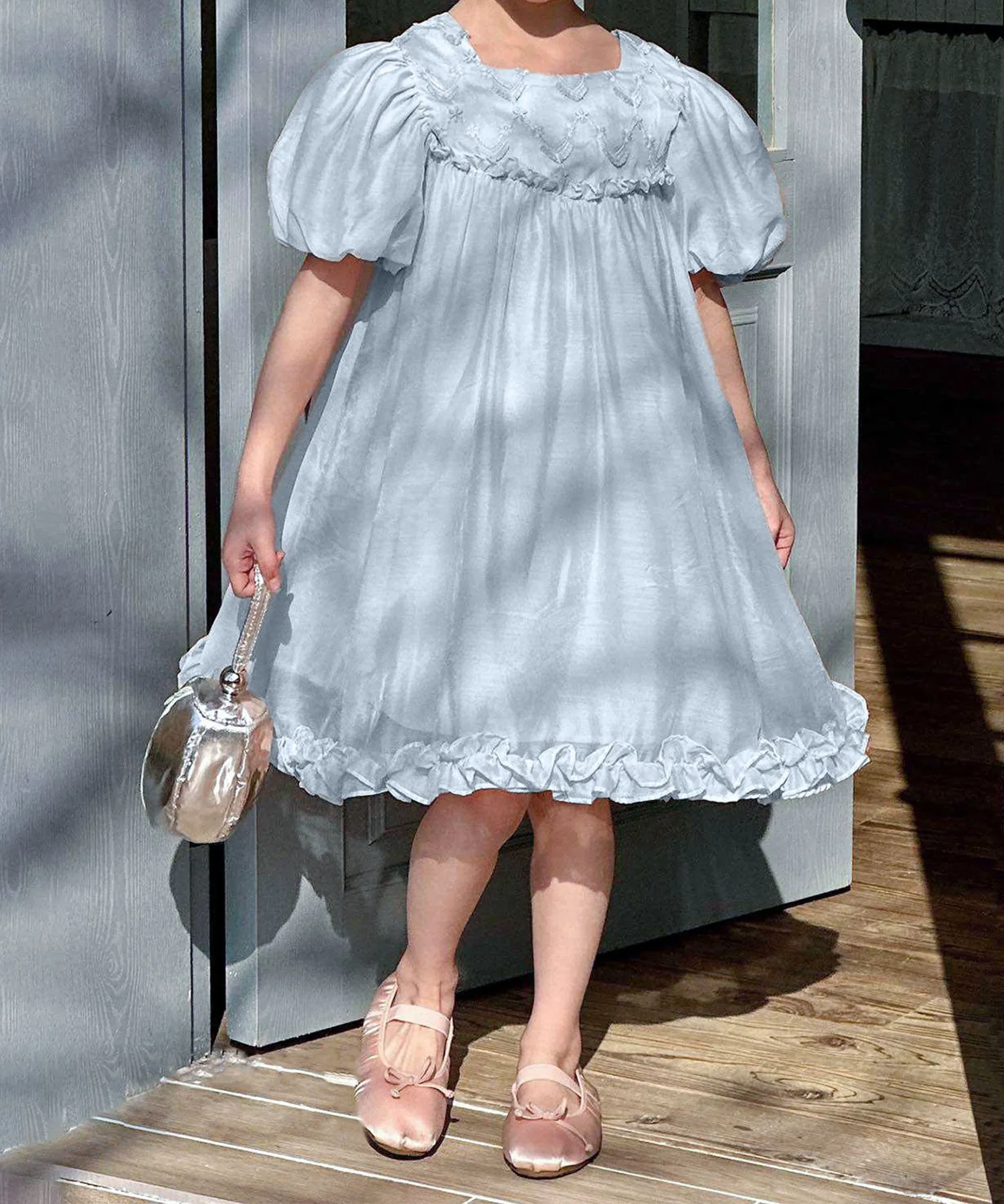 Объемные рукава-фонарики добавляют модный штрих, делая его идеальным для особых случаев.
