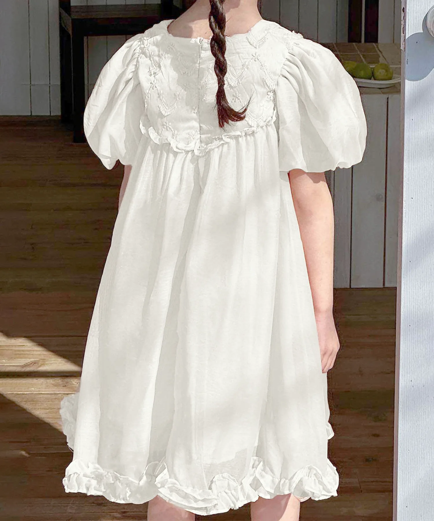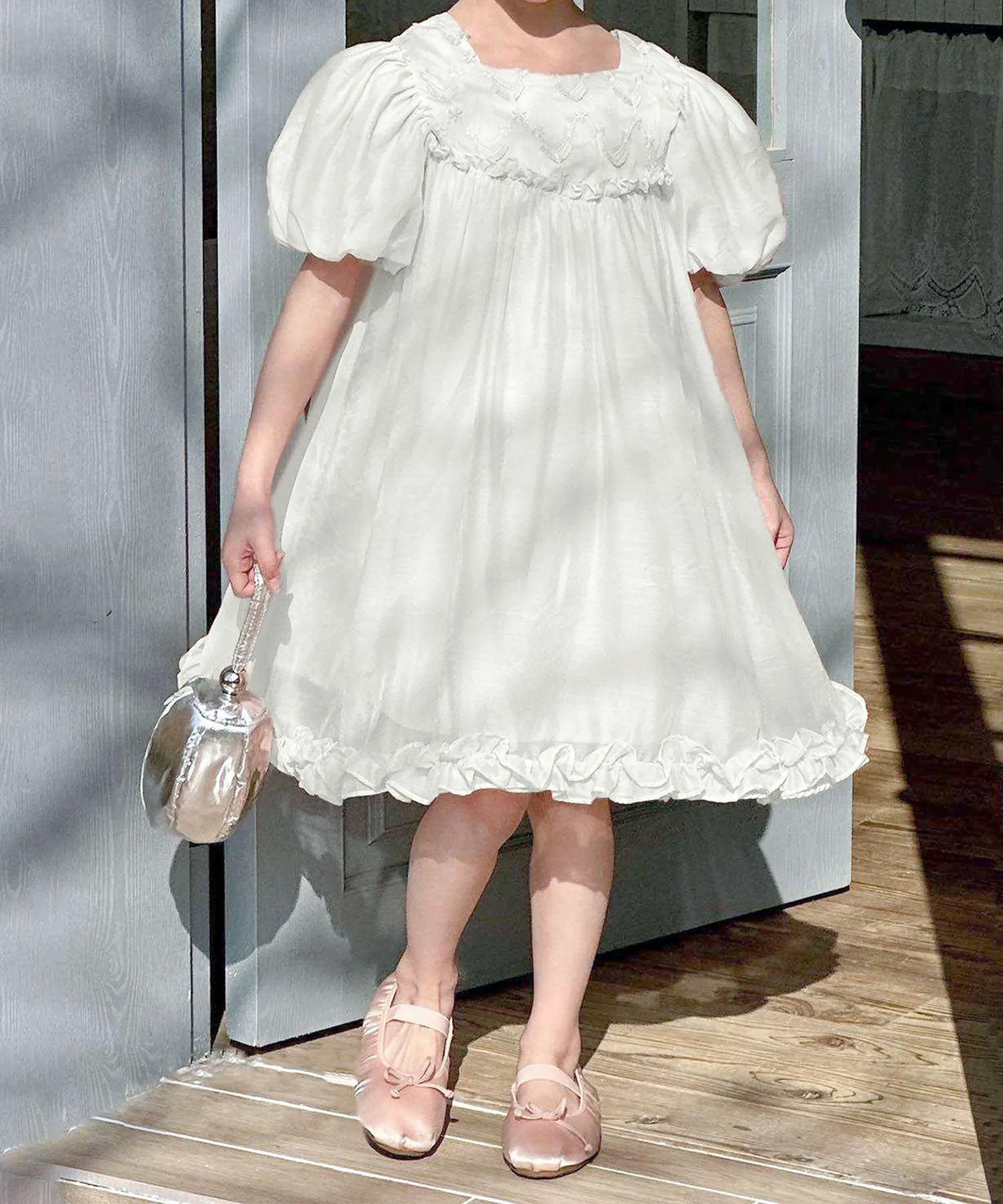 Объемные рукава-фонарики добавляют модный штрих, делая его идеальным для особых случаев.