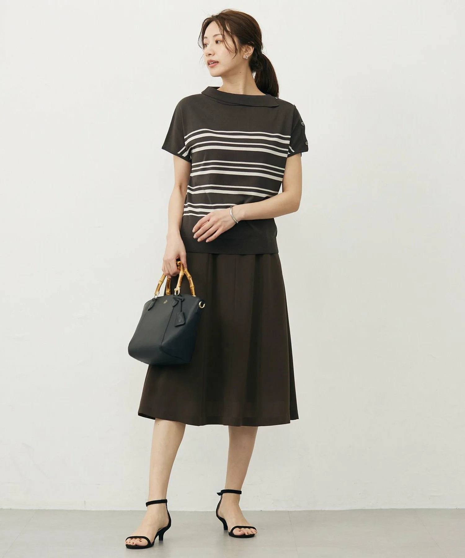 Дизайн: Полосатый трикотаж с воротником в классическом стиле. Пуговицы из ракушек на левом плече добавляют элегантности аккуратному воротнику. Французские рукава немного длиннее, чтобы естественным образом прикрыть проблемные предплечья. Легко сочетается с брюками или юбками и достаточно универсален для широкого круга случаев, от повседневных до нарядных. Несмотря на простоту, тонкие детали выделяют его, делая его идеальным элементом для изысканных ансамблей. Доступен в трех цветах: мягкий серо-коричневый (#103), натуральный и насыщенный коричнево-серо-бежевый (#130) и сдержанный и элегантный темно-синий и серо-бежевый (#175). Материал: Этот материал изготовлен из тонкозернистого индийского хлопка, спряденного с использованием технологии компактного прядения, которая включает в себя ворс, и обернут полиэстером с низкой степенью эластичности для комфортной посадки и оптимальной степени растяжения. Обладает гладкой, прохладной текстурой, прост в уходе и идеально подходит для длительной летней жары. Изделия из того же материала: Трикотаж с воротником (KRGJGA0810) Большие размеры (KRGTGA0810) Маленькие размеры (KRG0GA0810) Трикотаж поло (KRGJGA0812) Большие размеры (KRGTGA0812) Маленькие размеры (KRG0GA0812) Трикотаж с рукавом «летучая мышь» (KRGJGA0813) Большие размеры (KRGTGA0813) Маленькие размеры (KRG0GA0813) *Размер L доступен только в стандартных размерах. *Изображения товаров являются образцами, поэтому обратите внимание, что цвет, размеры и другие характеристики могут быть изменены. Модель: H172 B83 W59 H87