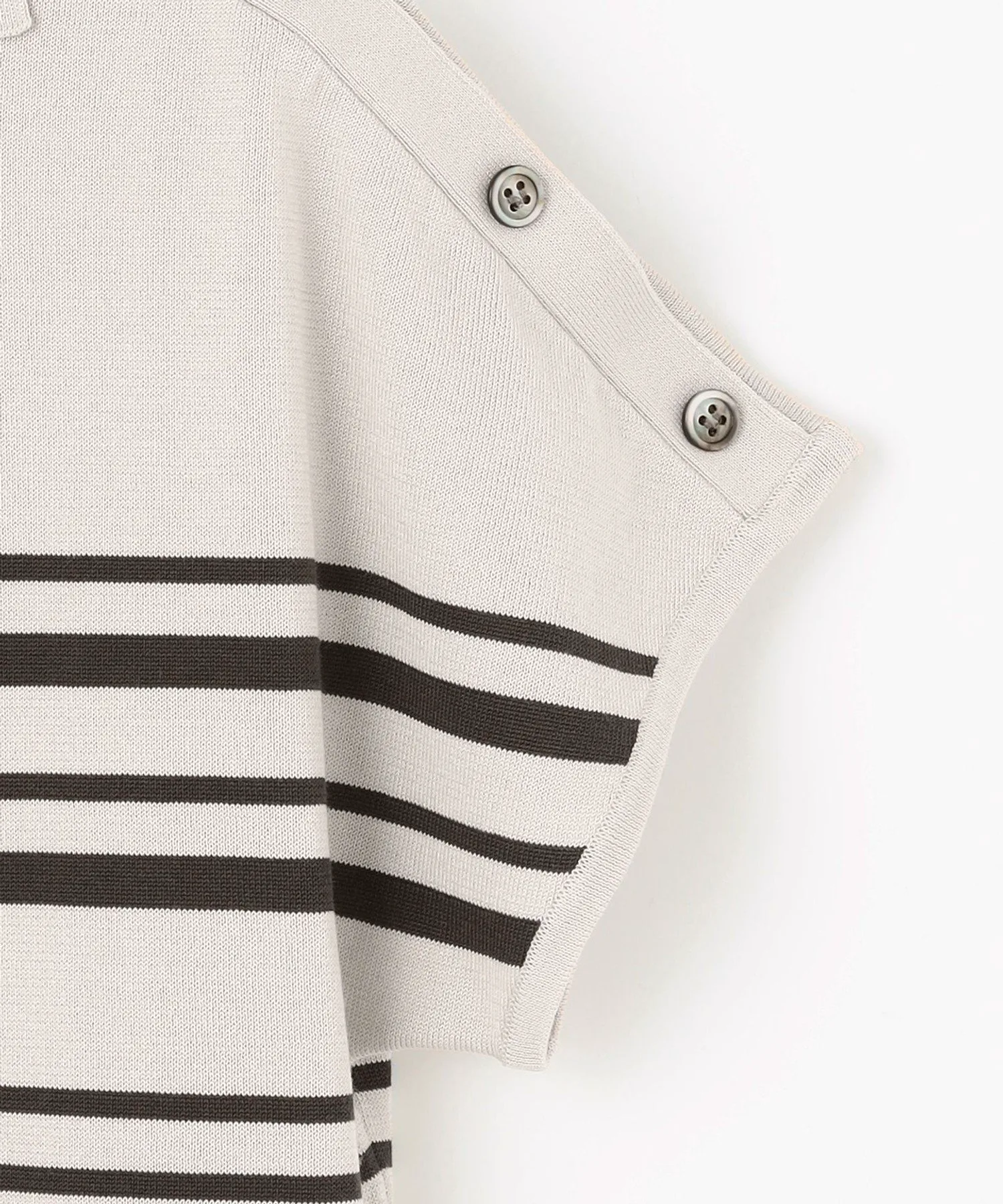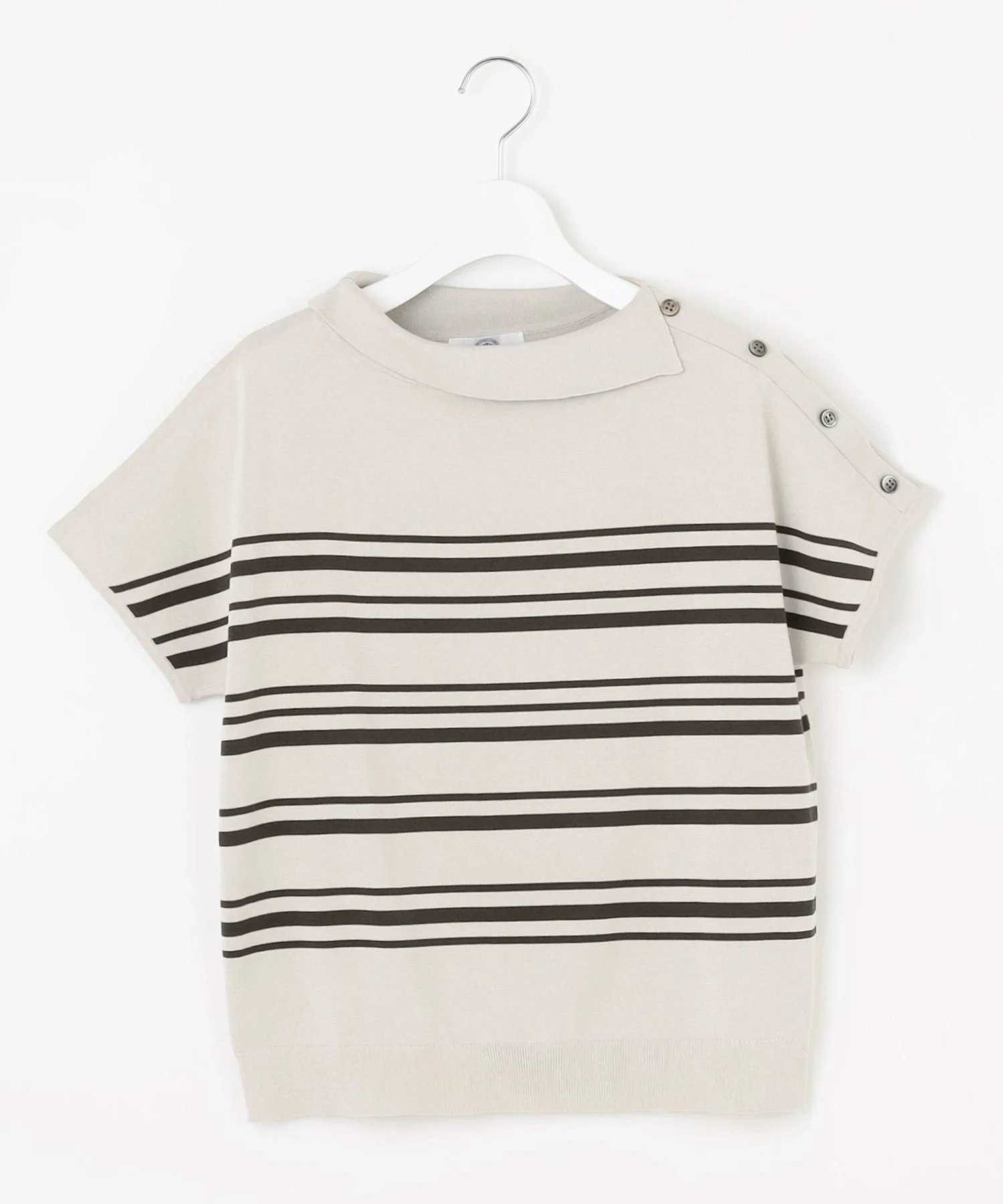 Добавьте нотку шика к изысканному образу! Освежающий полосатый трикотаж с воротником и пуговицами из ракушек в качестве акцента.