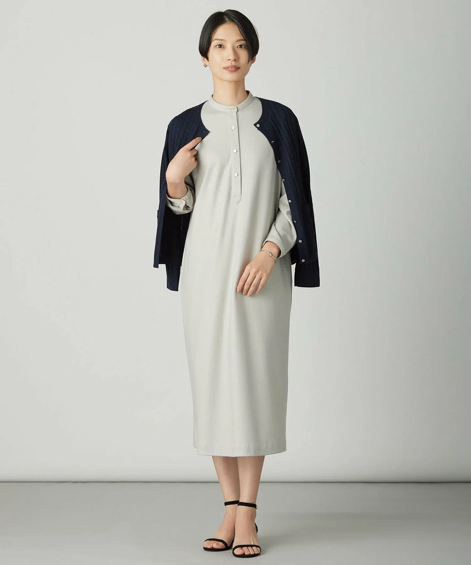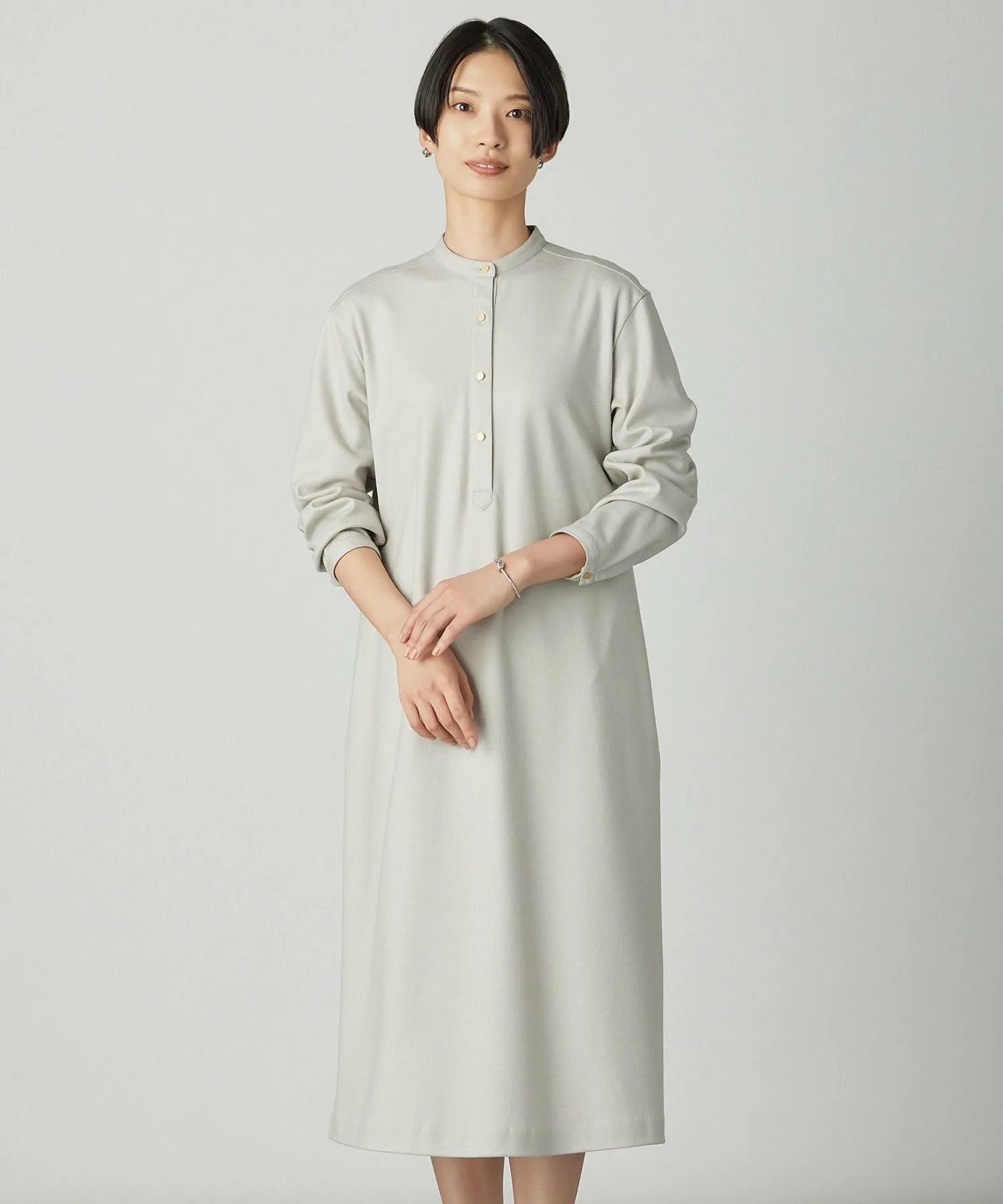 Дизайн: Это платье имеет воротник-стойку для изысканного вида. Дизайн не слишком повседневный, и добавление аксессуаров делает его подходящим для торжественных случаев, таких как званые ужины. Металлические детали доходят до середины передней части, добавляя нотку элегантности и утонченной изысканности. Пуговицы полностью расстегиваются, что облегчает надевание и снимание платья. Его можно носить как самостоятельно, так и в сочетании с жакетом, что делает его удобным вариантом для переходного периода между сезонами.