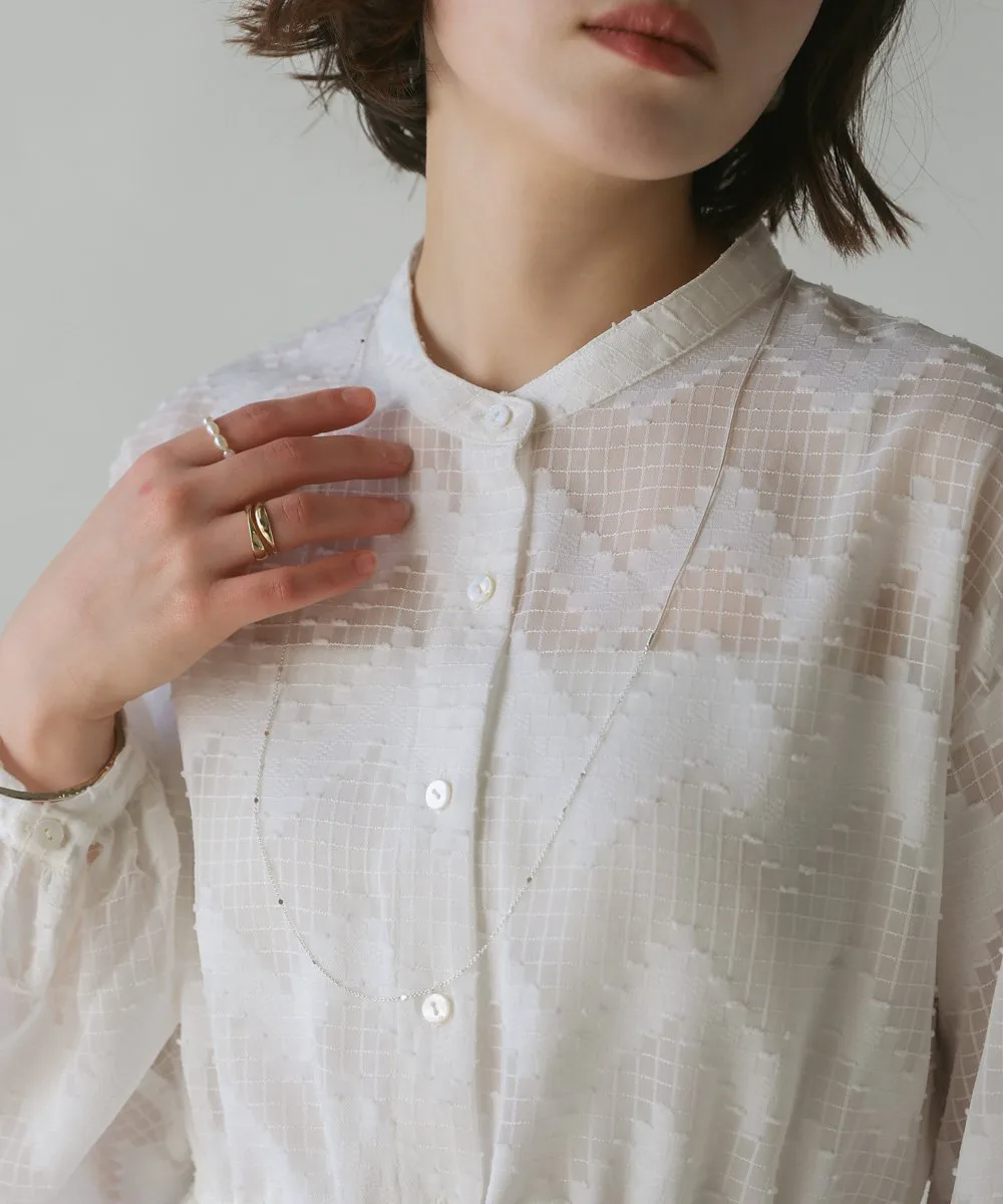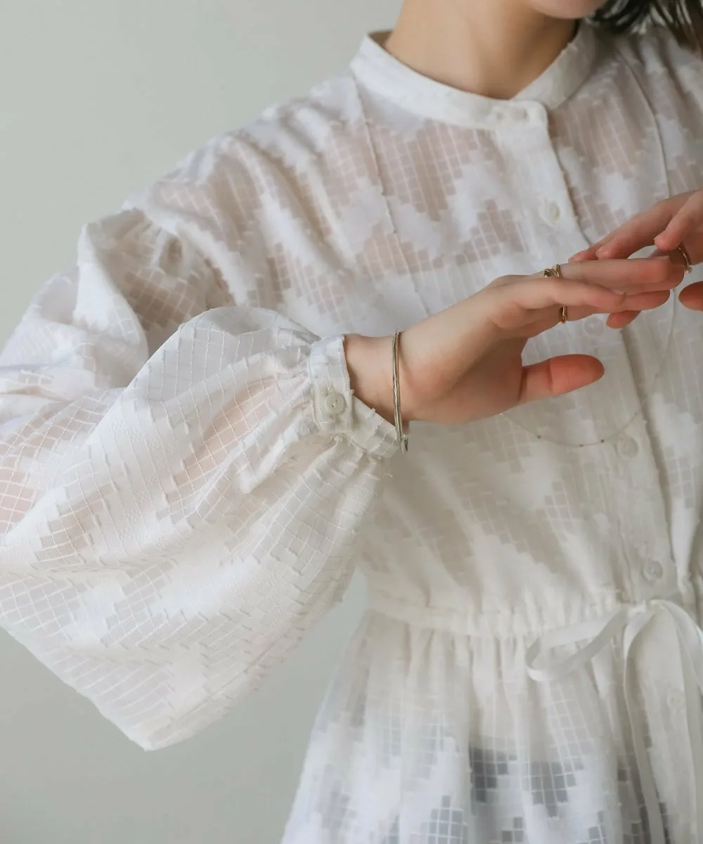 Прозрачная жаккардовая ткань с геометрическим узором. Изготовлена из 100% полиэстера, не мнется, что делает ее идеальной для путешествий.