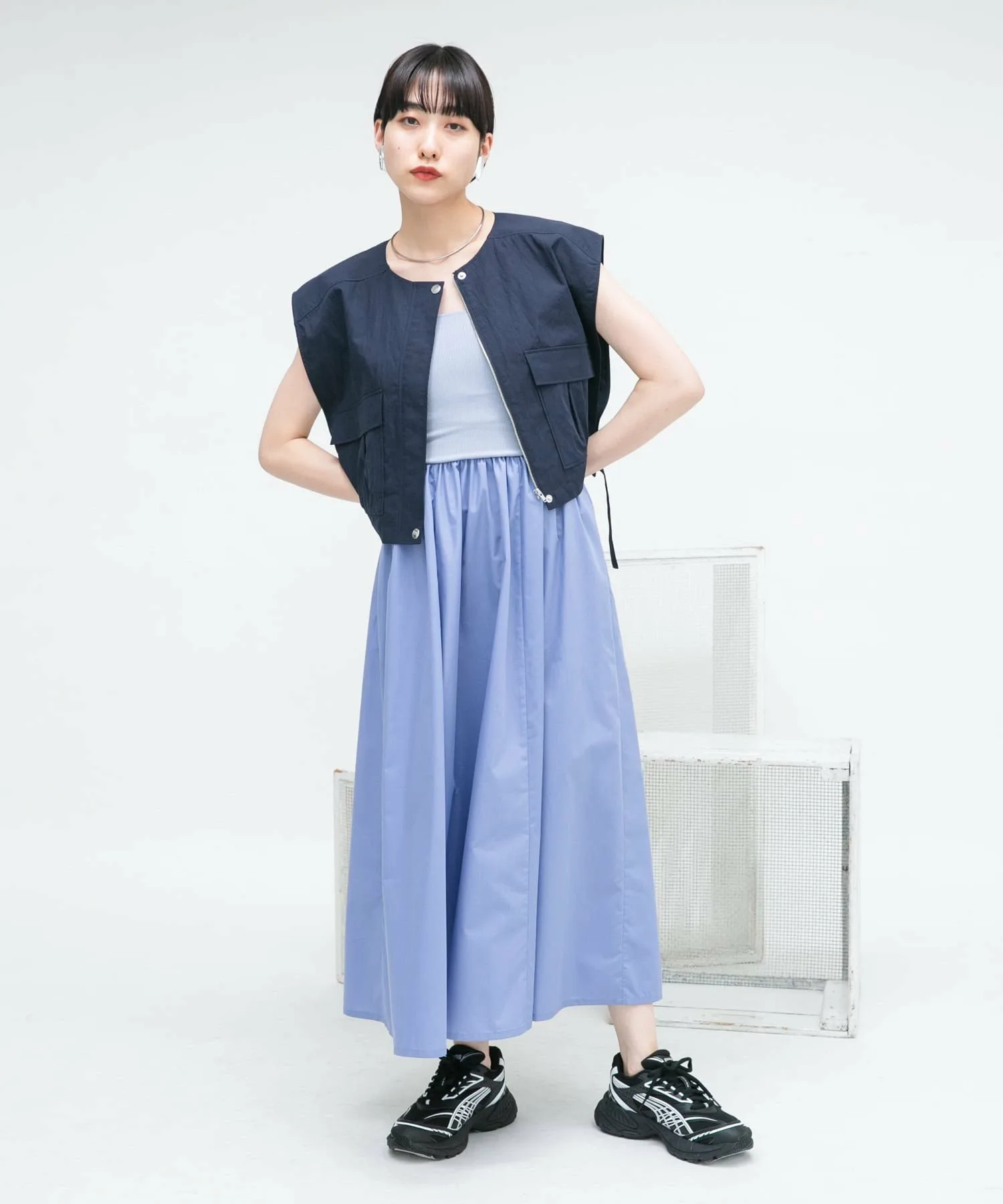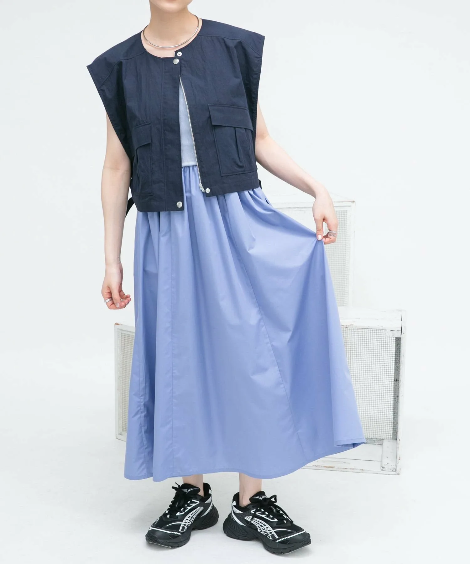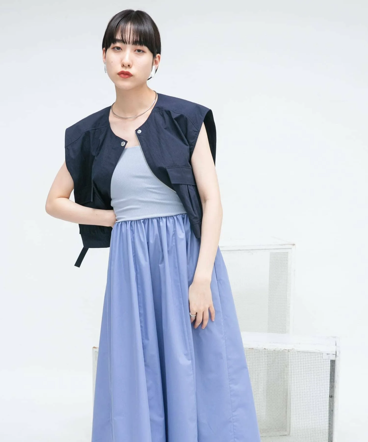Это платье из смешанных материалов сочетает в себе облегающий ребристый крой и плотный, немнущийся материал. Его можно носить как платье-комбинацию или, благодаря съемным бретелям, как платье без бретелей. Два доступных размера, подходящие для разного роста, также привлекательны. Вы можете изменить образ, сочетая его с разным нижним бельем. ◎