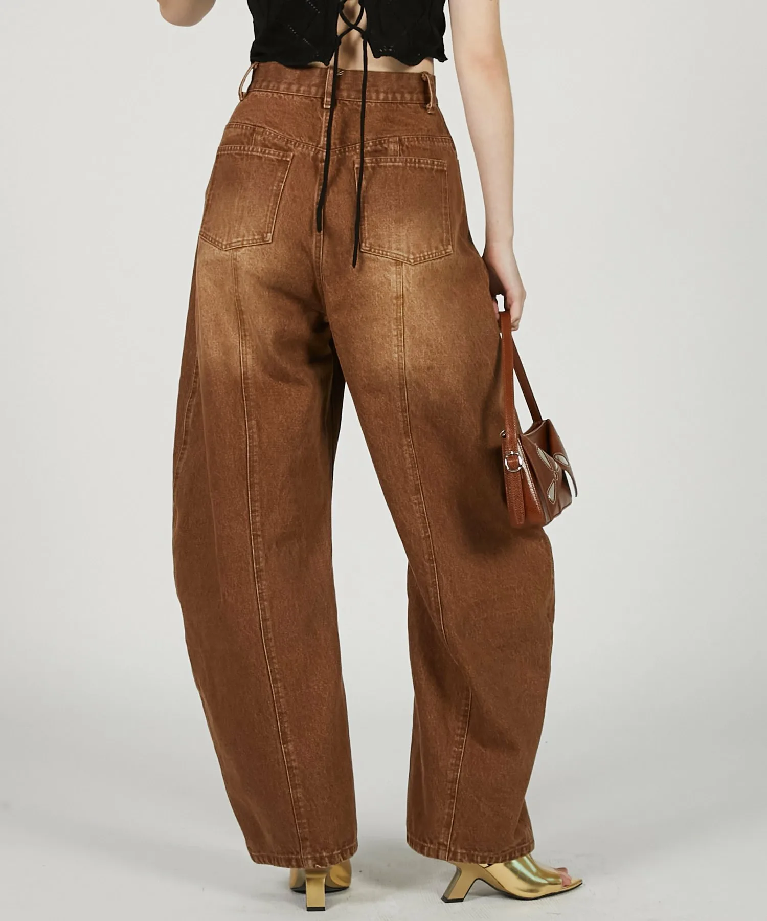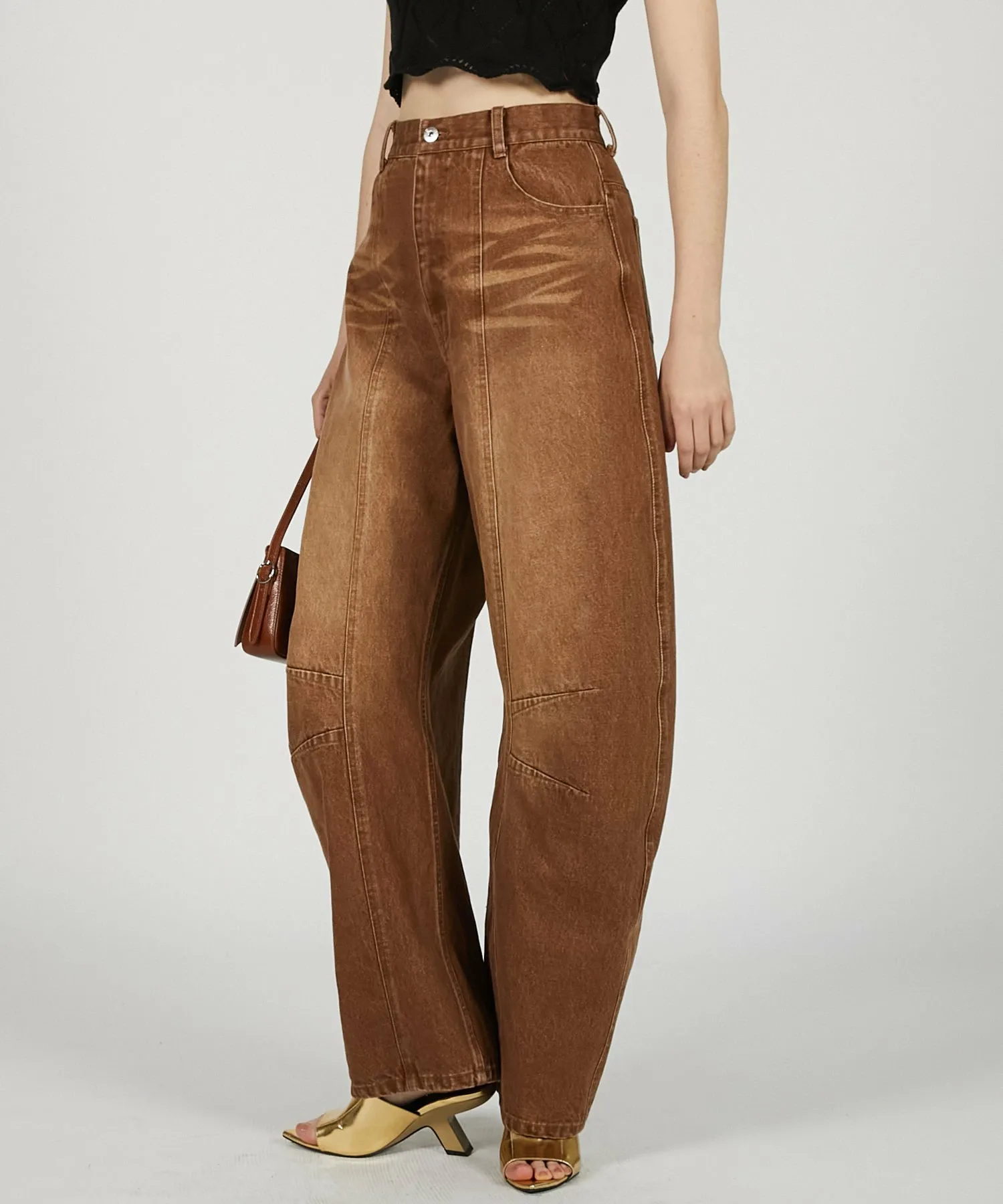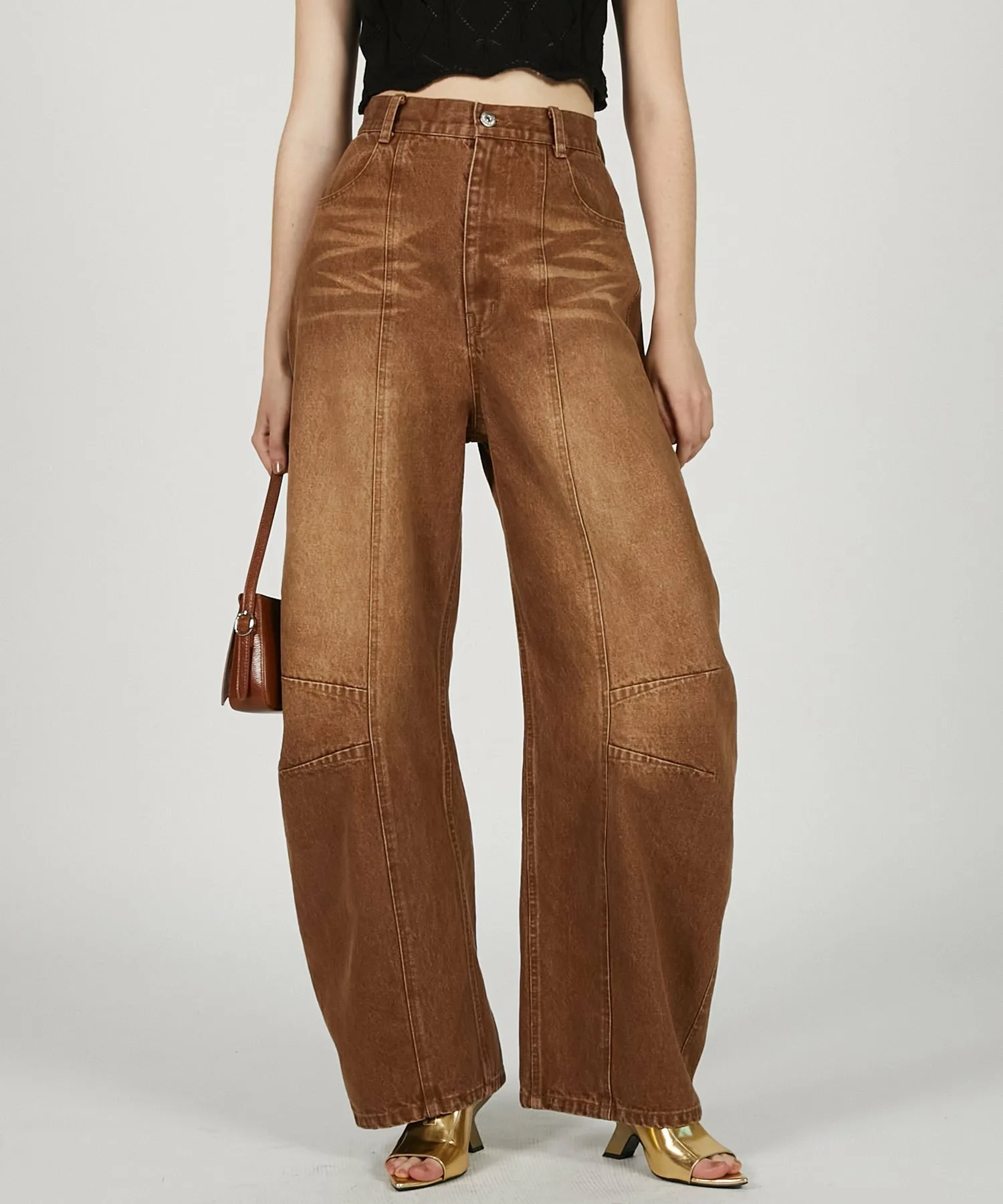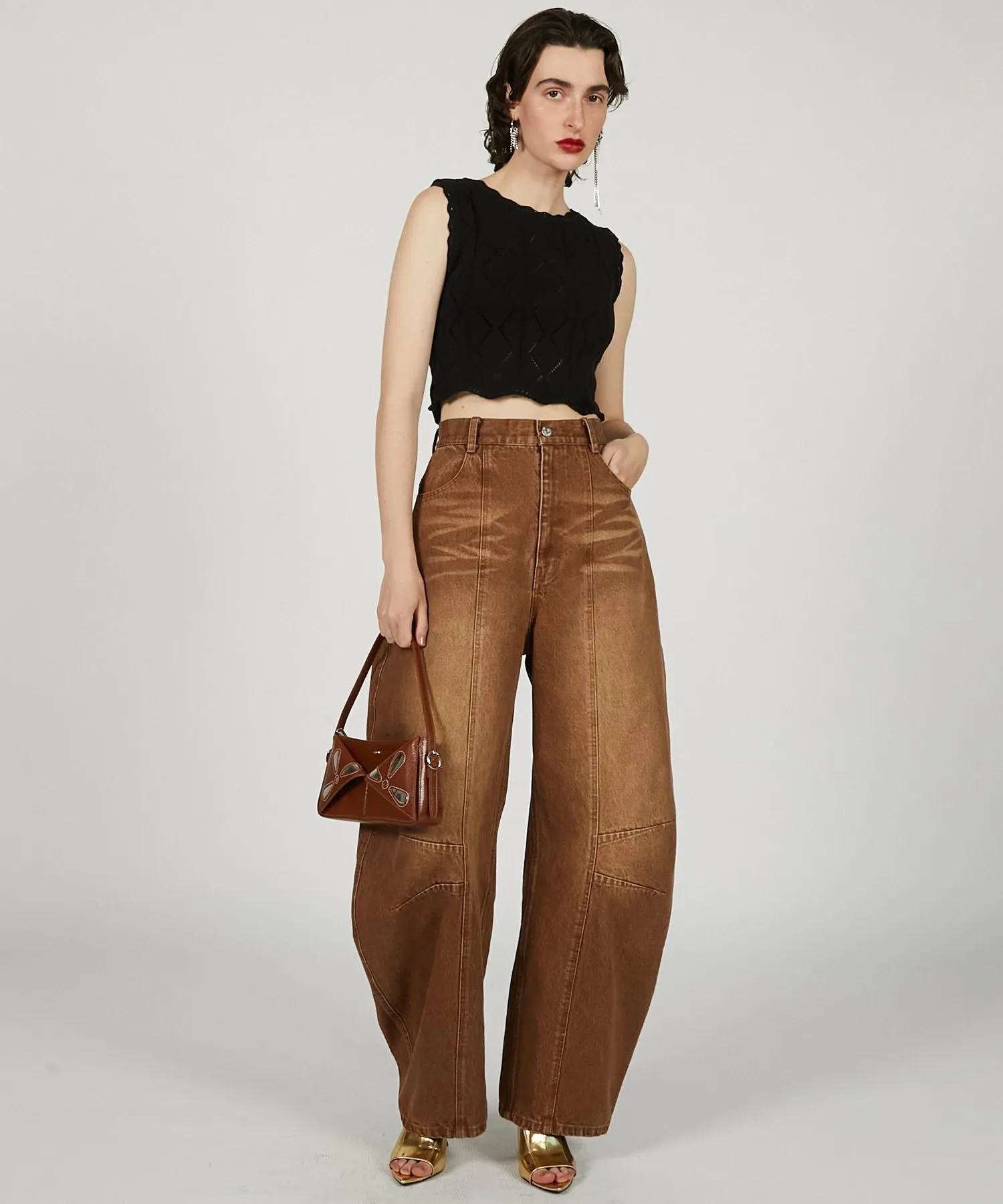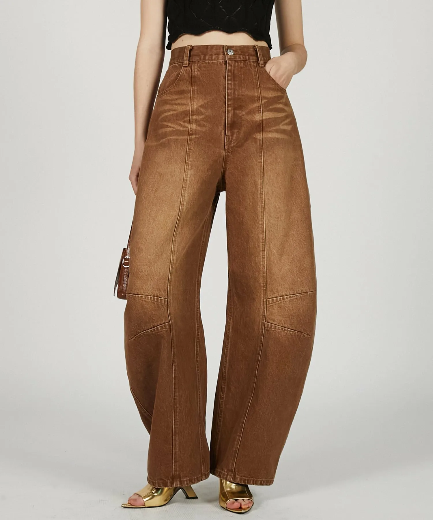 Джинсовые брюки с силуэтом «кокон» и очень широким объемом.