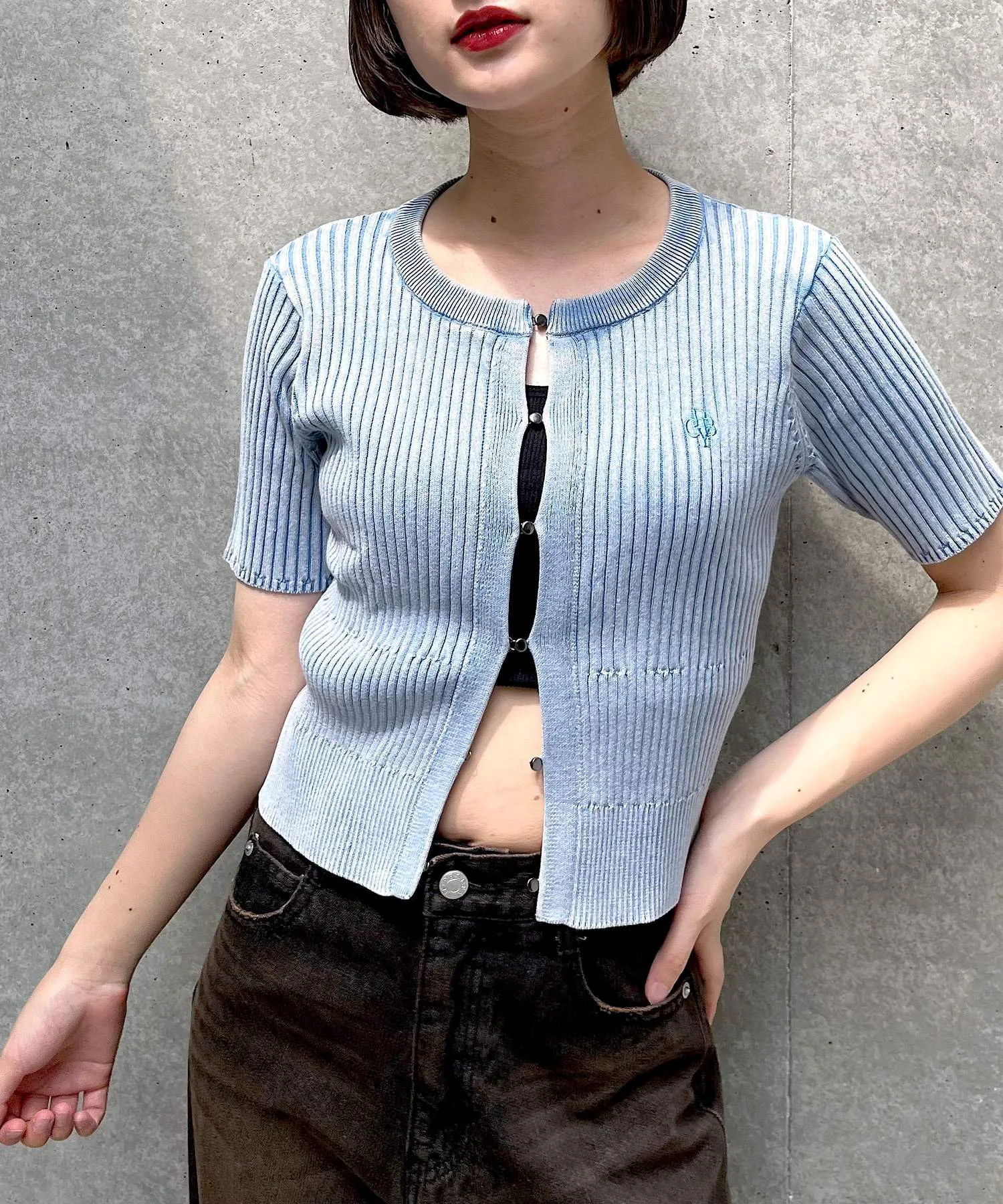 ・Этот трикотажный топ, изготовленный методом пигментной обработки, придаст вам модный вид, просто надев его. ◎