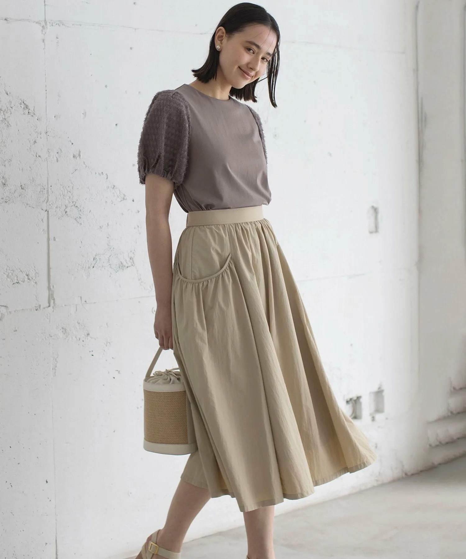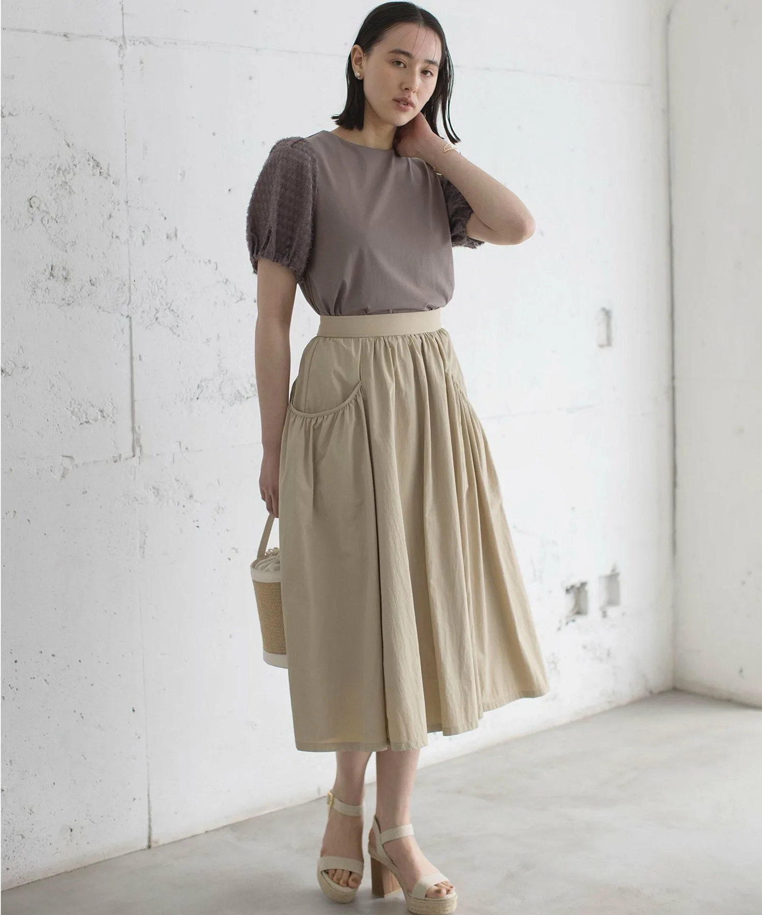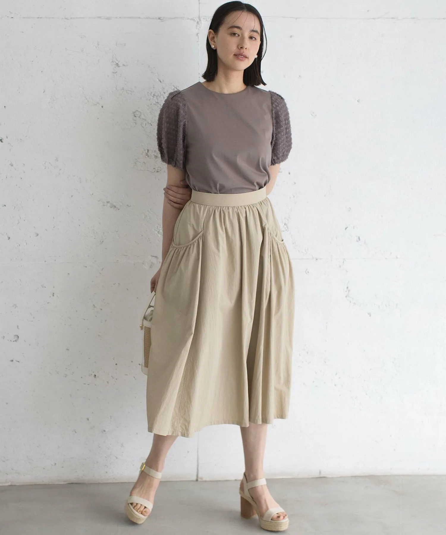 Дизайн・Объем, собранный в карманах, — изюминка дизайна. ・От повседневной одежды до одежды для активного отдыха, этот дизайн и функциональность обязательно пригодятся во время внезапного дождя и на берегу моря. ・Эластичный пояс сзади обеспечивает удобную посадку. ・Большие карманы сочетают в себе дизайн и функциональность.