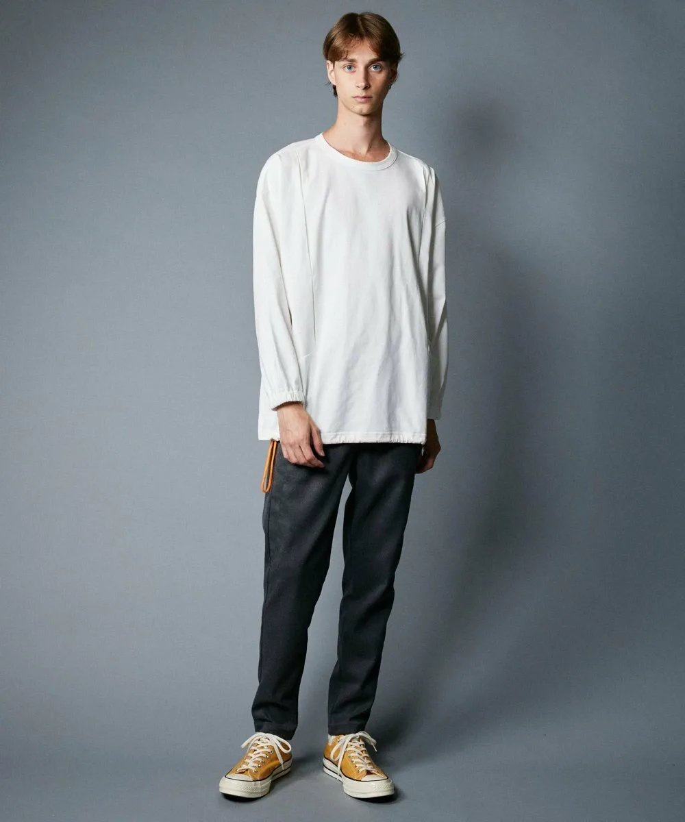Подкладка передних карманов украшена оригинальным цветочным узором, а петли для ремня выполнены из специально разработанной металлической фурнитуры, что делает дизайн тщательно продуманным до мельчайших деталей. Брюки свободные от талии до бедер, сужающиеся к низу для создания обтекаемого силуэта. Несмотря на узкий крой, они спроектированы таким образом, чтобы быть свободными в разных местах, обеспечивая комфортную посадку.