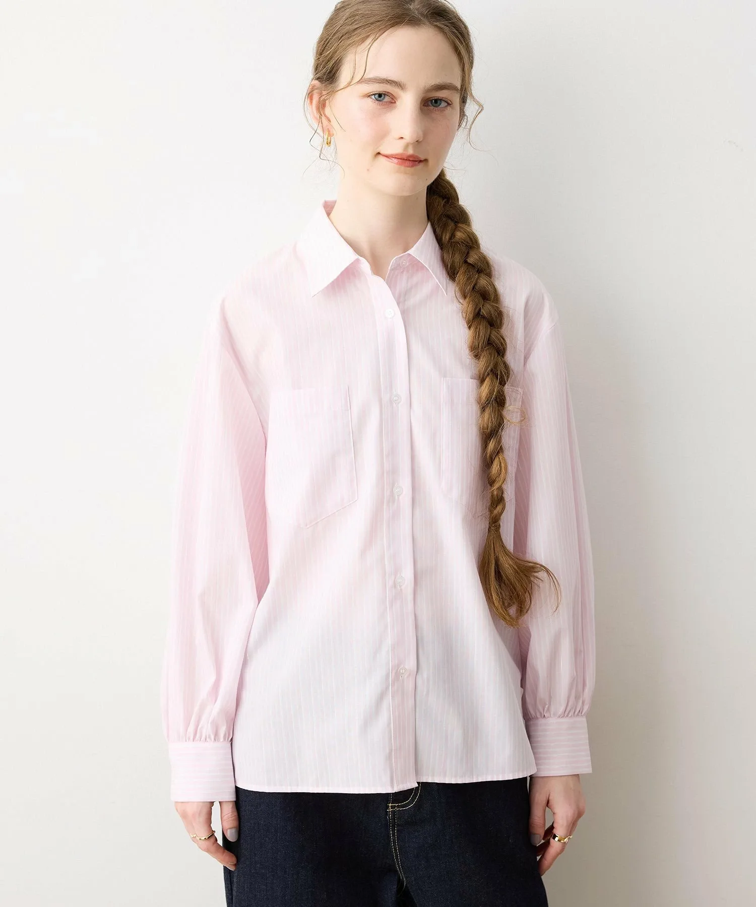 Блузка с тонким полосатым узором, создающая элегантное впечатление.