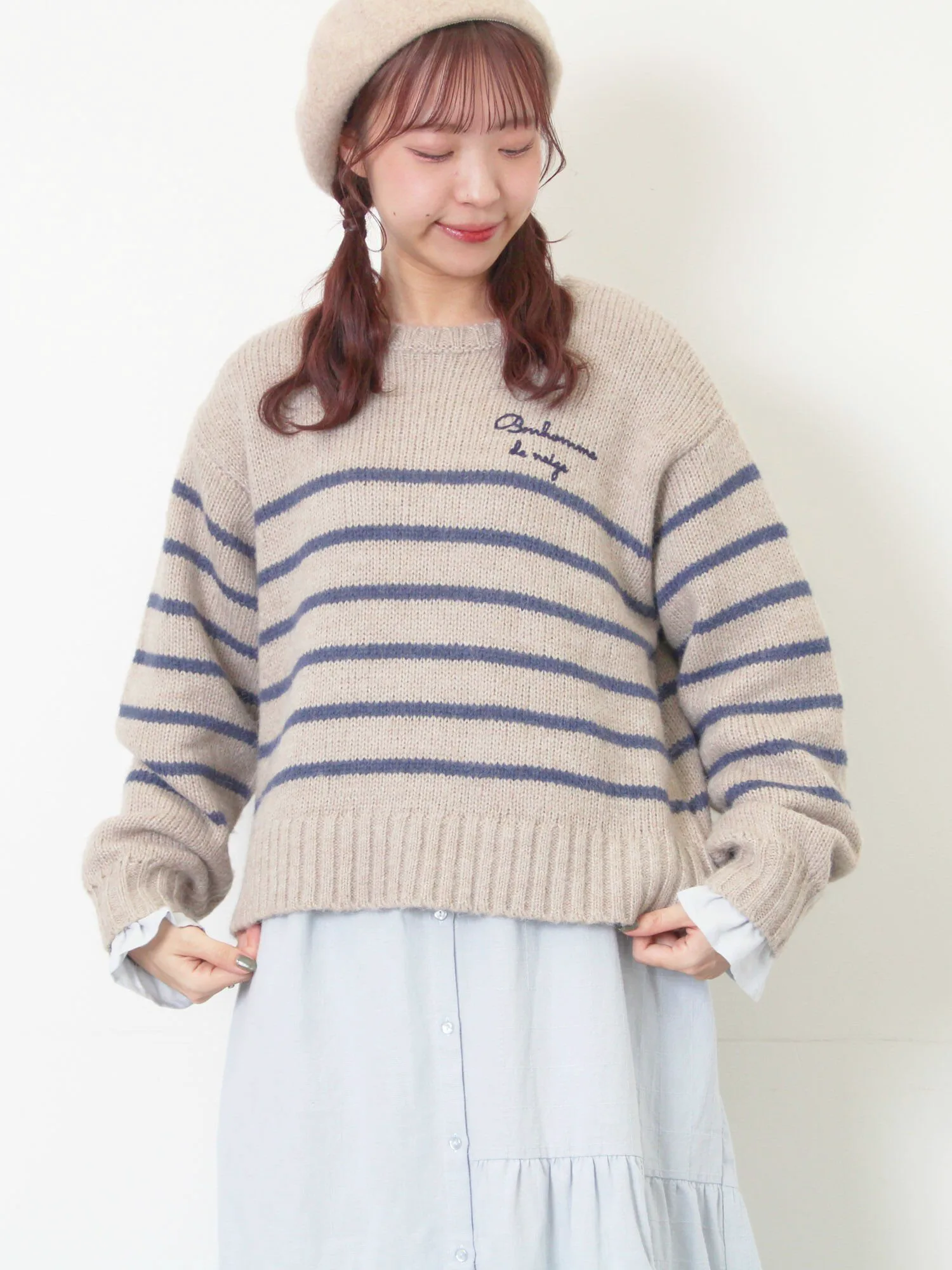 Вязаный пуловер с эффектной вышивкой логотипа на груди и по краям панелей.