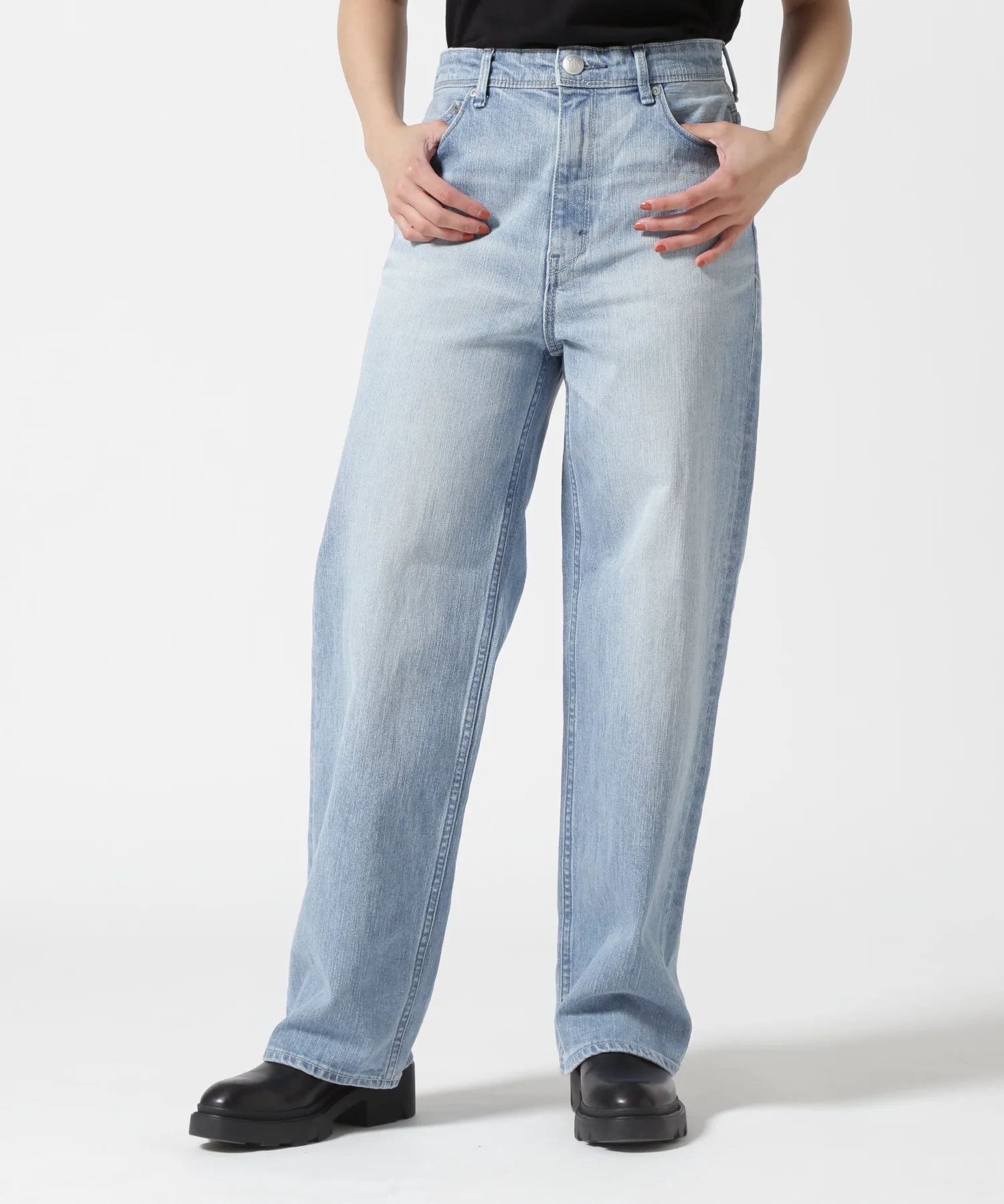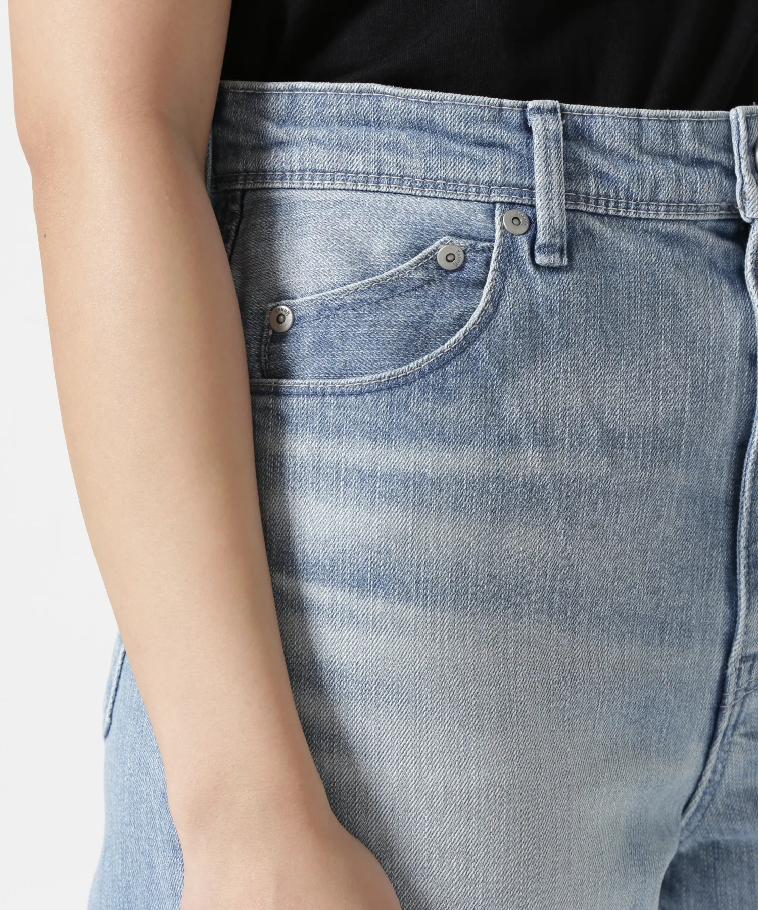 Чистый цвет, создающий ощущение свежести. Главная изюминка — чистая, слегка потертая отделка. Этот популярный цвет отличается красивым саксофонным оттенком, контрастирующим с белым цветом выцветших участков. Швы выполнены светло-серым цветом, близким к белому, что усиливает ощущение свежести. Потертости и складки придают им трехмерный вид, скрывая любые проблемные зоны в области живота. Благодаря четко очерченному силуэту и вшитым внутрь акцентам на бедрах, эти универсальные брюки придают вашим ногам более стройный и красивый вид.