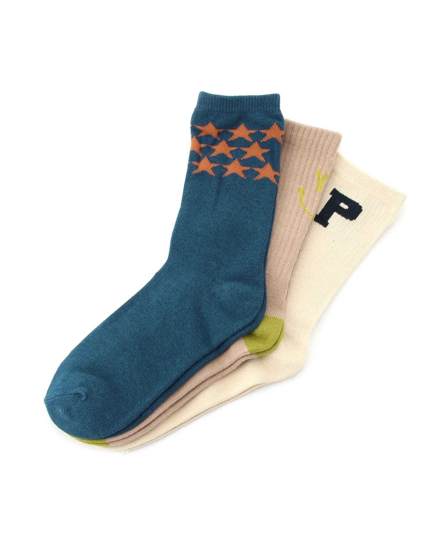 Набор из трех носков, украшенных звездами и логотипами.