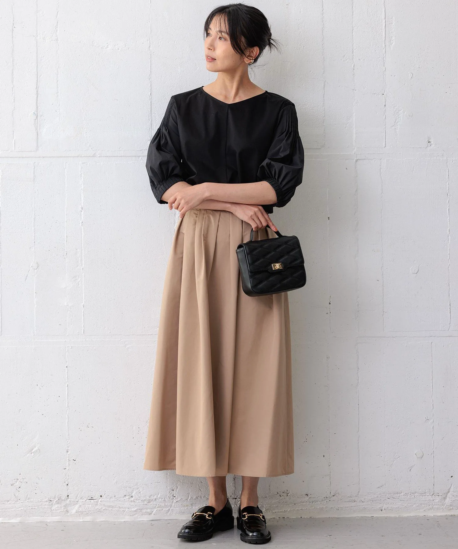 Пуловер с эффектными складками на рукавах. Основная часть выполнена из кроя и ткани, а рукава — из плотной тафты, создающей трехмерный силуэт. Манжеты эластичные, поэтому вы можете заправить их выше локтей, чтобы добавить объема и создать эффект пышных рукавов. Носите его с брюками или жилетом для создания универсального образа. Доступен в шести цветах: универсальный бежевый (#033), шикарный хаки (#054), освежающий белый (#001), базовый черный (#005), серый (#004) и привлекательный желтый (#040).
