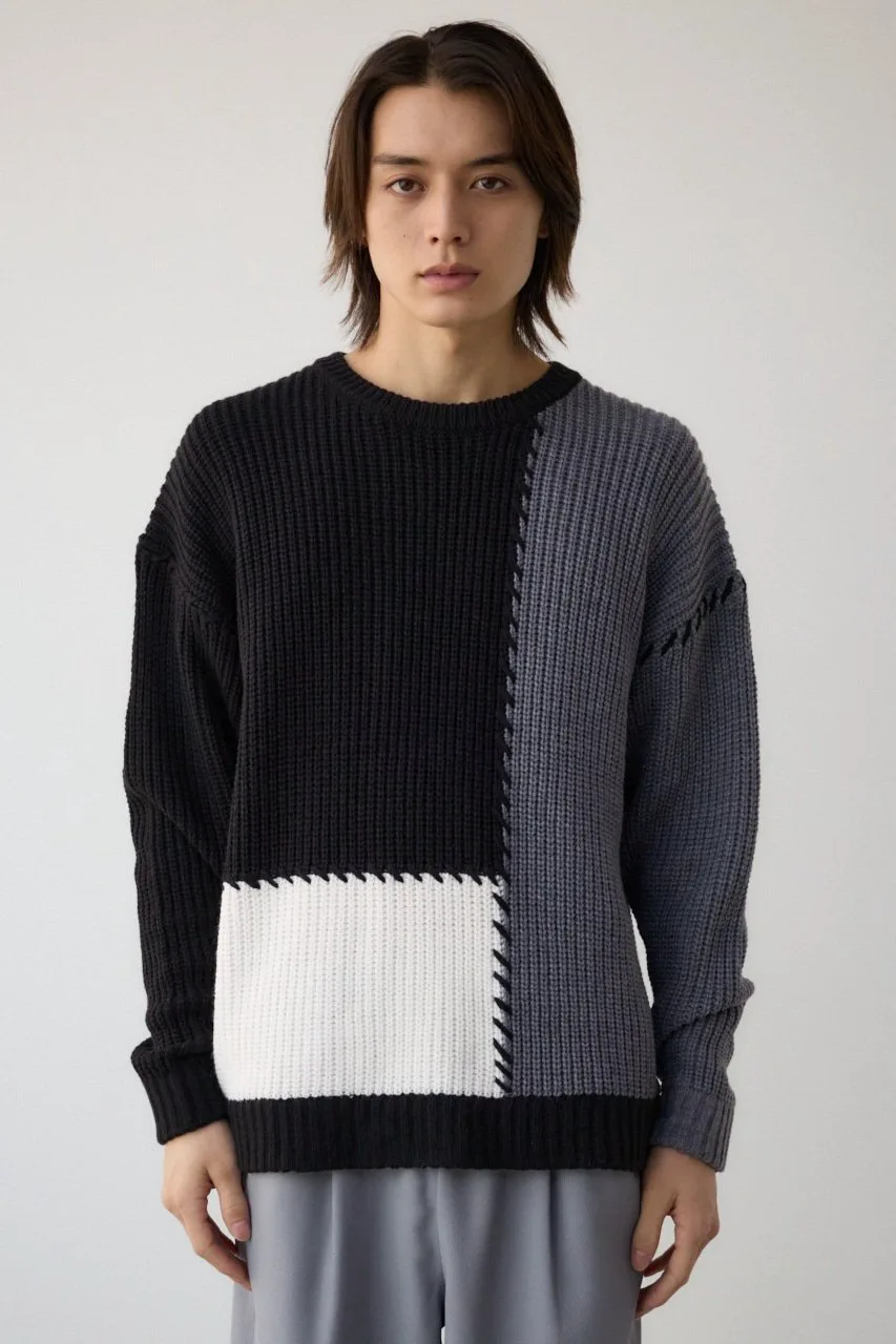 Это вязаное полотно выполнено в стиле пэчворк.