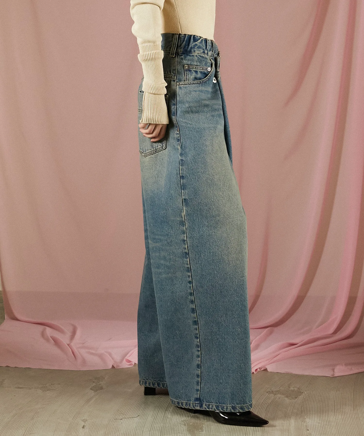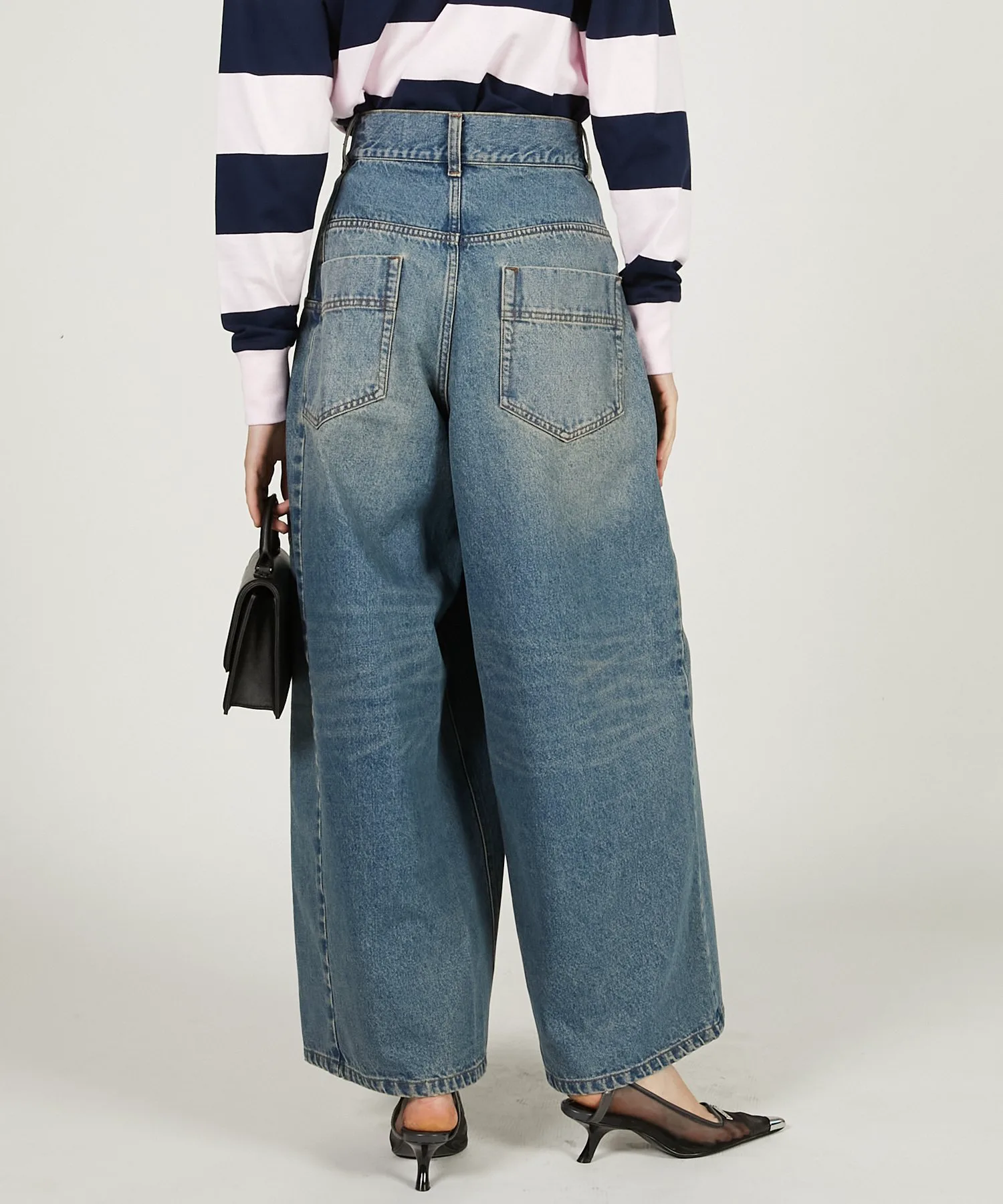 Это необычный вариант стандартных джинсов, суперширокий силуэт отлично смотрится сам по себе.