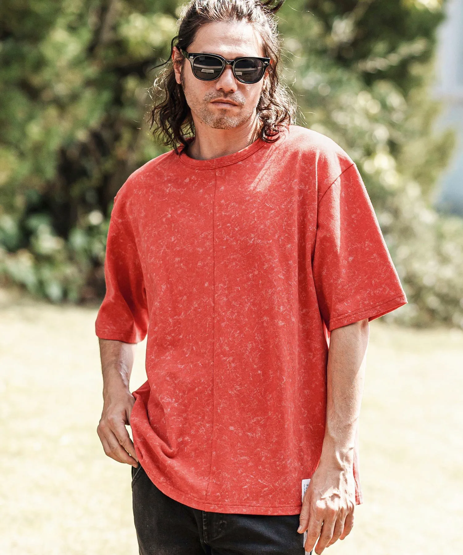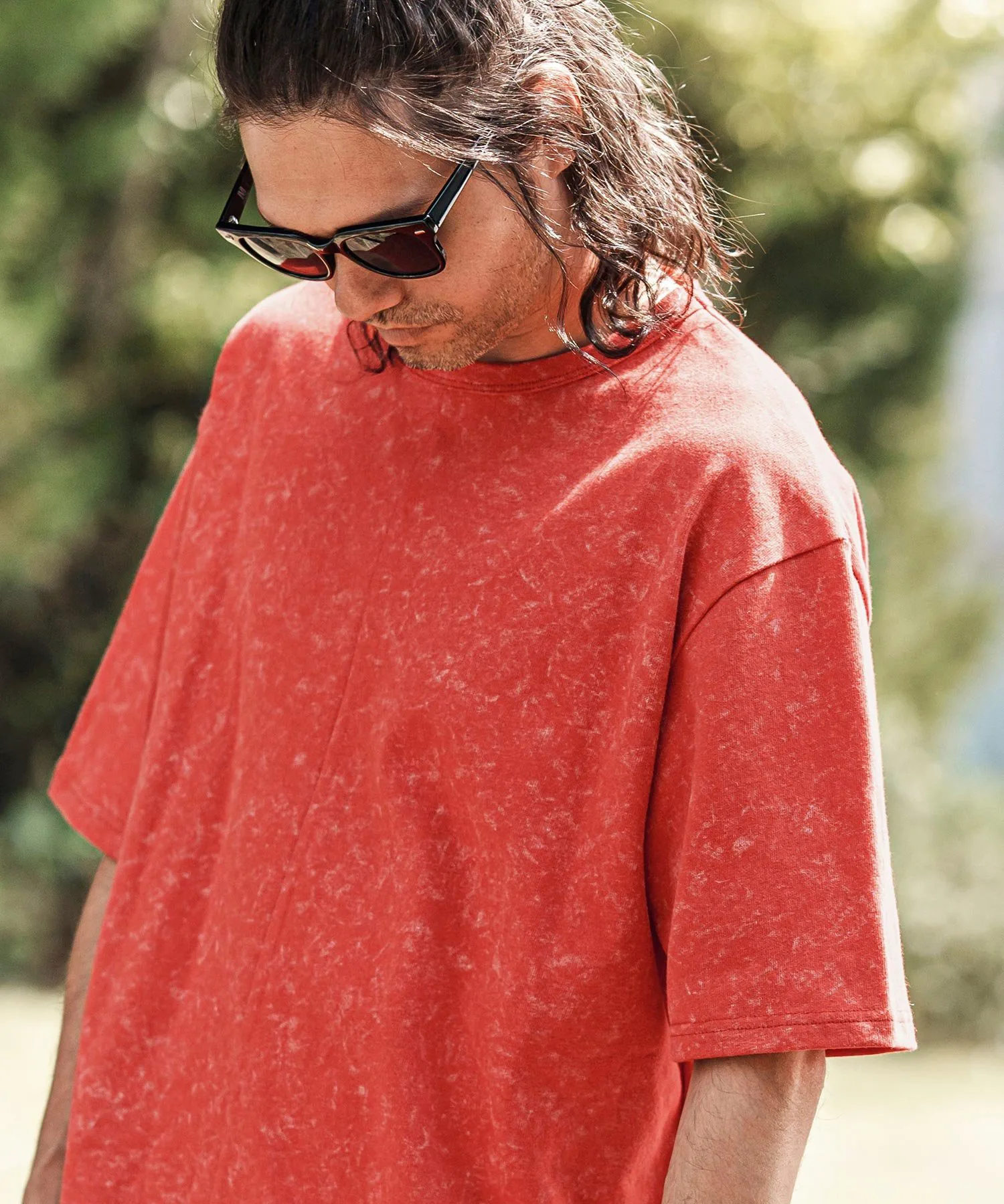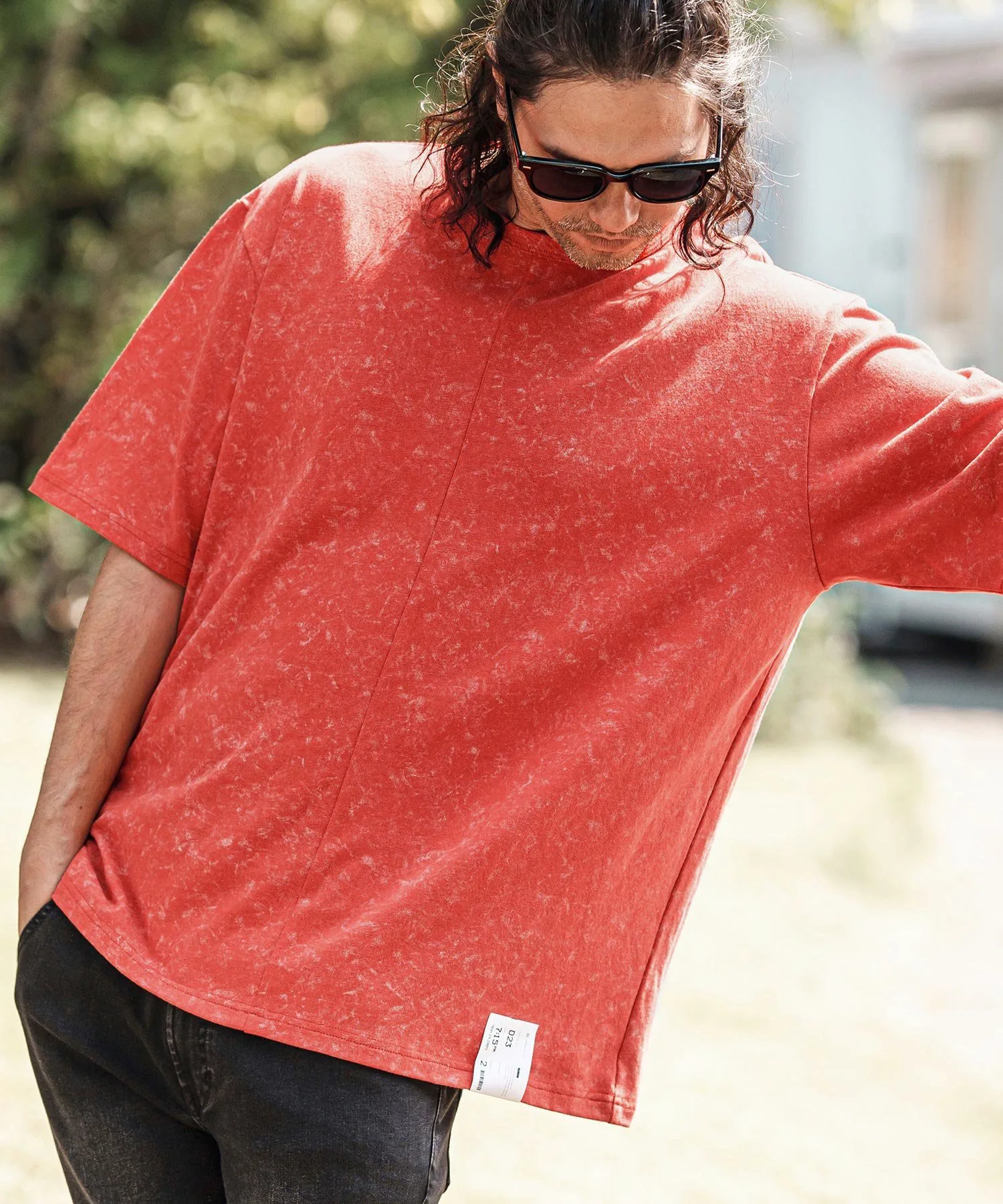 Топ сшитый из ткани с принтом, создающим эффект неравномерной окраски.