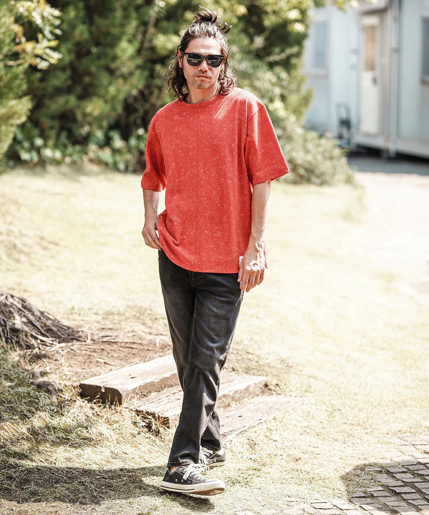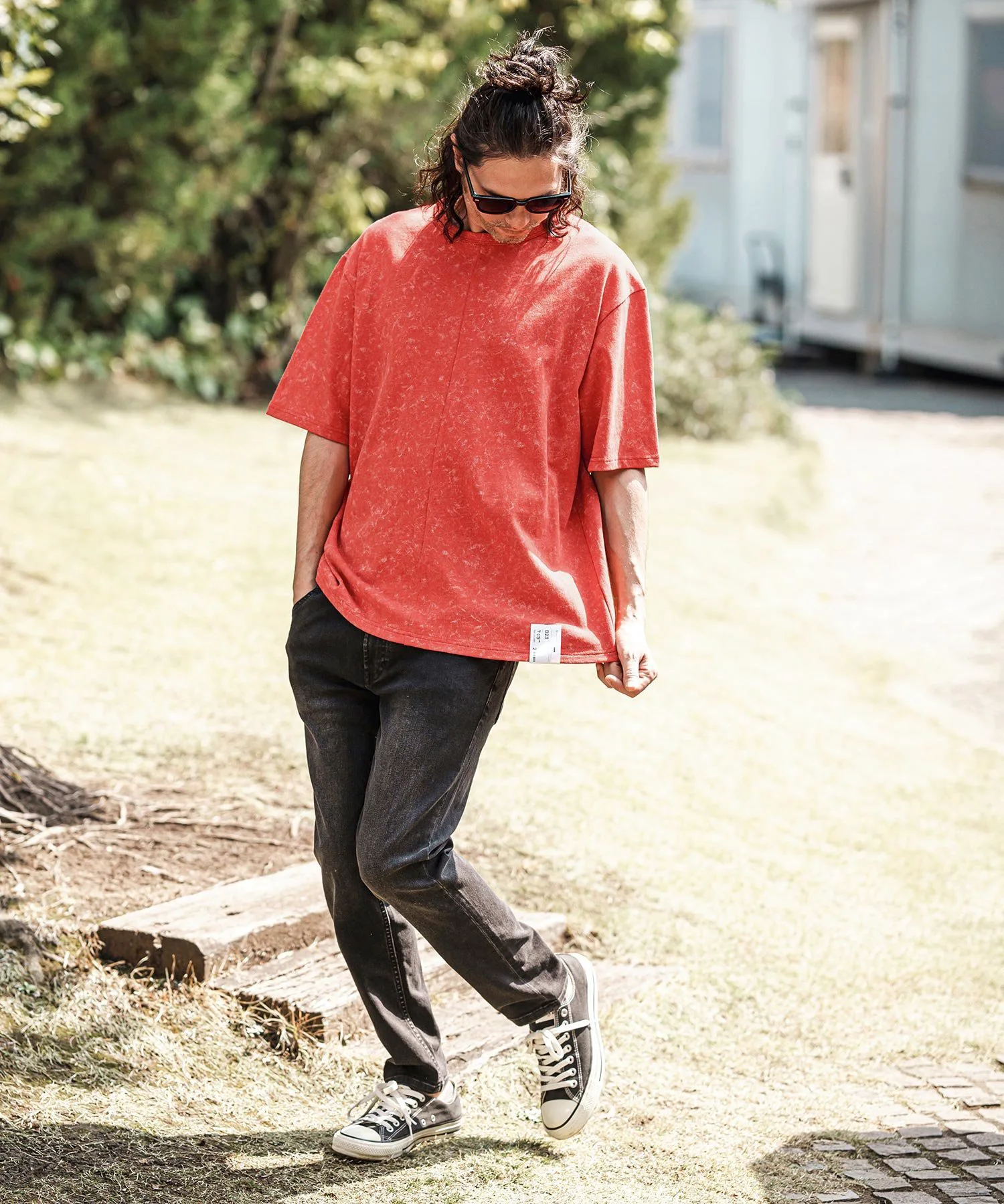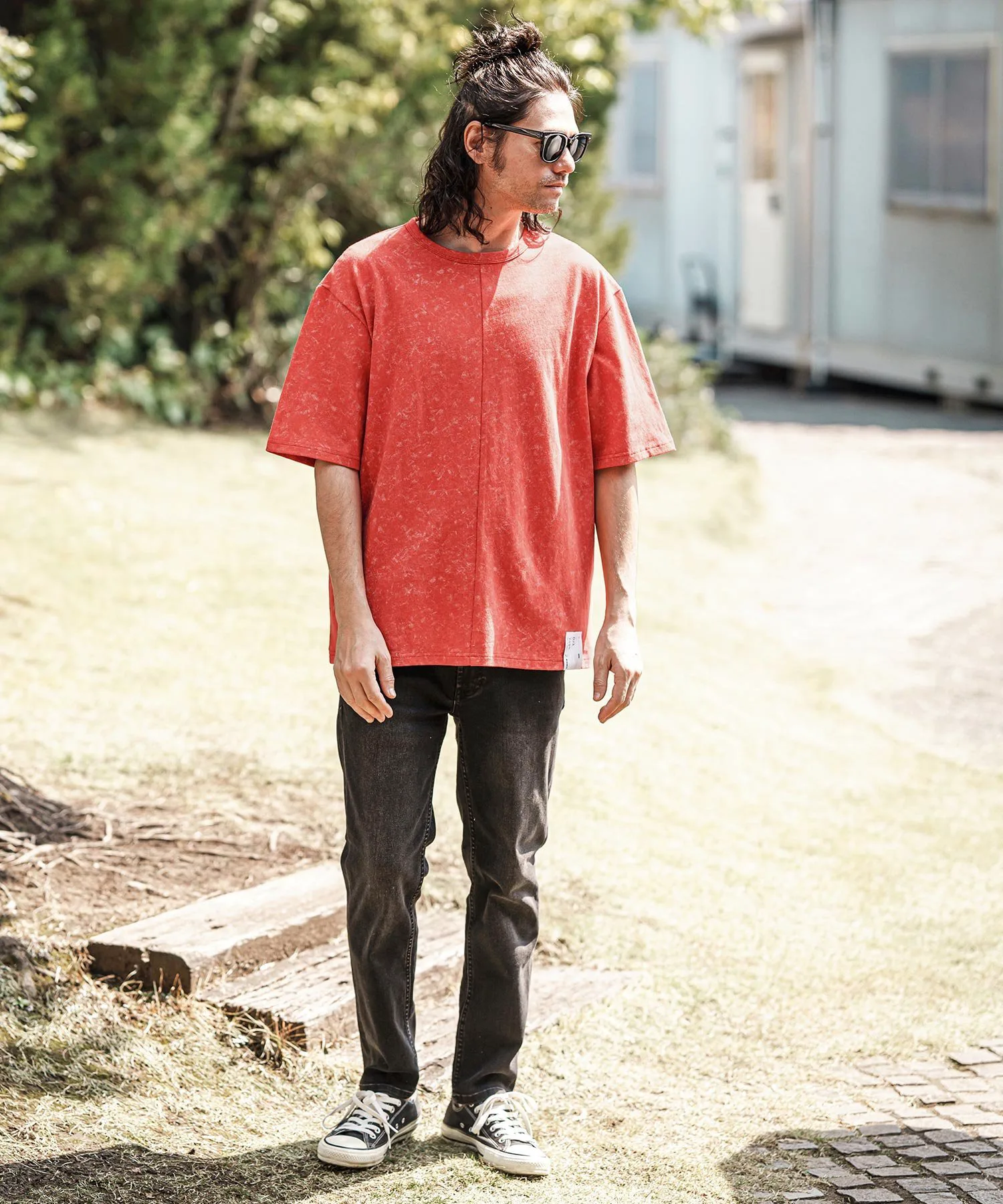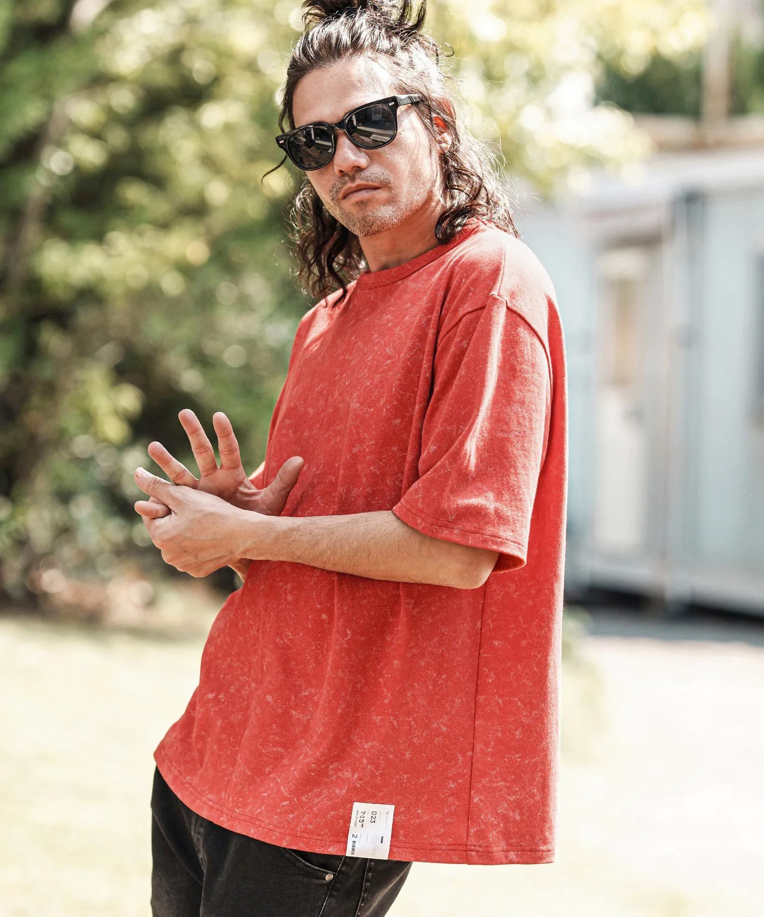 Топ сшитый из ткани с принтом, создающим эффект неравномерной окраски.
