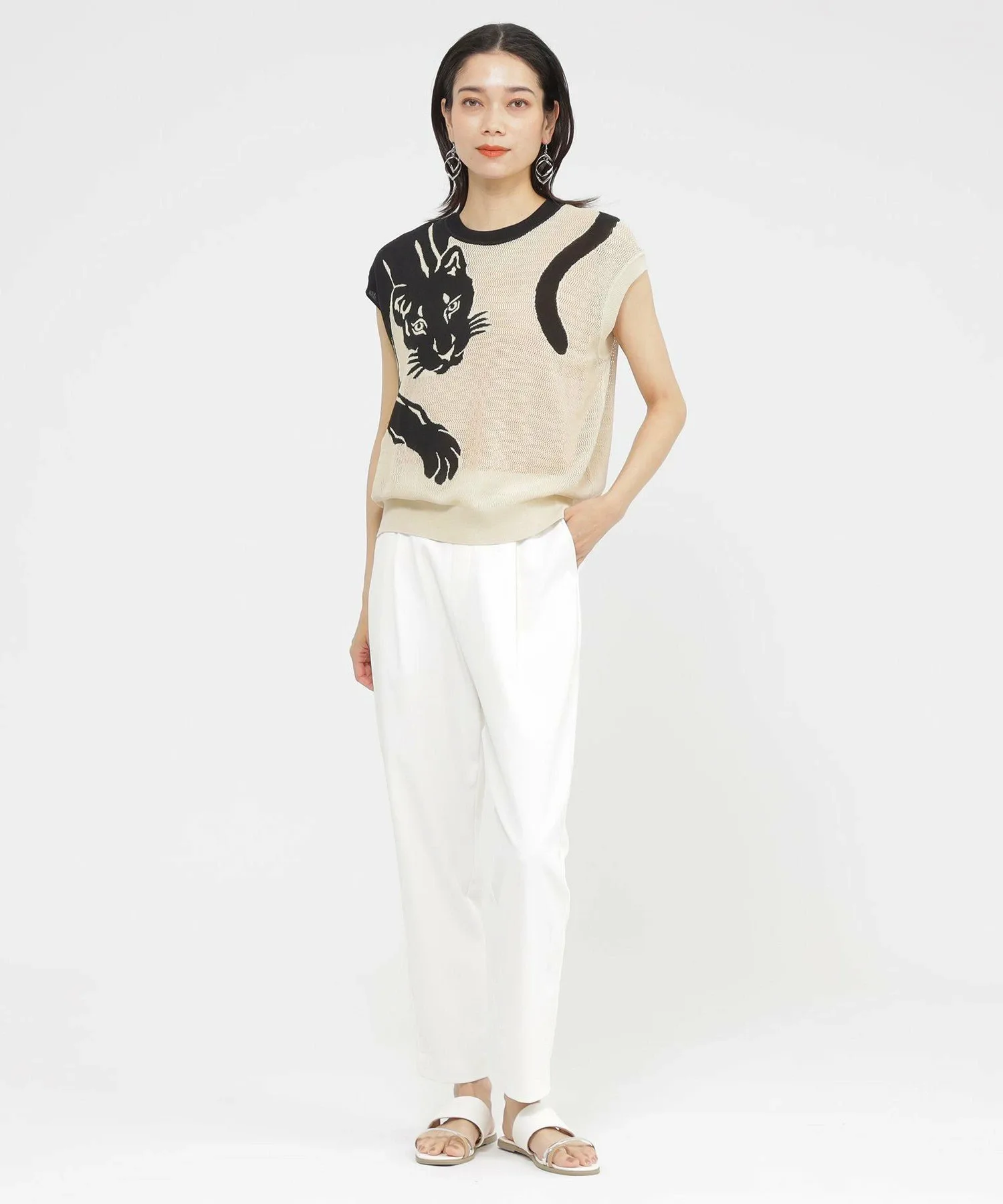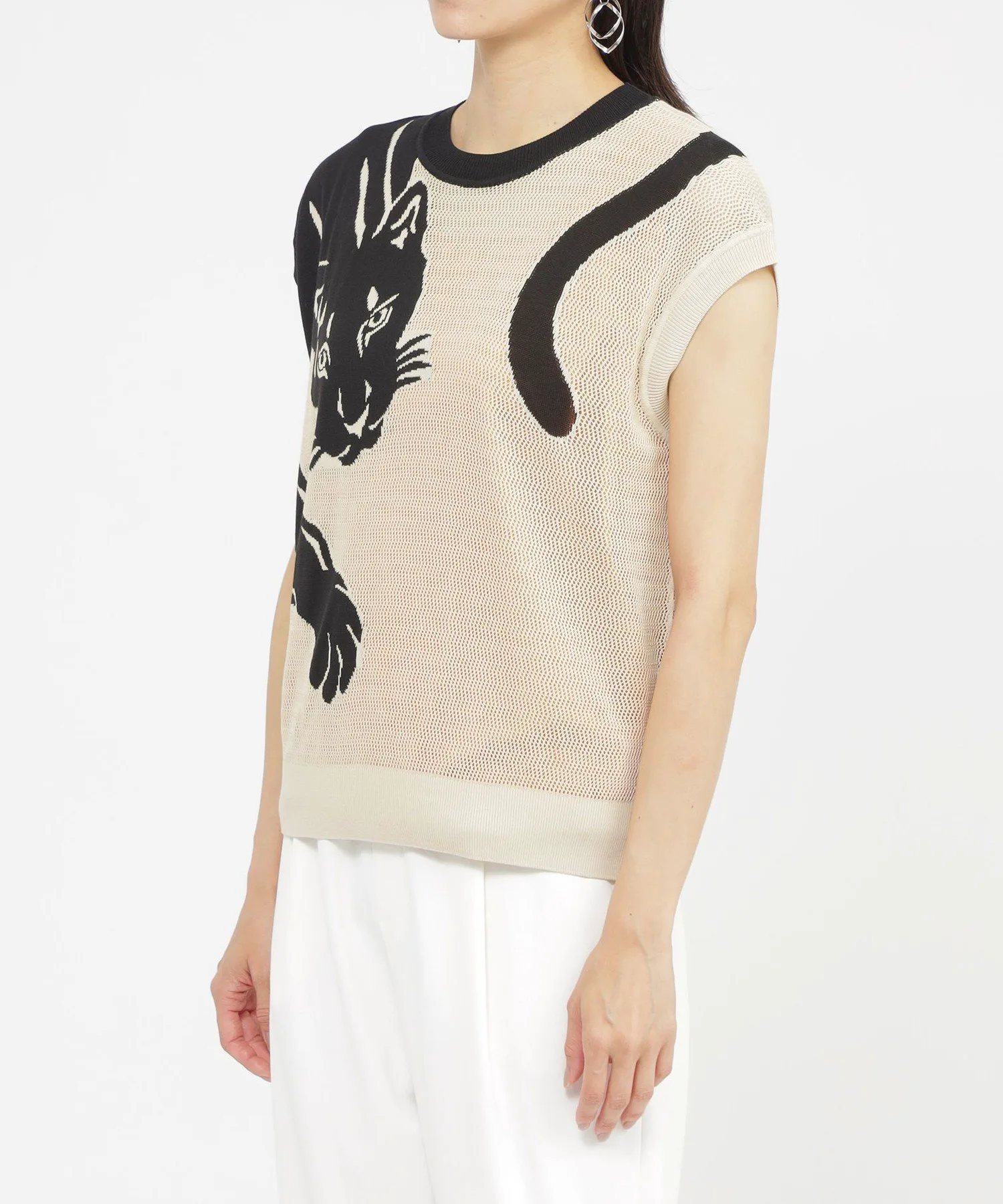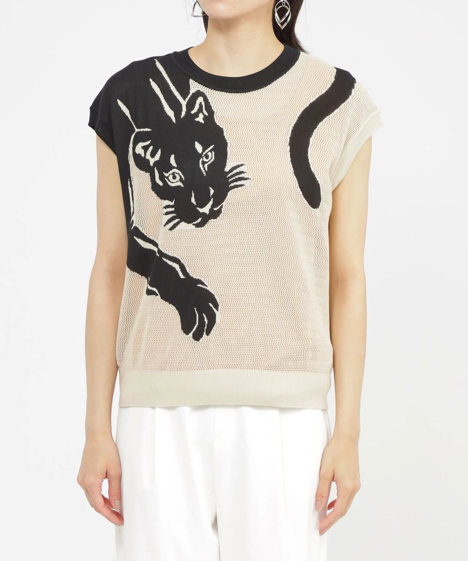 Яркий узор черной пантеры, жаккардово вплетенный в сетчатую ткань, привлекает внимание, делая этот трикотаж эффектным элементом гардероба, создающим современный образ. Мы рекомендуем носить его как нижний слой, например, с майкой или футболкой. Этот летний трикотаж гладкий и комфортный, идеально подходит для лета.