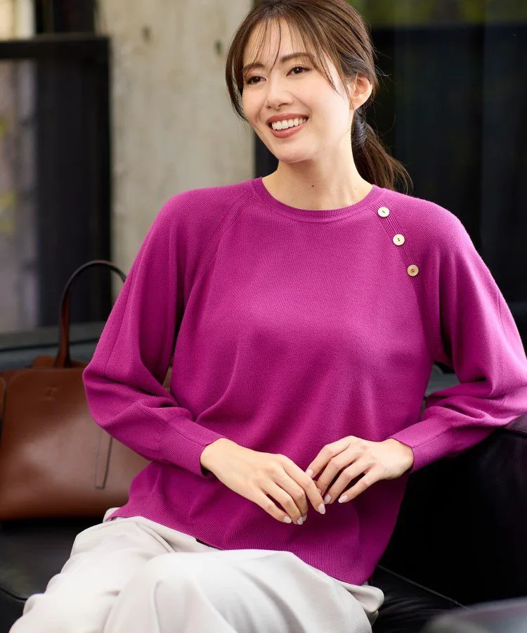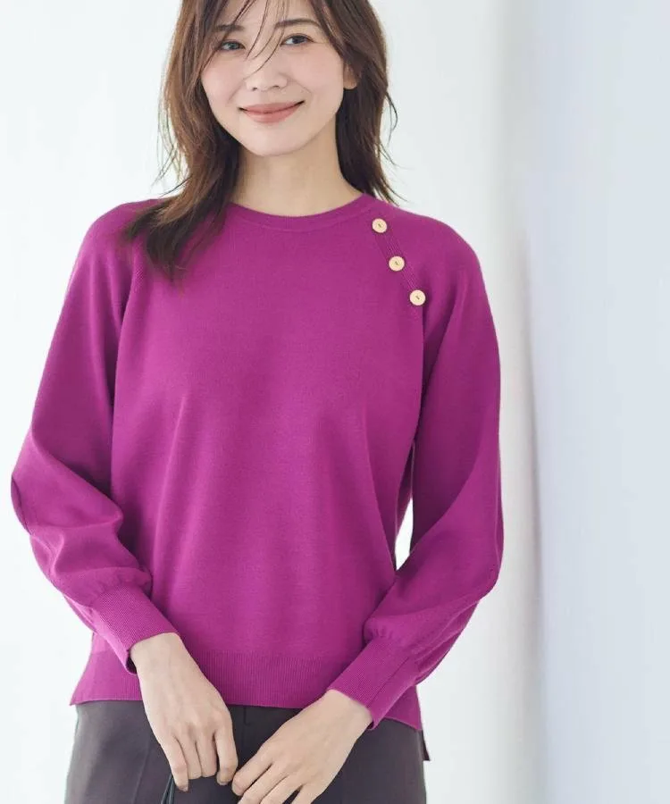 Линия реглана имеет рваный край, подчеркивающий ребристость, а пуговицы добавляют акцент.