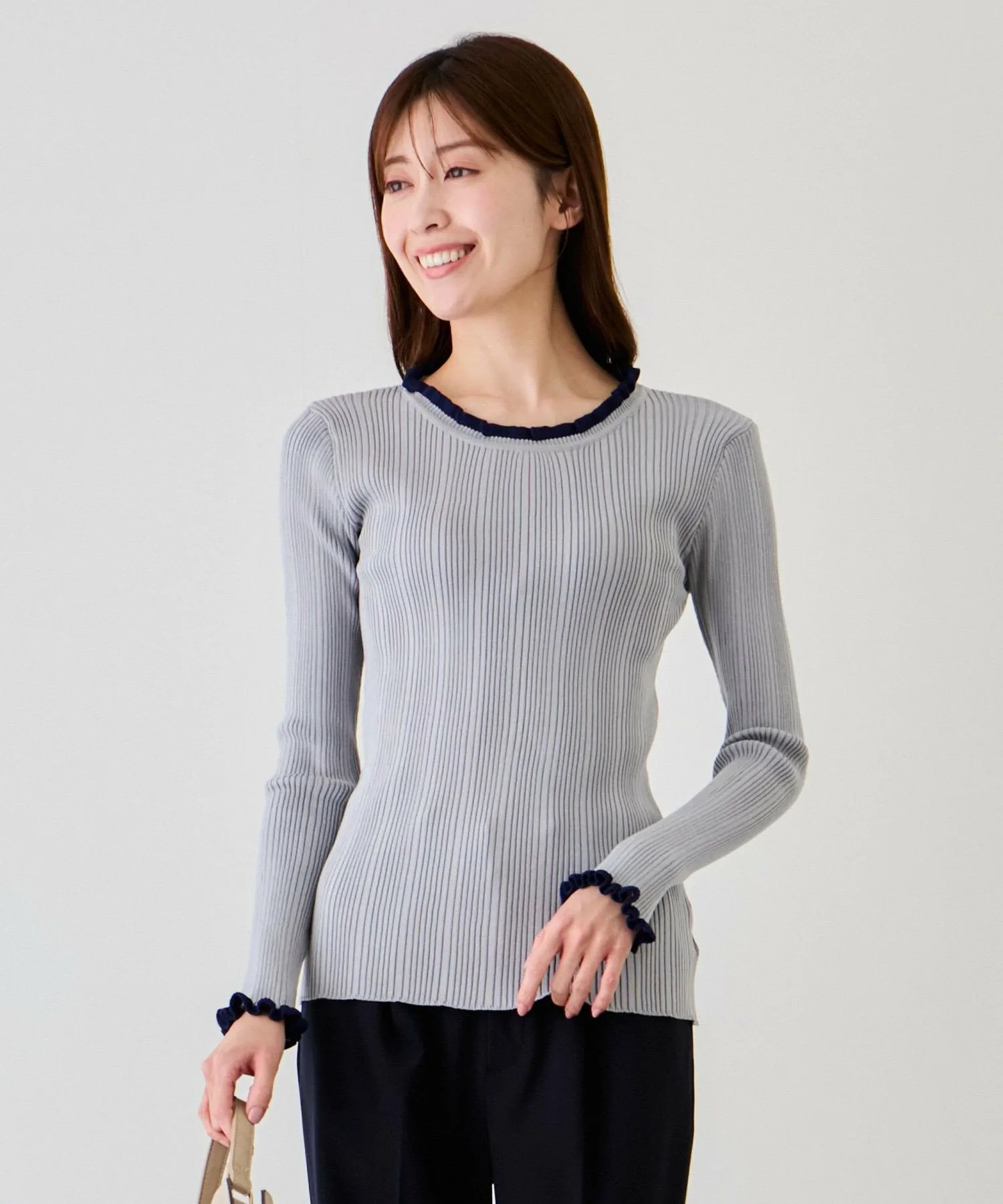 Топ в рубчик с привлекательным двухцветным дизайном, который отлично смотрится как сам по себе, так и в качестве нижнего слоя [Дизайн/Силуэт]