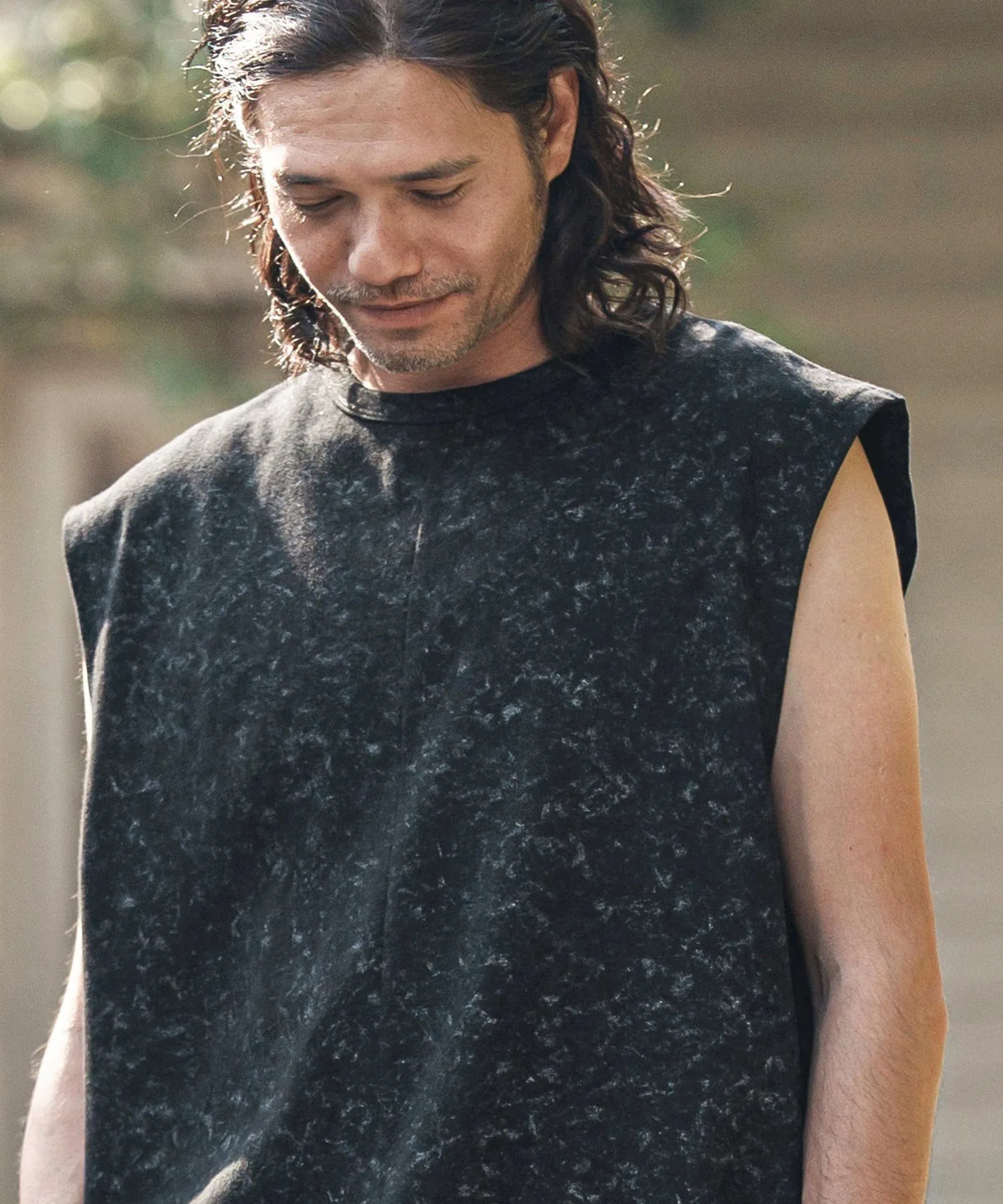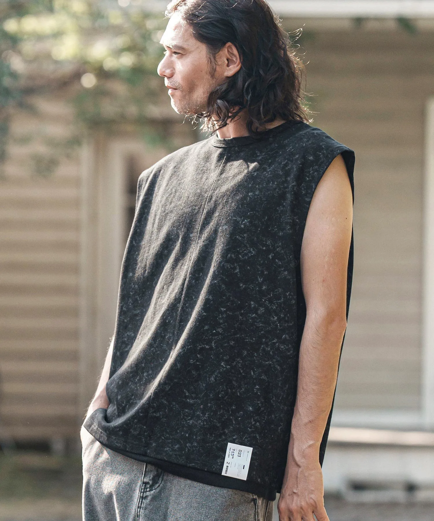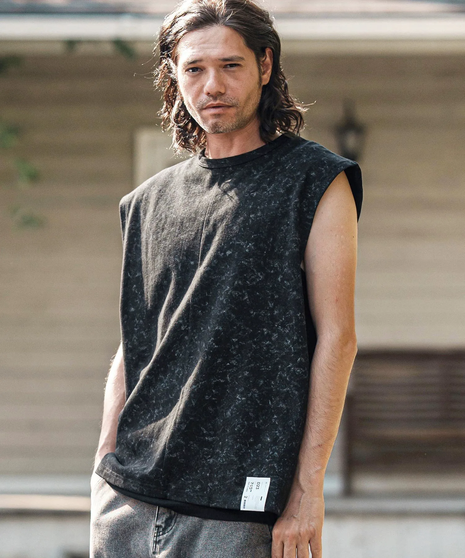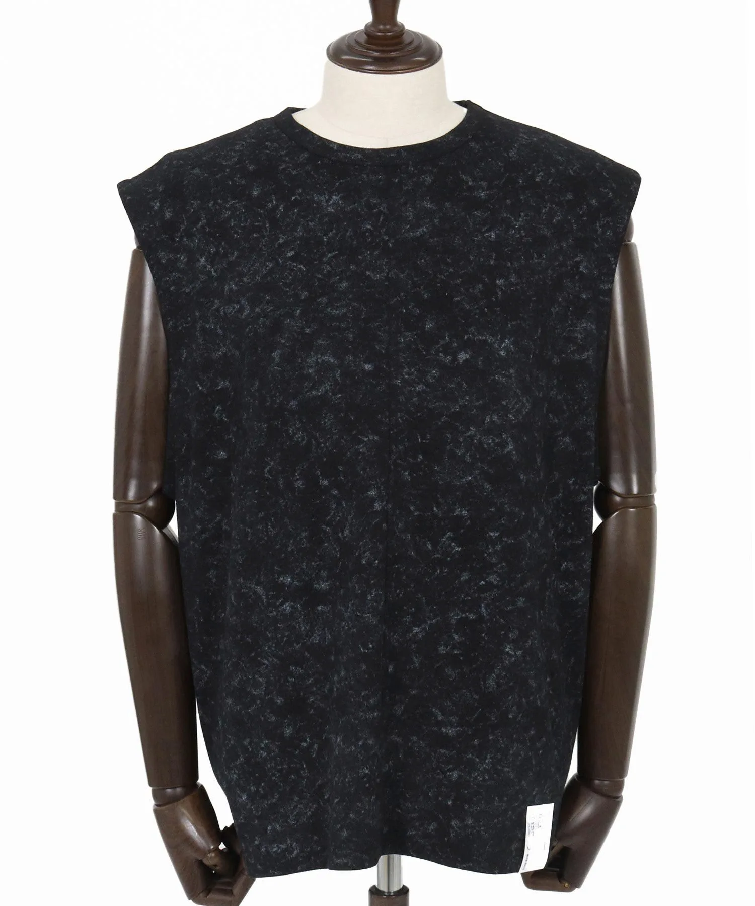 Футболка без рукавов, с асимметричным рисунком, выраженным в принте.
