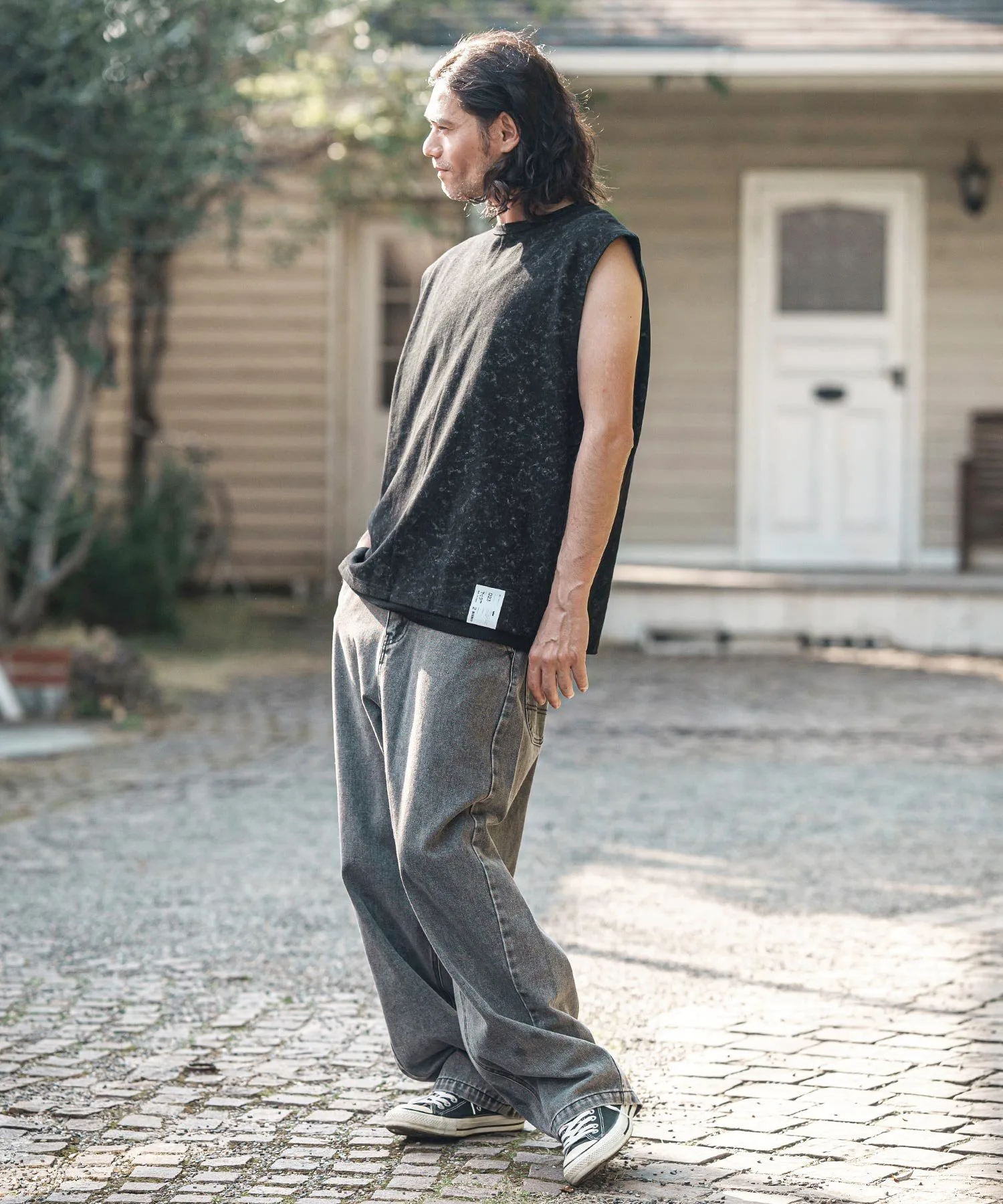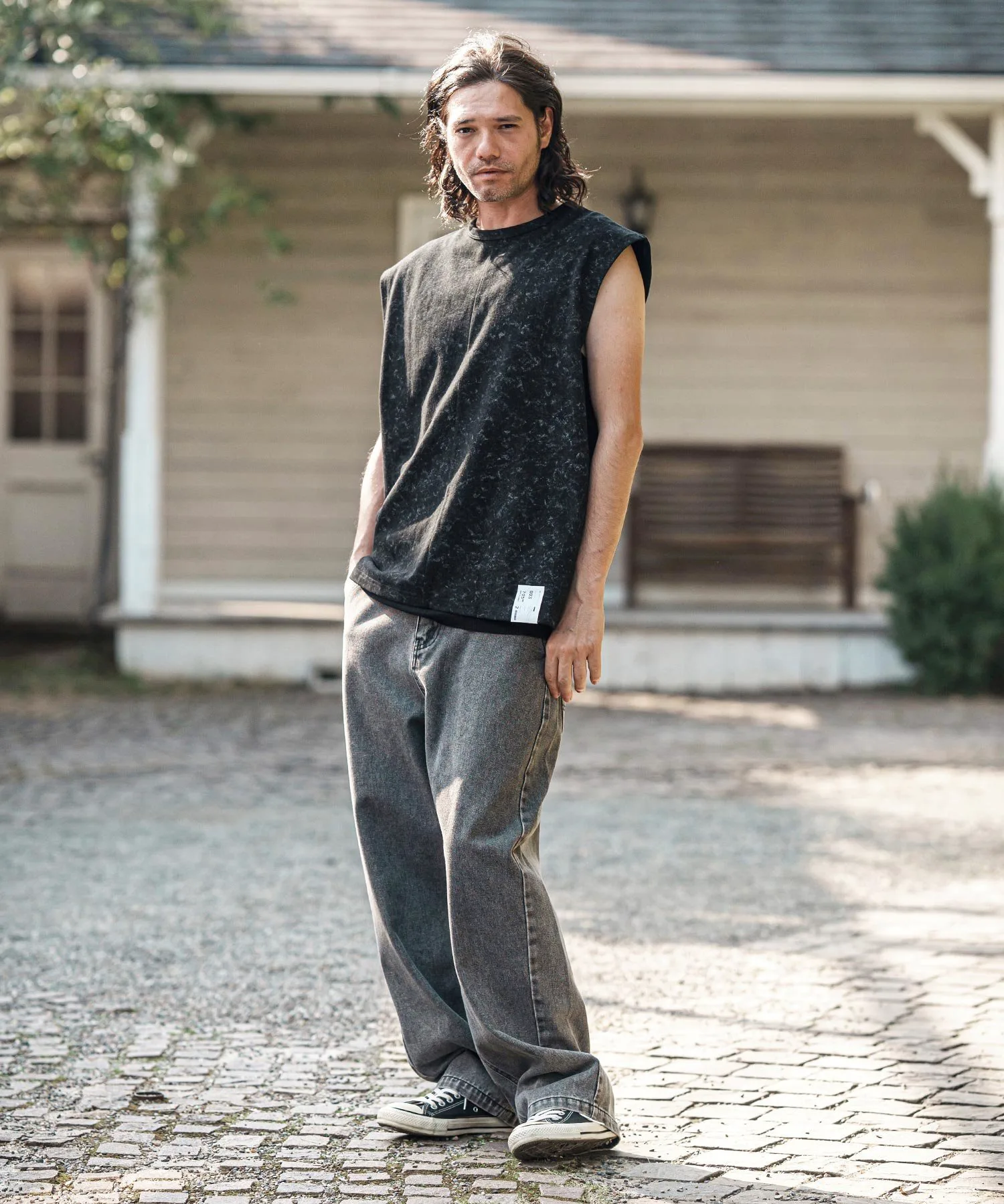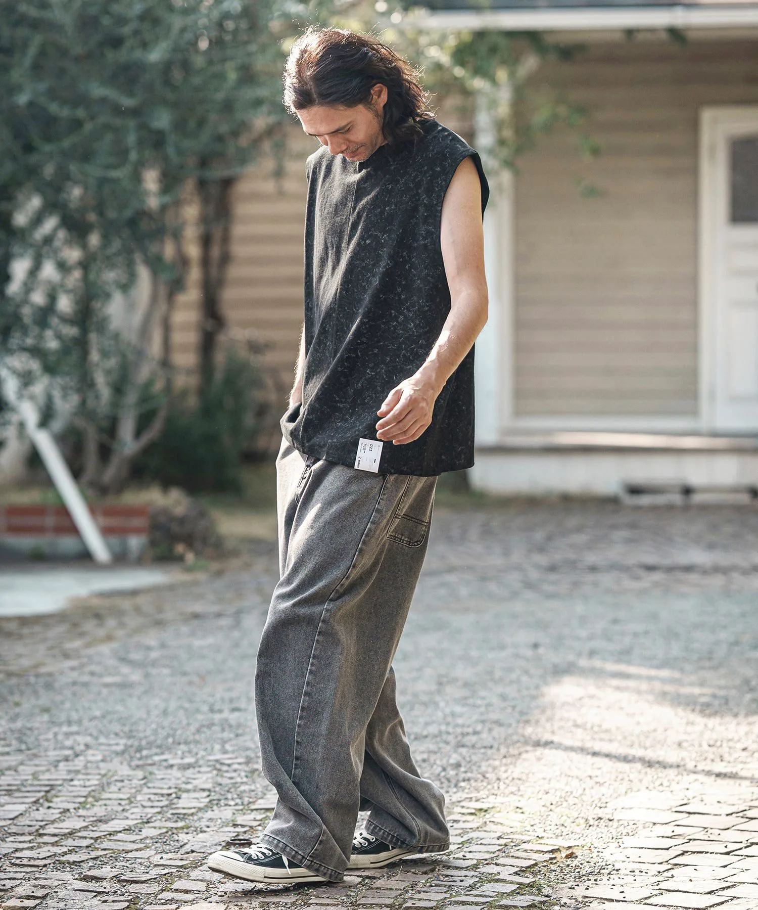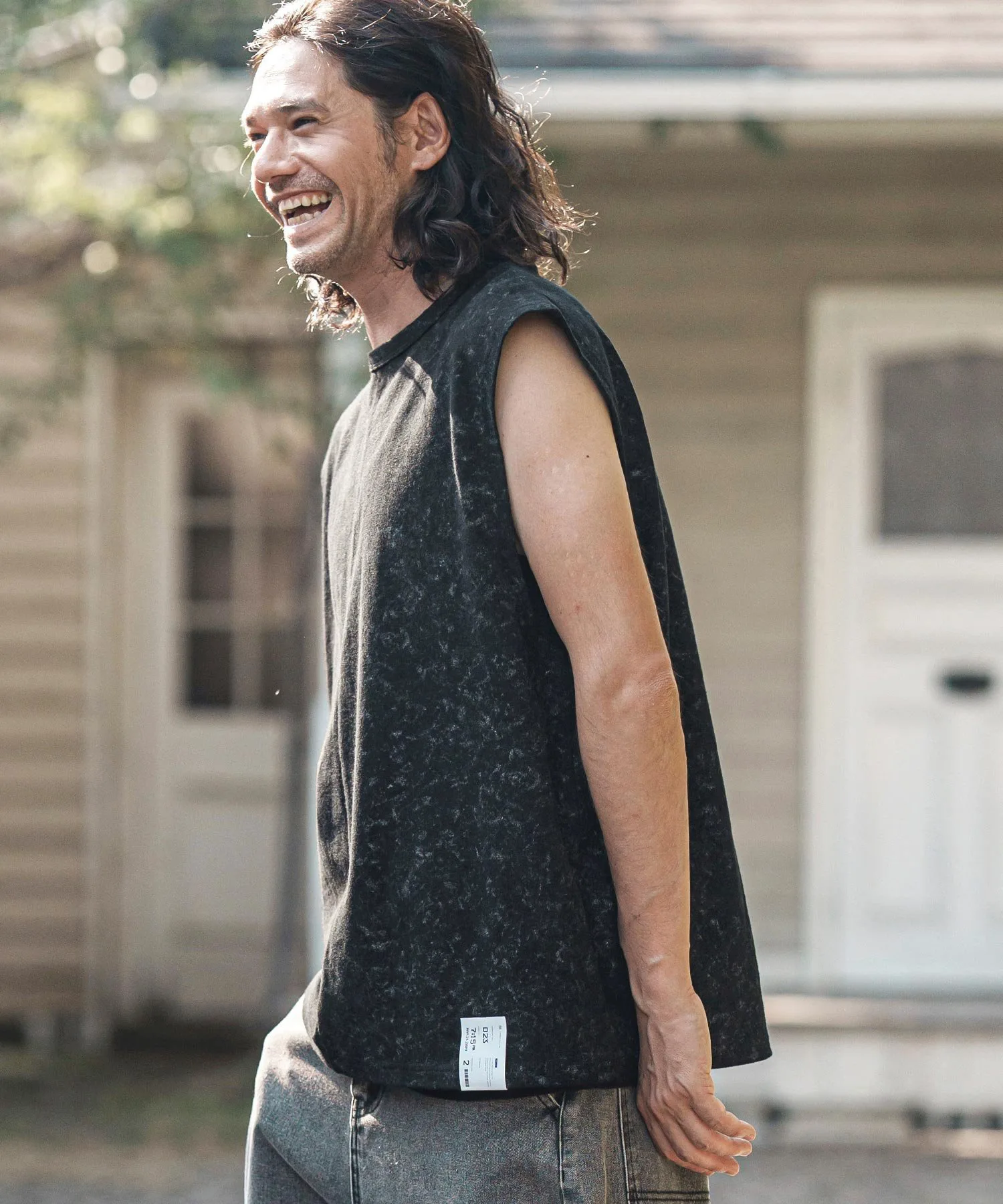 Футболка без рукавов, с асимметричным рисунком, выраженным в принте.