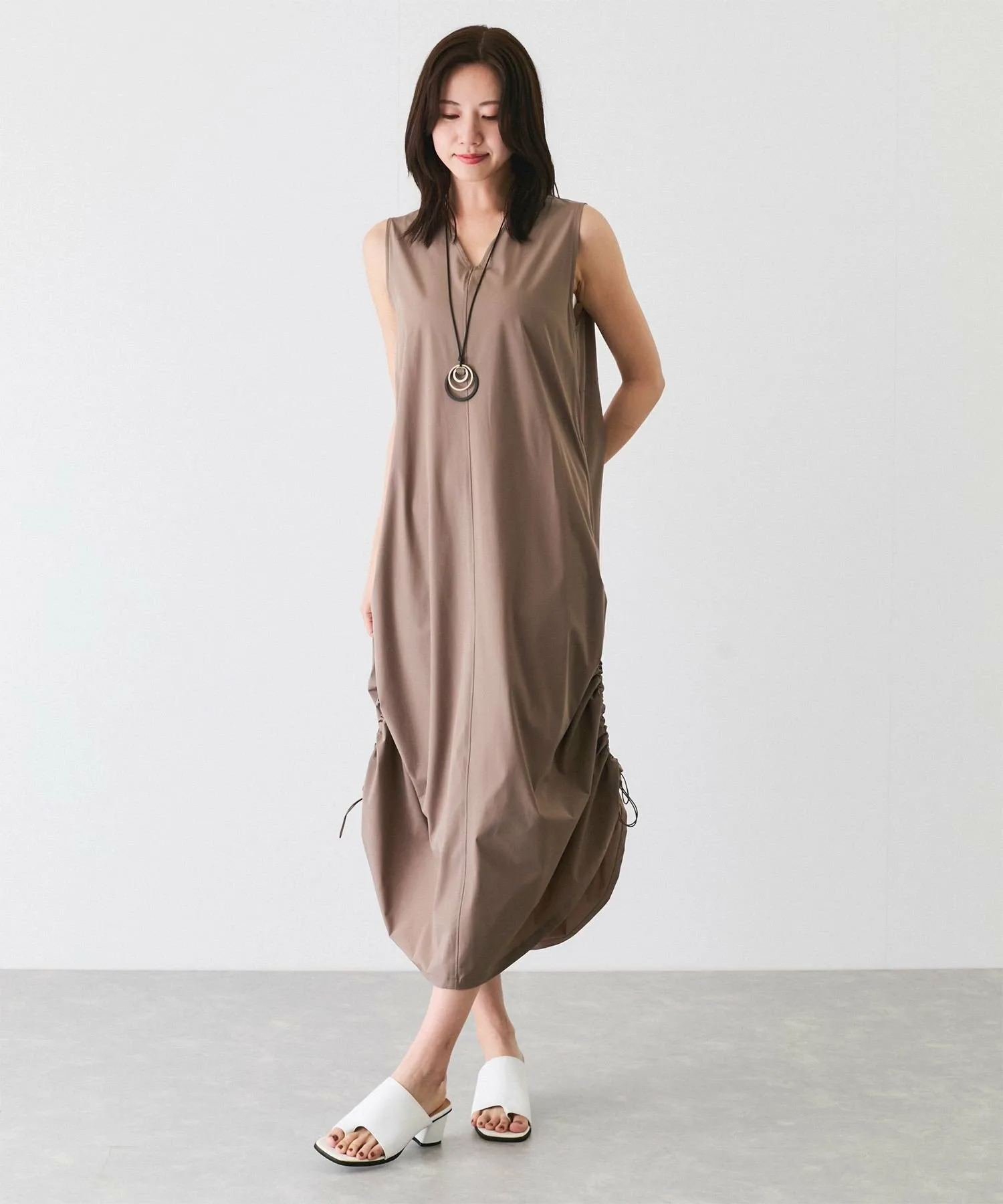 Это платье с боковой сборкой позволяет менять силуэт по вашему вкусу.