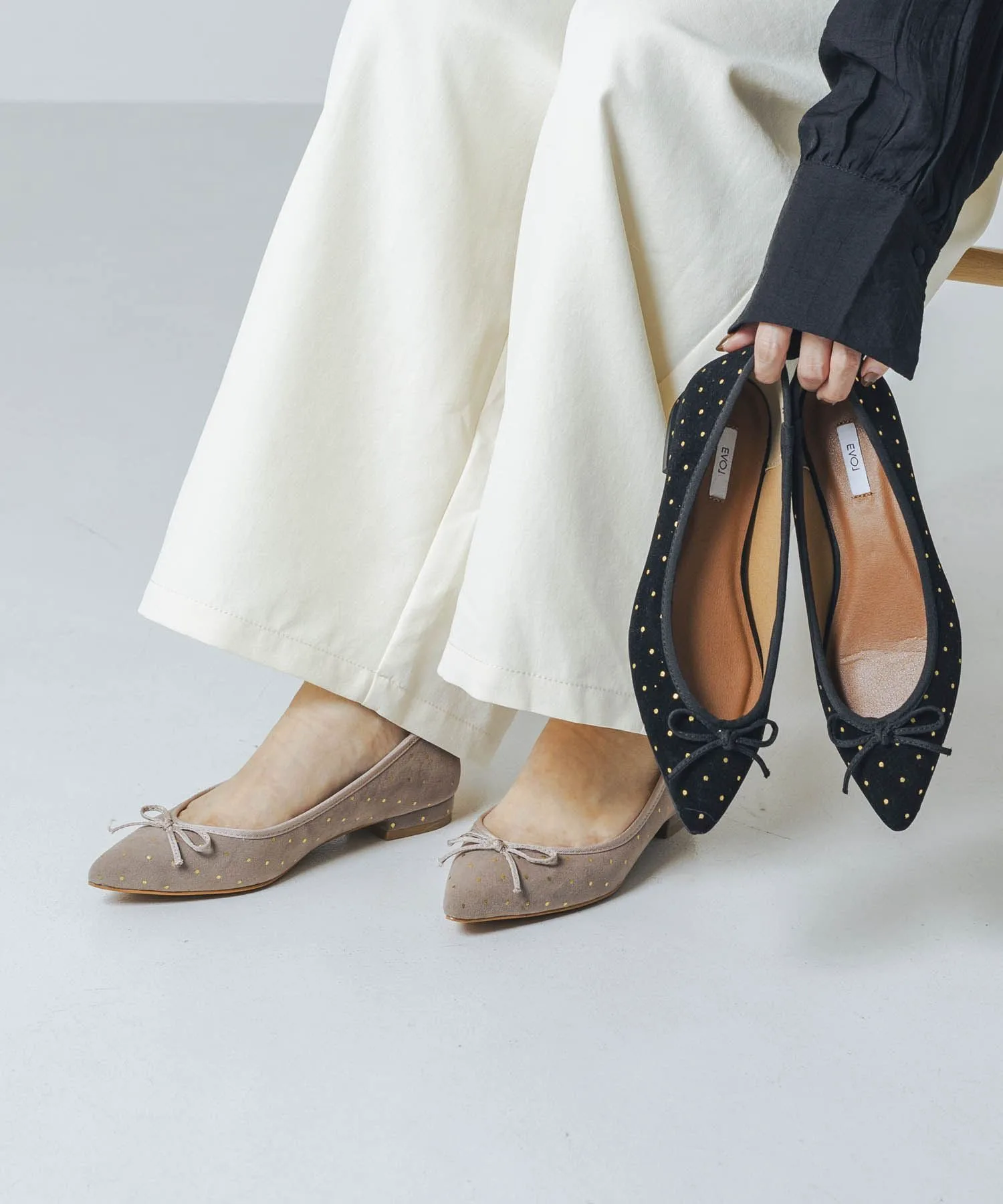 Хит продаж! Балетки возвращаются в новом материале, идеально подходящем для осенне-зимнего сезона! Заостренный носок и четкая форма придают вашим ногам аккуратный, солидный вид, не делая их слишком милыми. Модные велюроподобные материалы и узоры в горошек мгновенно создадут стильный образ. ◎ Мягкий, амортизирующий материал приятен на ощупь и удобен, наши сотрудники высоко оценили его комфорт, отметив, что он приятен для ног.