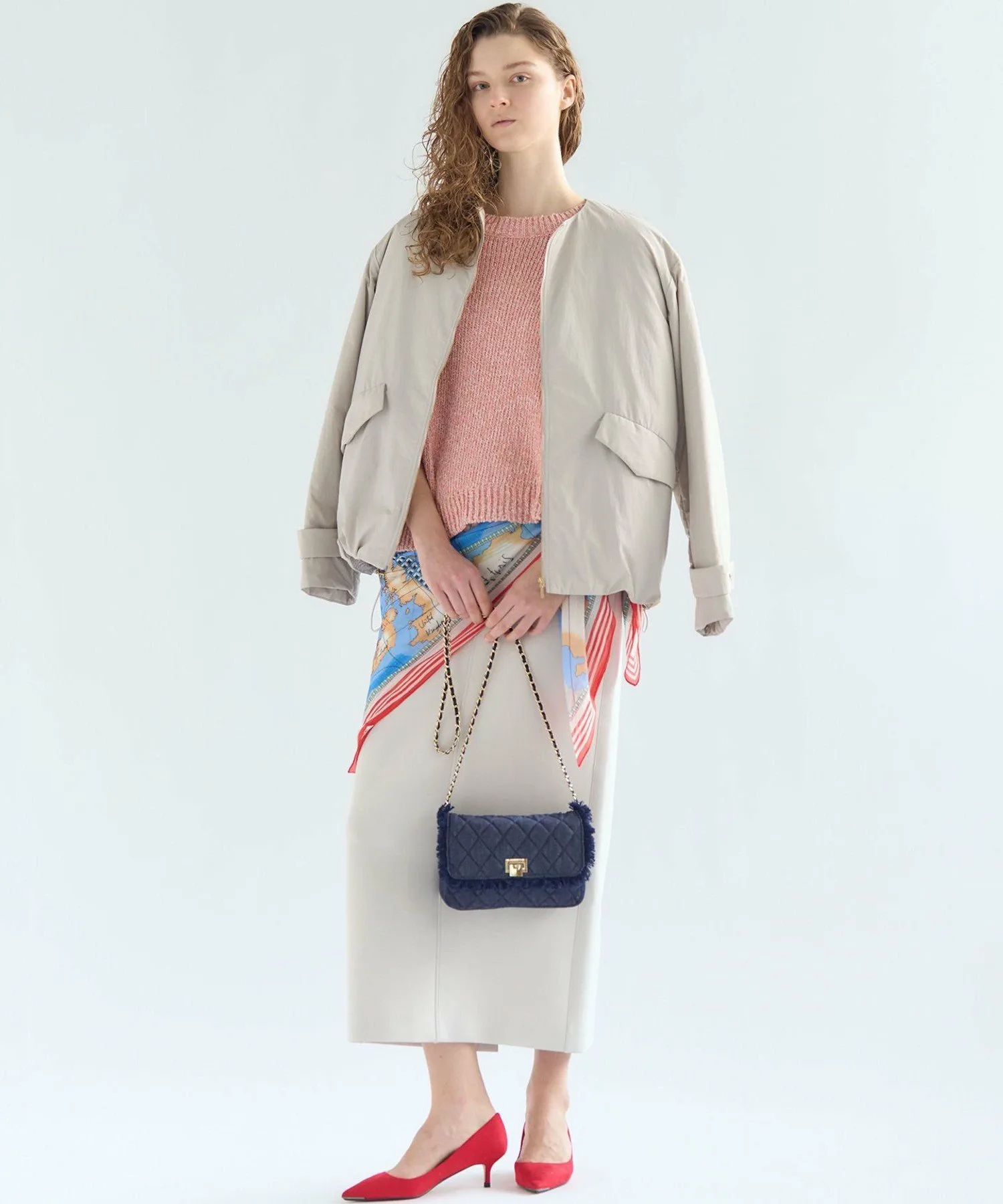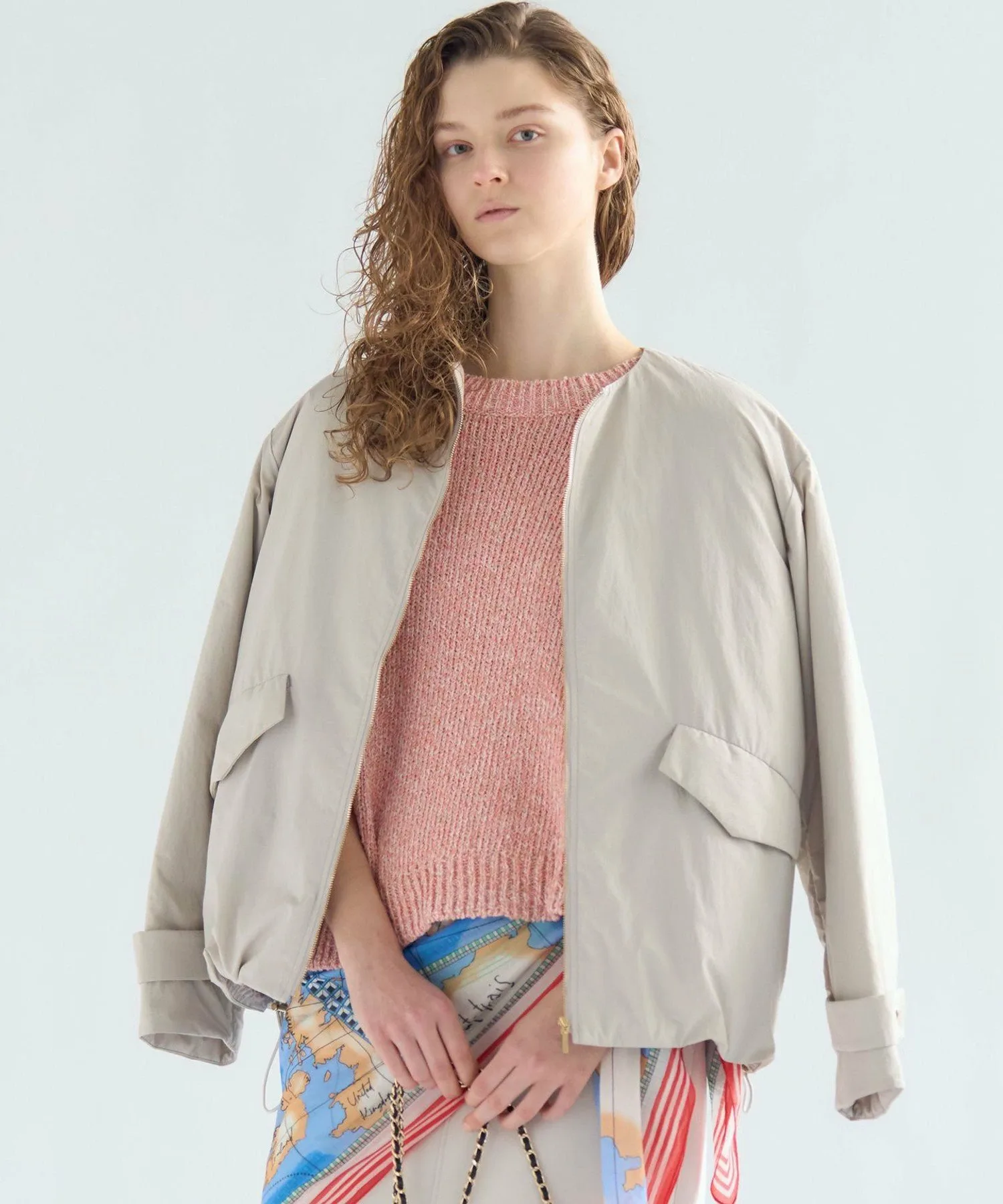 Эта легкая верхняя одежда изготовлена с использованием теплоизолирующего утеплителя, что делает ее идеальной для прохладной ранней весны. Меньше по объему, чем стандартная утепленная верхняя одежда 23ku для осени и зимы, она сохраняет тепло, позволяя носить ее длительное время в течение всего года. Дизайн без воротника и швов создает современный, сдержанный образ. Шнурок по низу позволяет создать округлый силуэт для игривого и забавного образа. Доступен в трех цветах: мягкий бежевый (#033), который выделяется ранней весной, мохово-зеленый (#053), который добавит глубины вашему образу, и простой черный (#005), который прекрасно сочетается с любым нарядом.