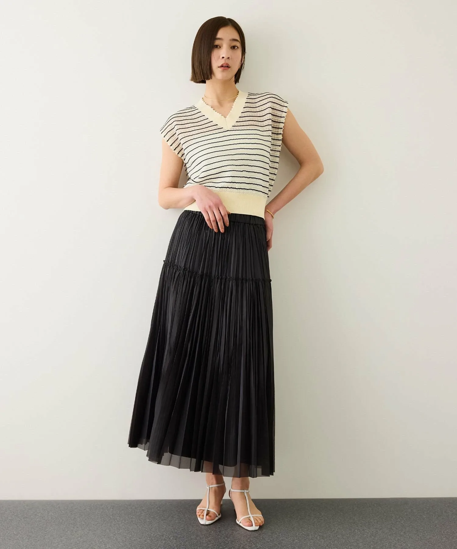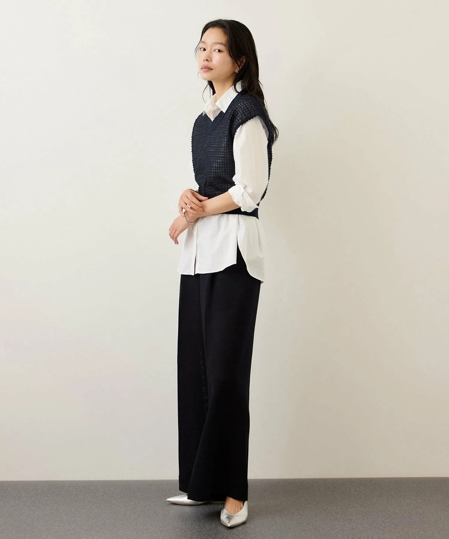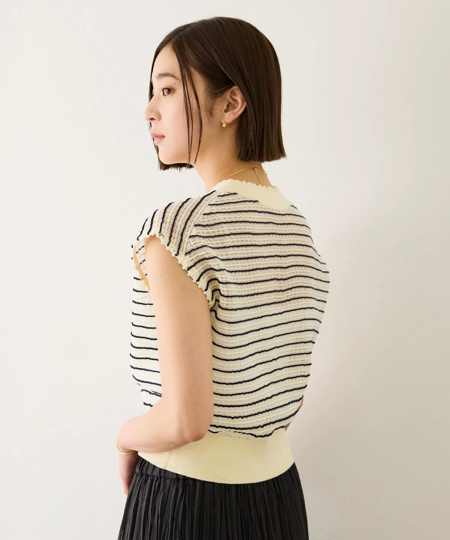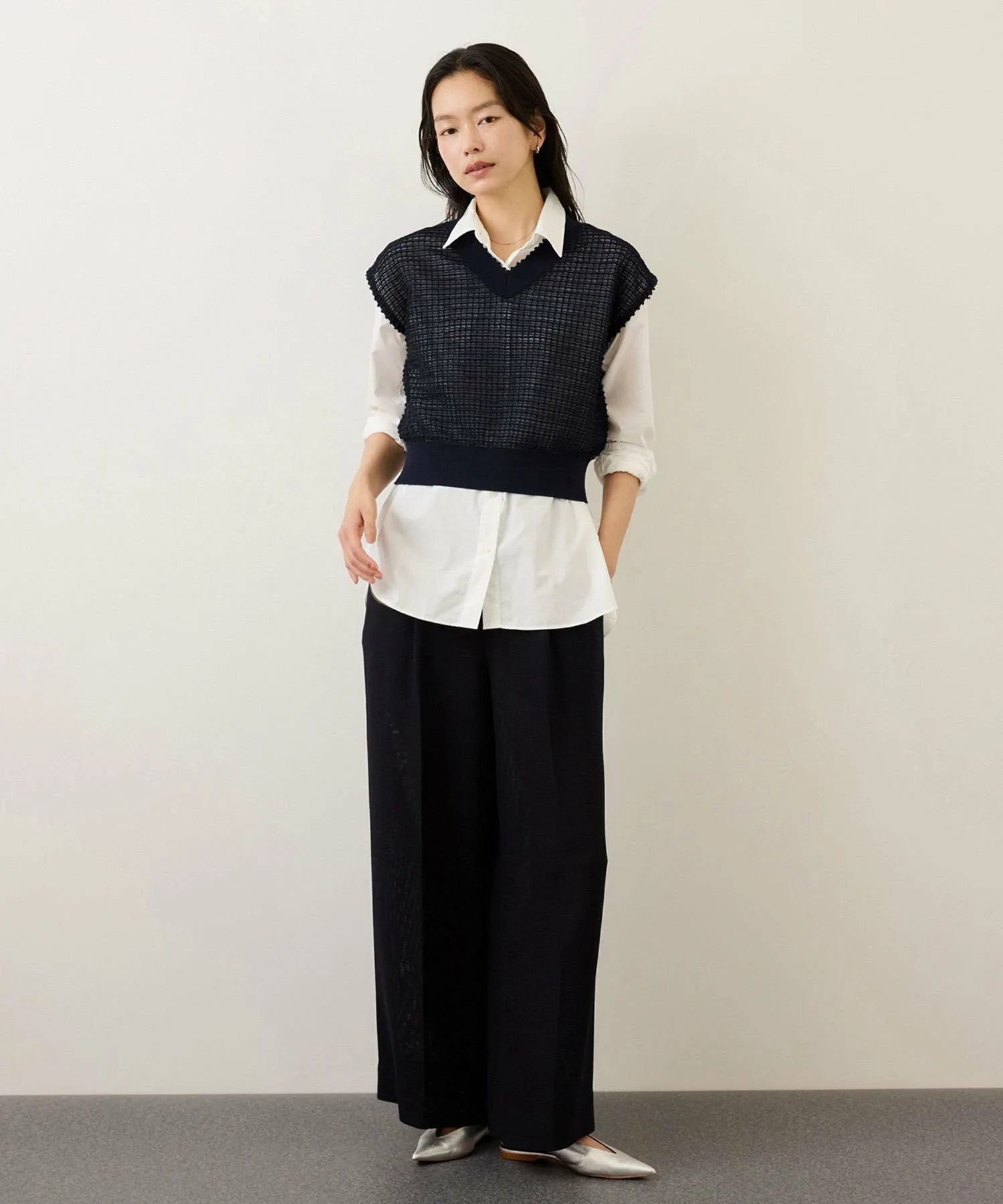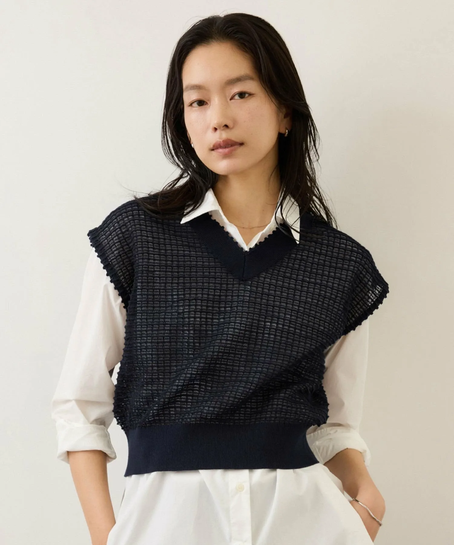 Прохладный, свежий летний трикотаж с изящными деталями. [Дизайн и силуэт] Этот пуловер выполнен из тонкой вязки с защипами для элегантного вида. Воротник и манжеты украшены крючком пико, что добавляет нотку непринужденной милости. Французские рукава создают аккуратный, обтекаемый вид на плечах, придавая ощущение прохлады и легкости. Вязаный узор элегантно колышется при каждом движении, что делает этот дизайн идеальным для утонченных женщин. [Рекомендуемые сочетания] Эта вещь идеально подходит как к юбкам, так и к брюкам, что делает ее универсальным элементом вашего гардероба. Сочетайте ее с элегантными льняными или шелковыми брюками для создания утонченного, зрелого образа. [Материал] Изготовленный из мягкой, нежной вязки с защипами, он сохранит свой красивый силуэт на долгие годы, если просто разложить его для сушки после стирки. Это роскошный материал, приятный на ощупь, легкий и удобный в ношении.