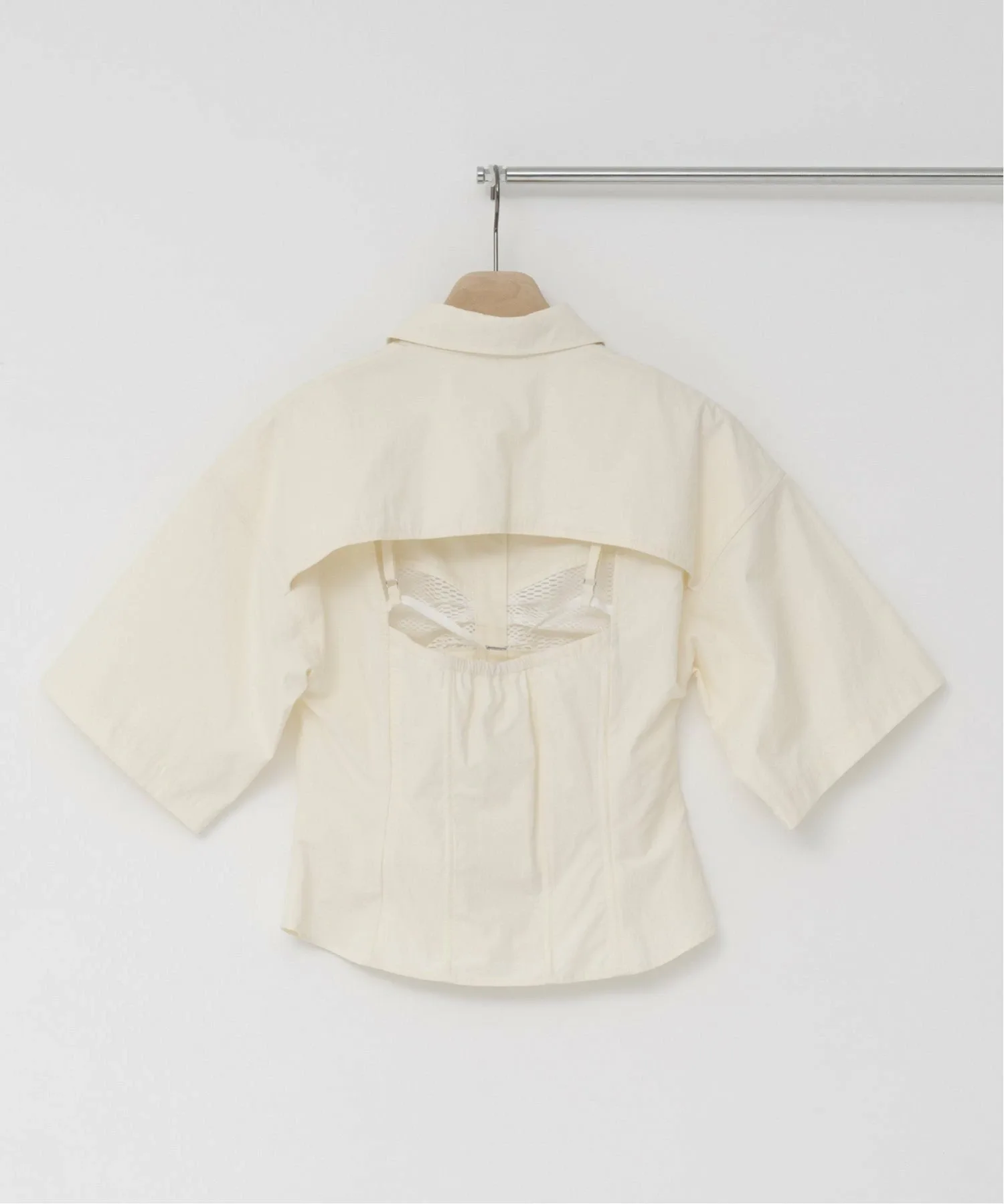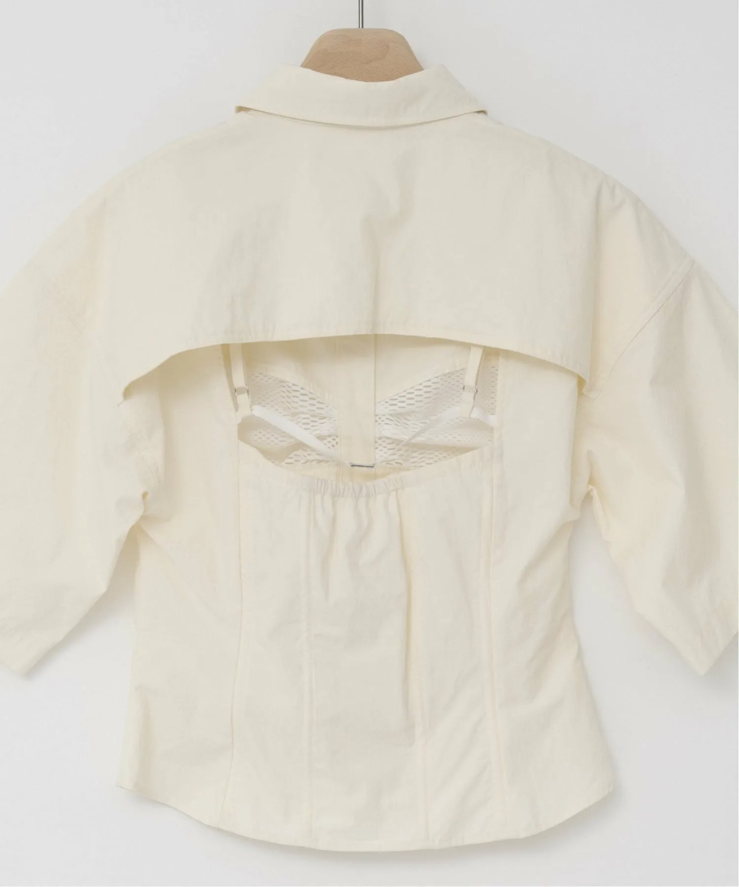 Спинка имеет смелый крой, создающий расслабленный образ.