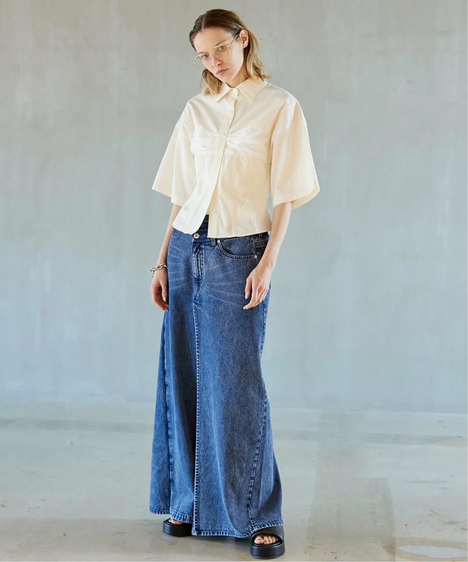 Рекомендуем заправить низ рубашки, оставив бахрому видимой в качестве акцента.