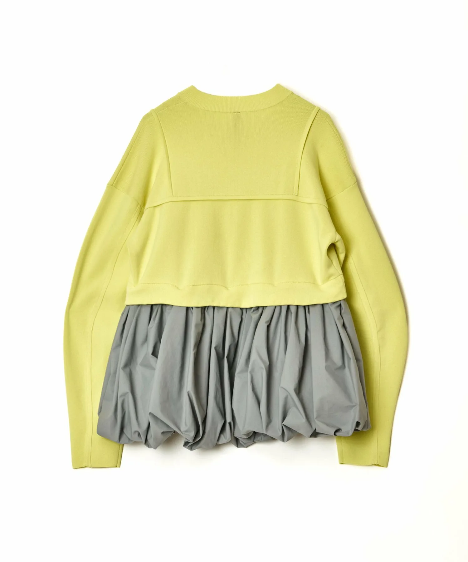 Смелый дизайн в виде «баллона», выполненный из другого материала по низу, создает в целом четко очерченный силуэт.