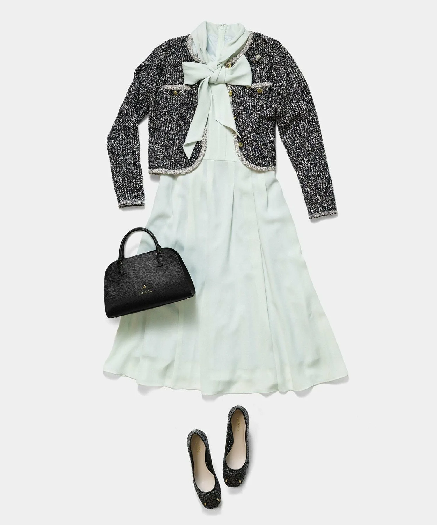 Бабочка добавляет элегантности. Приталенный силуэт, заправленные и собранные детали придают ему изысканный вид, характерный для TOCCA.