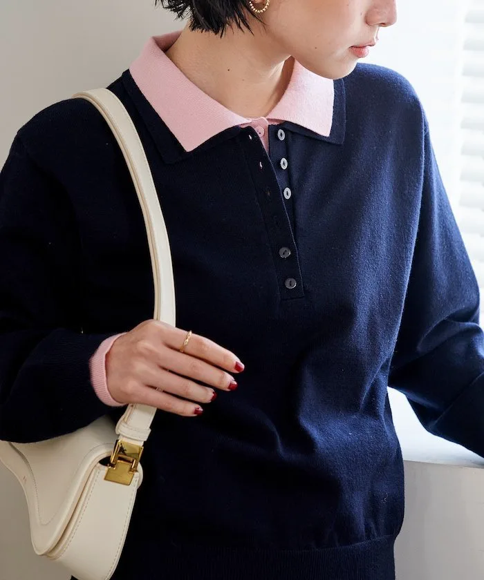●Типичное трикотажное поло, подобранное по цвету, с двухслойным дизайном, создающим изысканный стиль само по себе