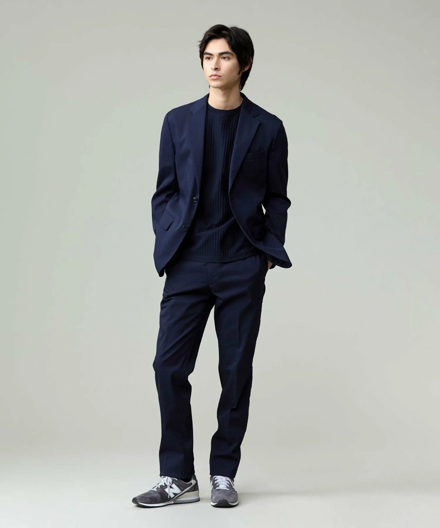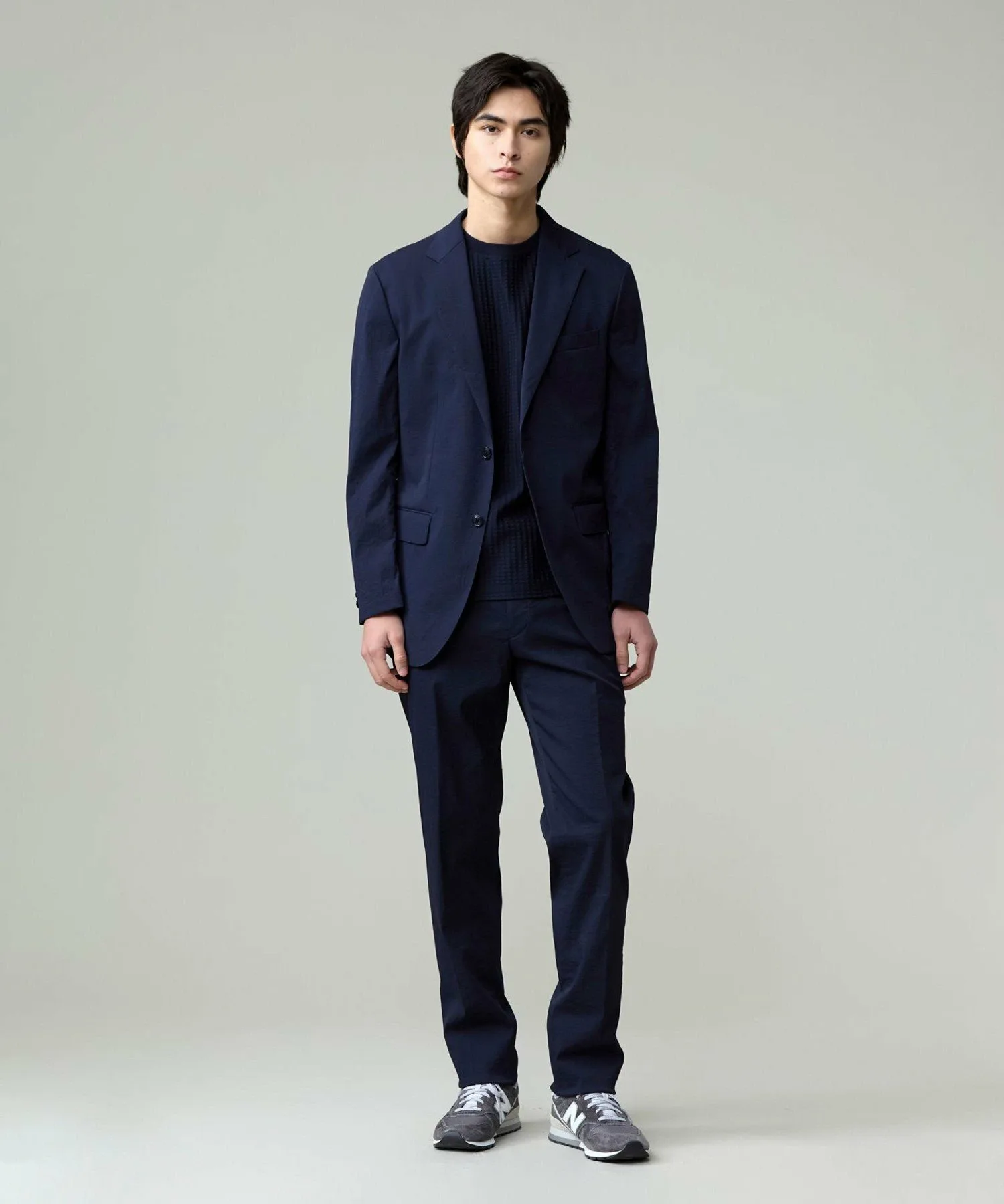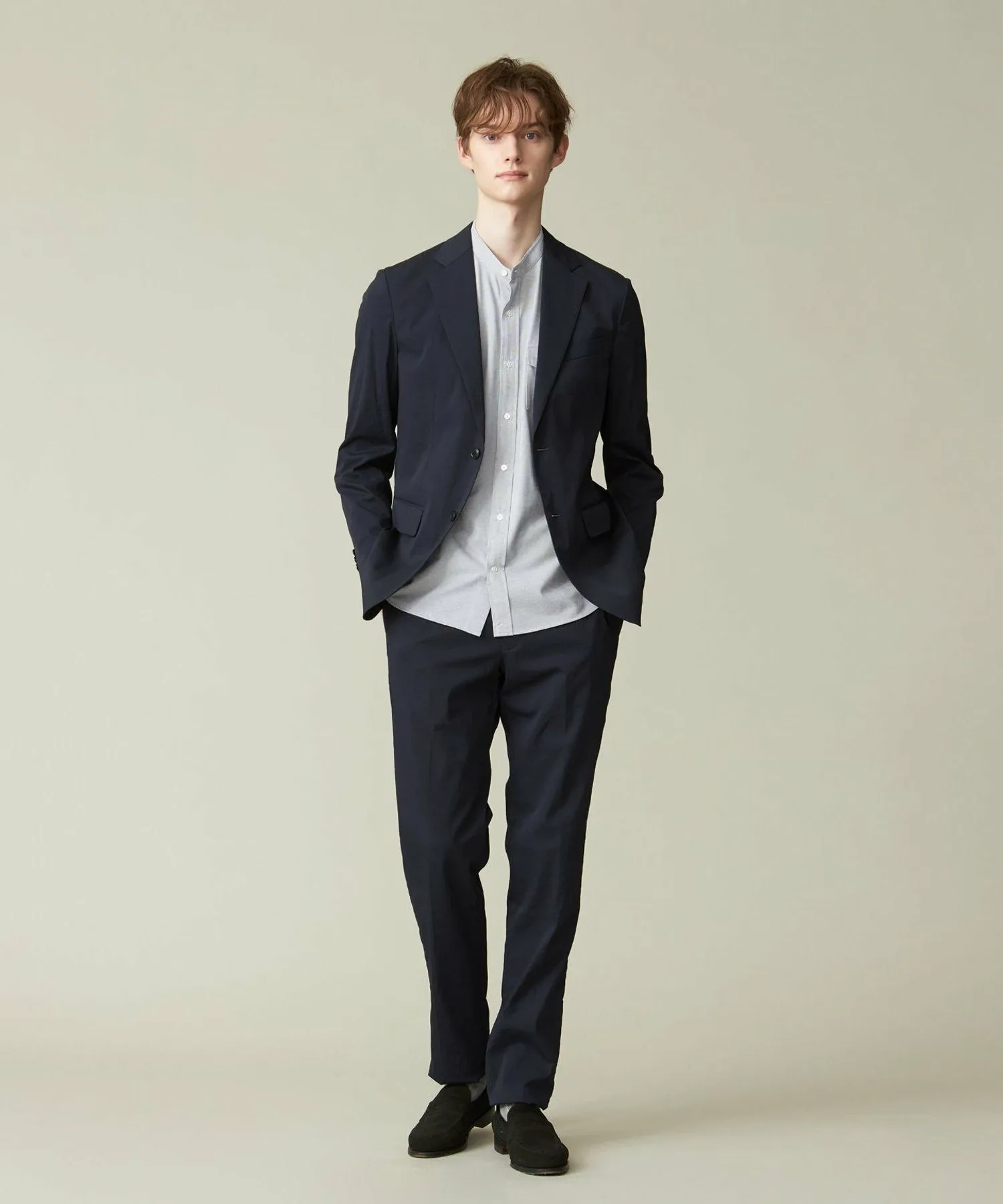 Силуэт: Как и аутентичная модель, используемая в классических костюмах J.PRESS, он имеет дизайн «естественных плеч», который создает плавную линию плеч без чрезмерной подкладки. Он ярко отражает философию одежды J.PRESS и сохраняет суть американского традиционного стиля. Для современного, элегантного вида вытачки на груди были удалены, а центральная шлица на крючке заменена простой центральной шлицей. В этой модели также отсутствуют красная окантовка и карманы для ручек, что делает ее более легкой и мягкой на ощупь.