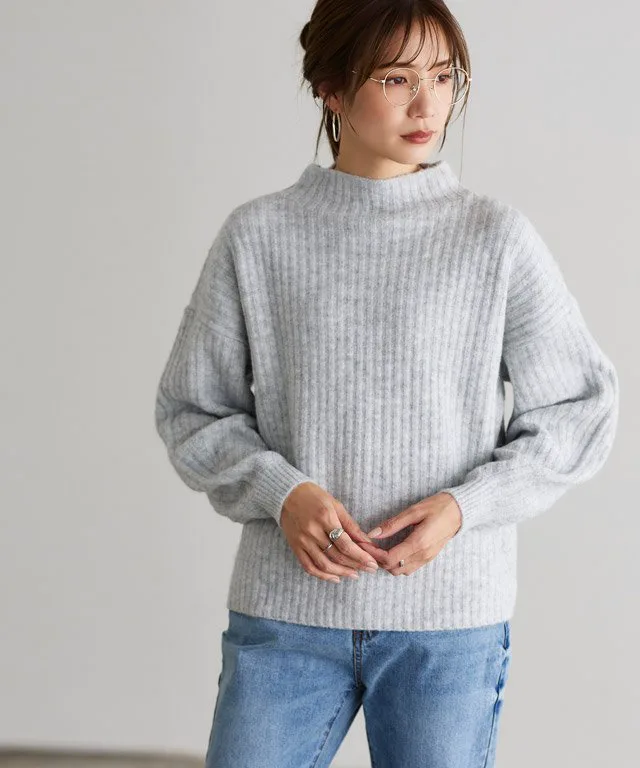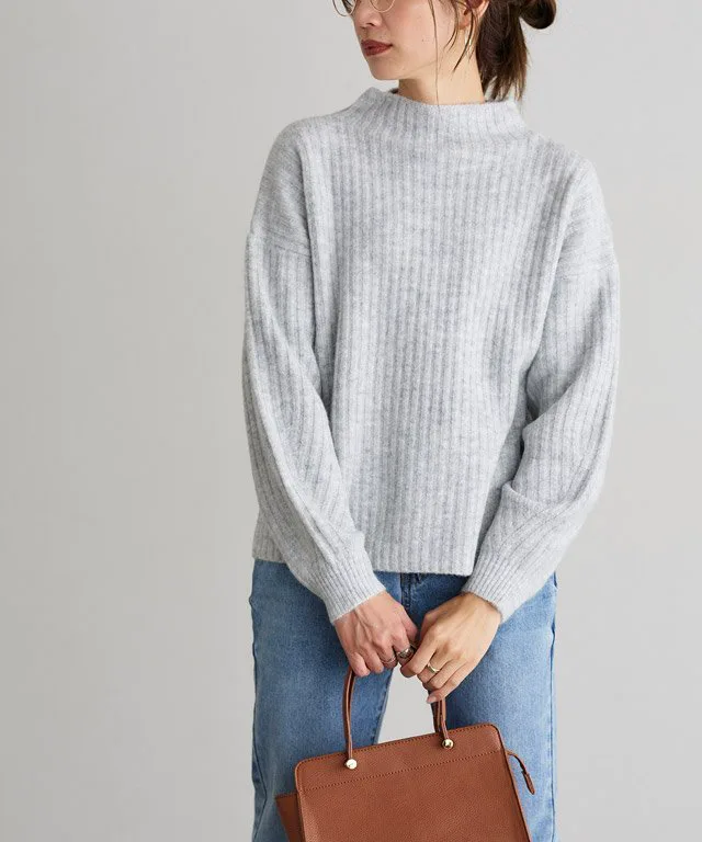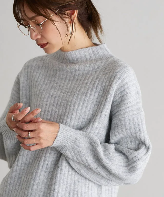 Мягкий, моющийся трикотаж с высоким воротником и объемными рукавами для создания женственного, округлого силуэта.