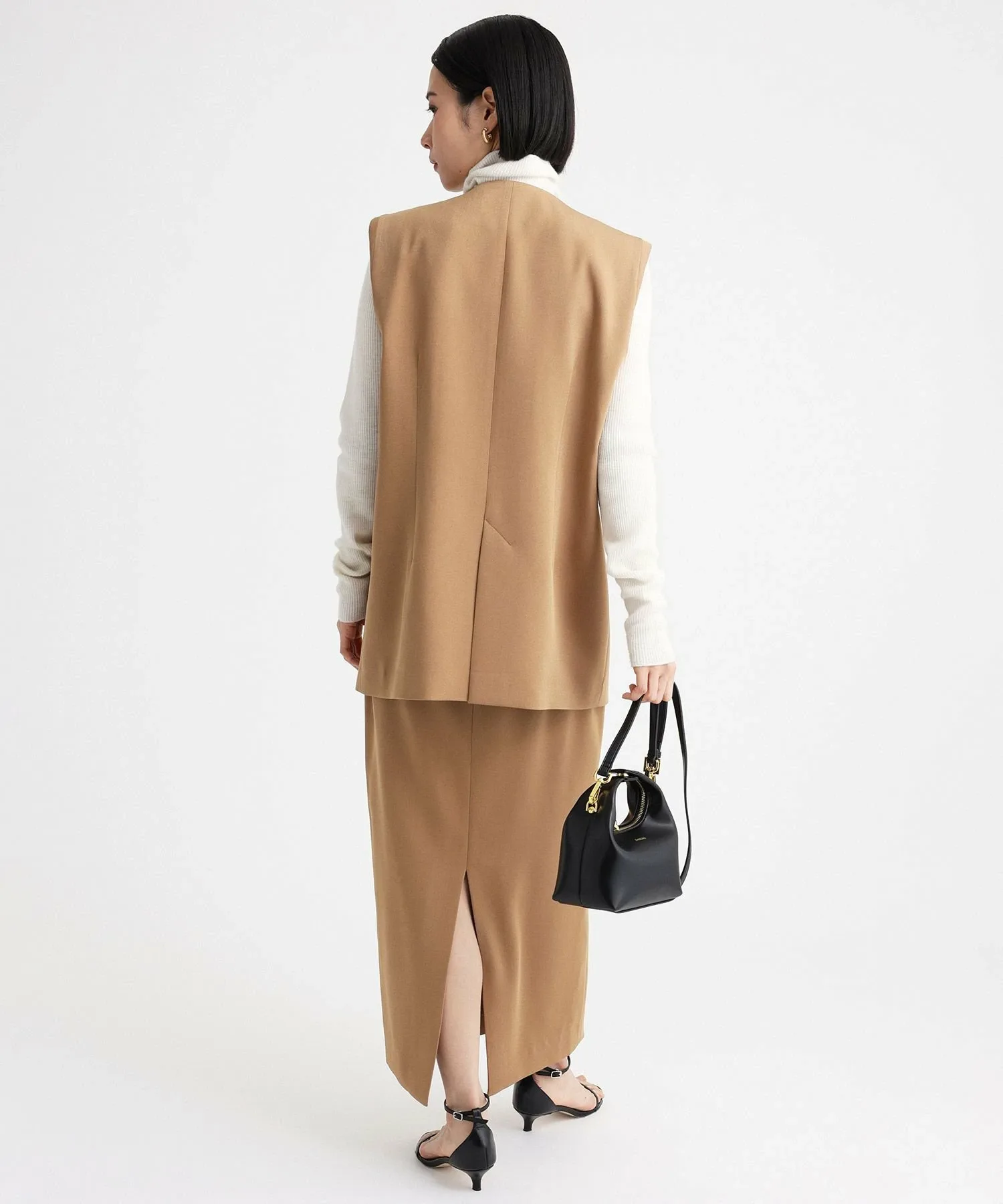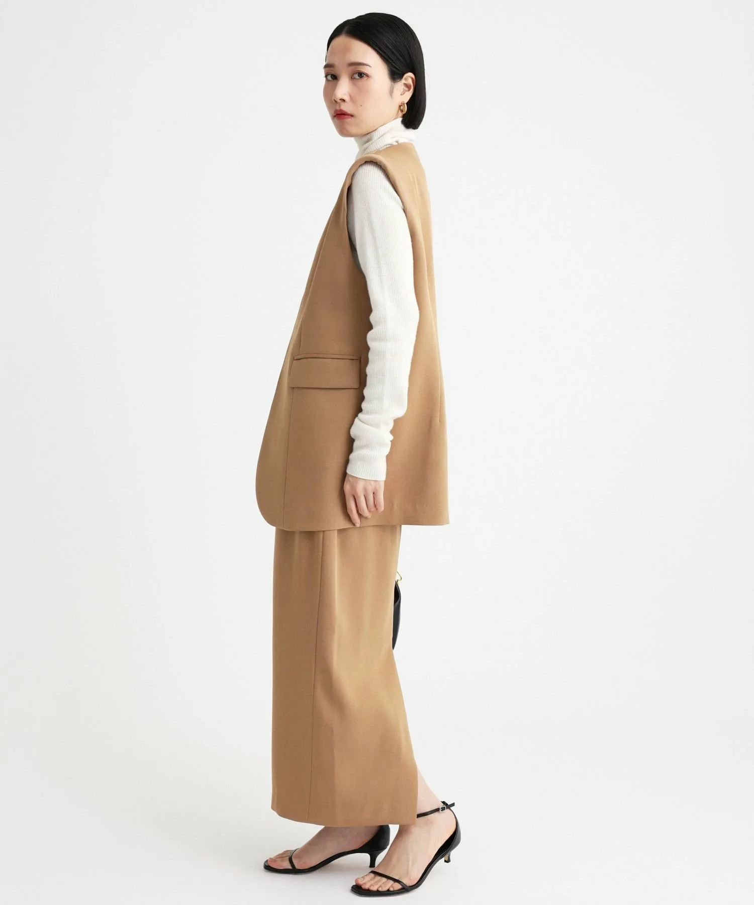 - Длина хорошо сбалансирована, выше щиколотки, и мы рекомендуем сочетать ее с жилетом из того же материала.