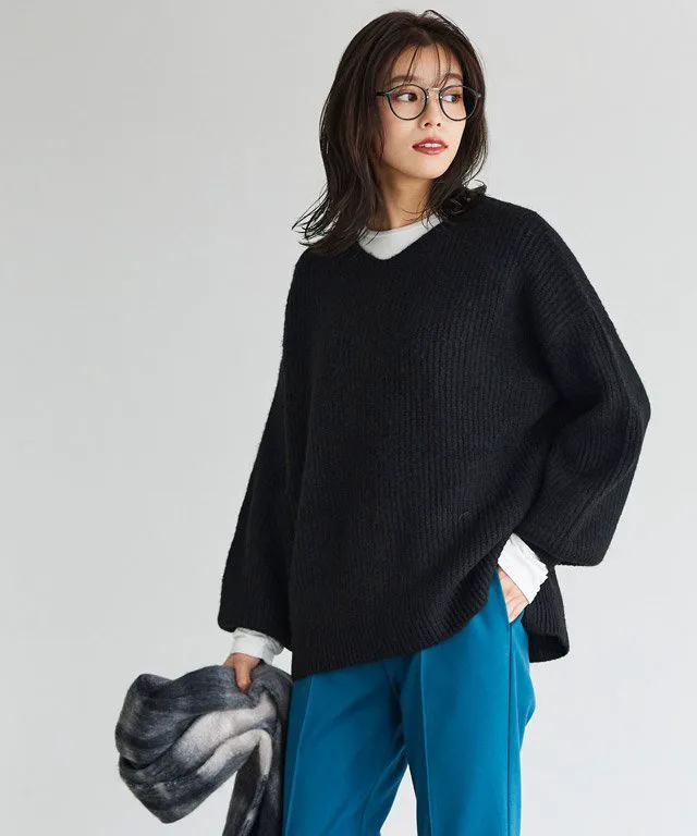 Трехмерная вязка создает округлые, объемные рукава. Силуэт достаточно свободный для ношения на улице. Доступен в двух вариантах выреза: V-образный, который легко сочетается с блузкой с узором, и вырез-лодочка для создания женственного образа.