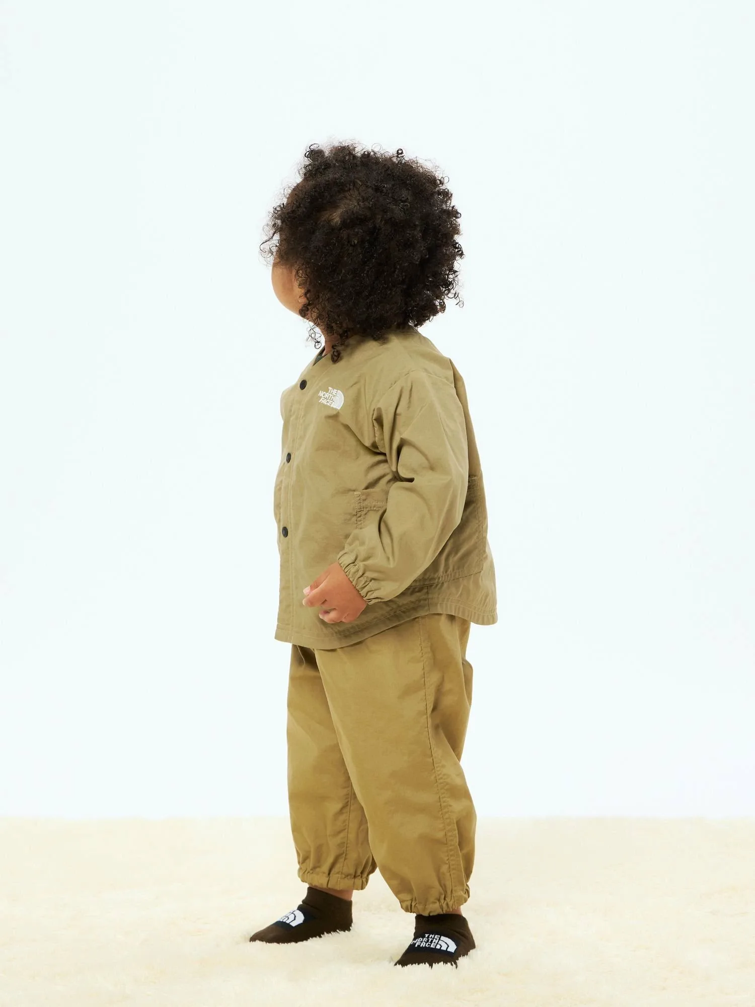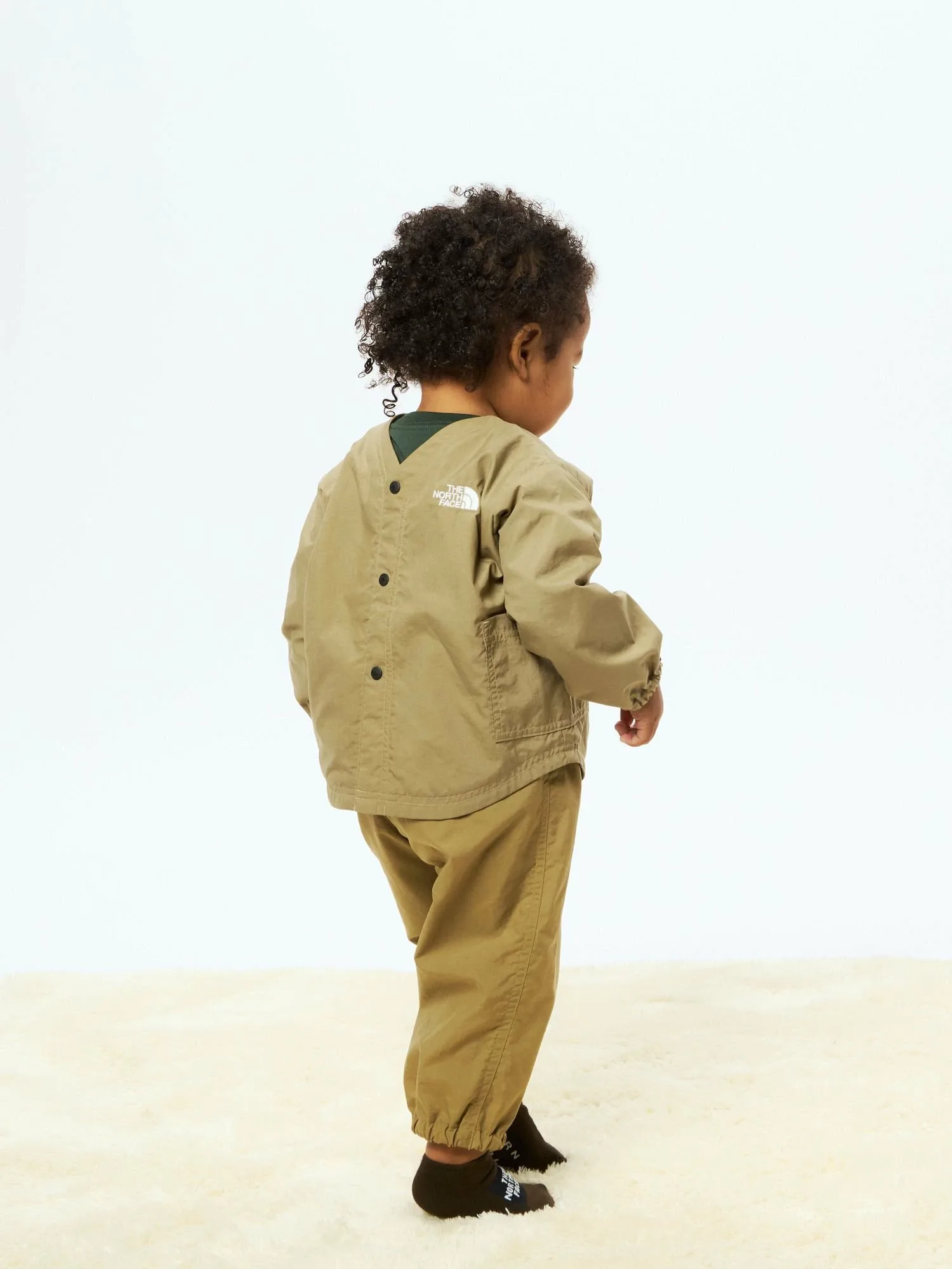Одна сторона имеет круглый вырез, а другая — V-образный вырез с точечными пуговицами для удобства надевания и снимания, поэтому его можно носить любой стороной вперед. Легкая и прочная нейлоновая ткань имеет водоотталкивающую обработку. Простота в уходе позволяет легко стирать его. Карманы с обеих сторон легко доступны с любой стороны.