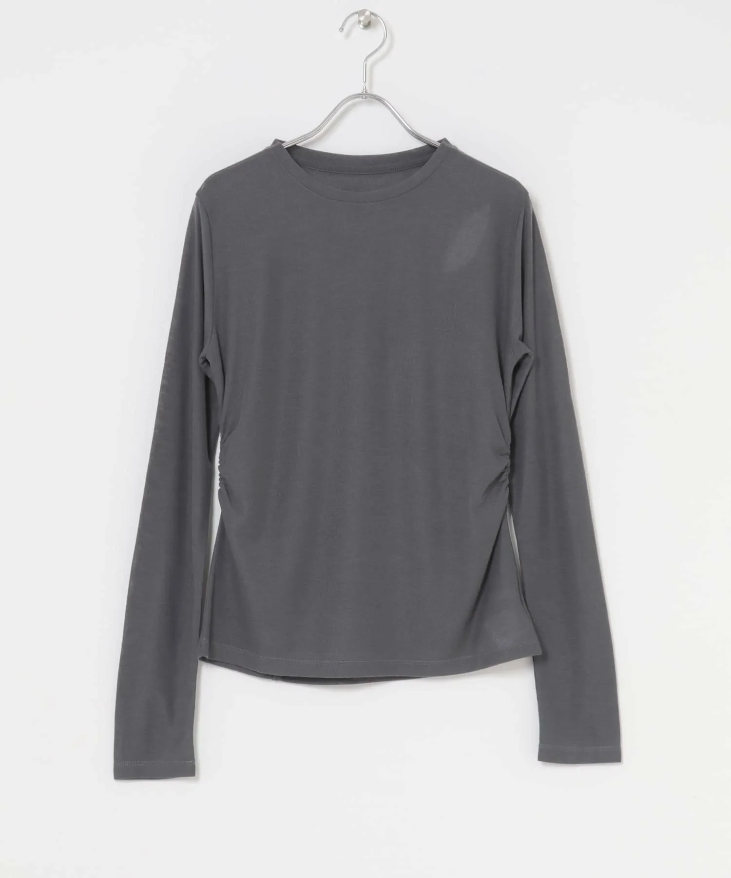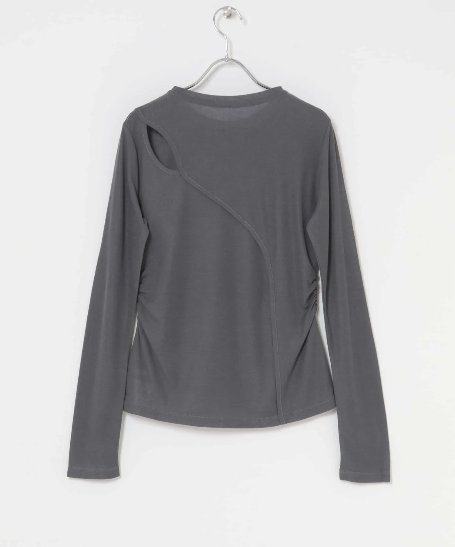 Хотя на первый взгляд она может показаться простой футболкой с длинными рукавами, эта футболка имеет умеренно прозрачную ребристую ткань, создающую женственный образ. Уникальный дизайн спинки, а также вырезы на плечах, позволяют слегка обнажить кожу. Эту вещь можно носить как основную одежду или как нижний слой.