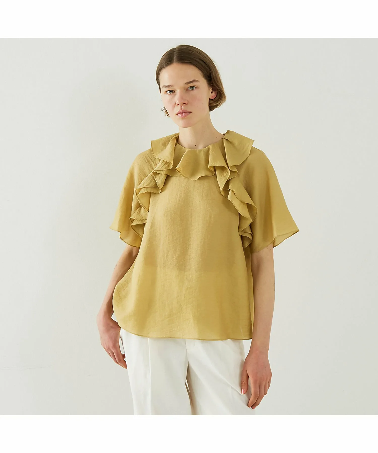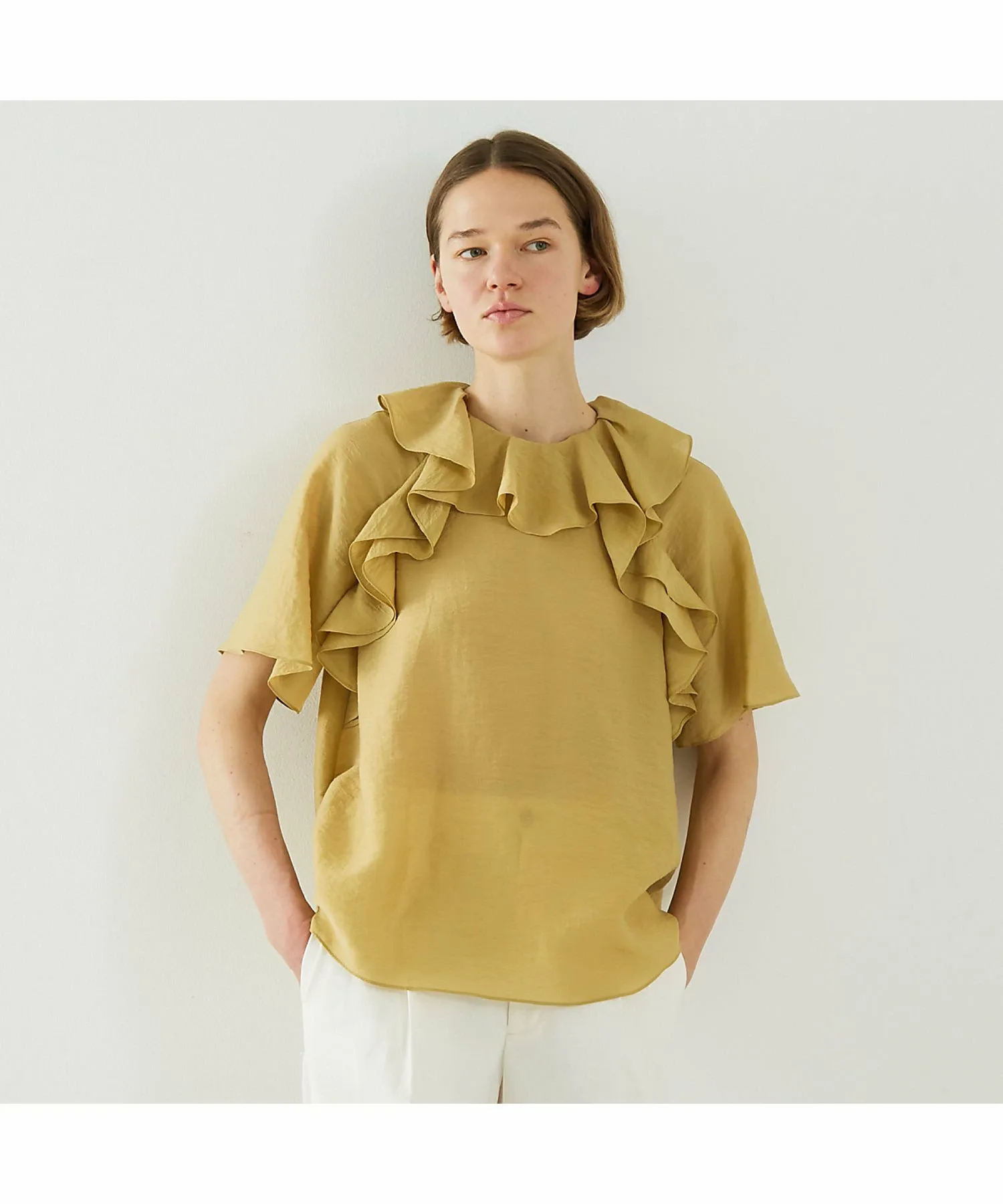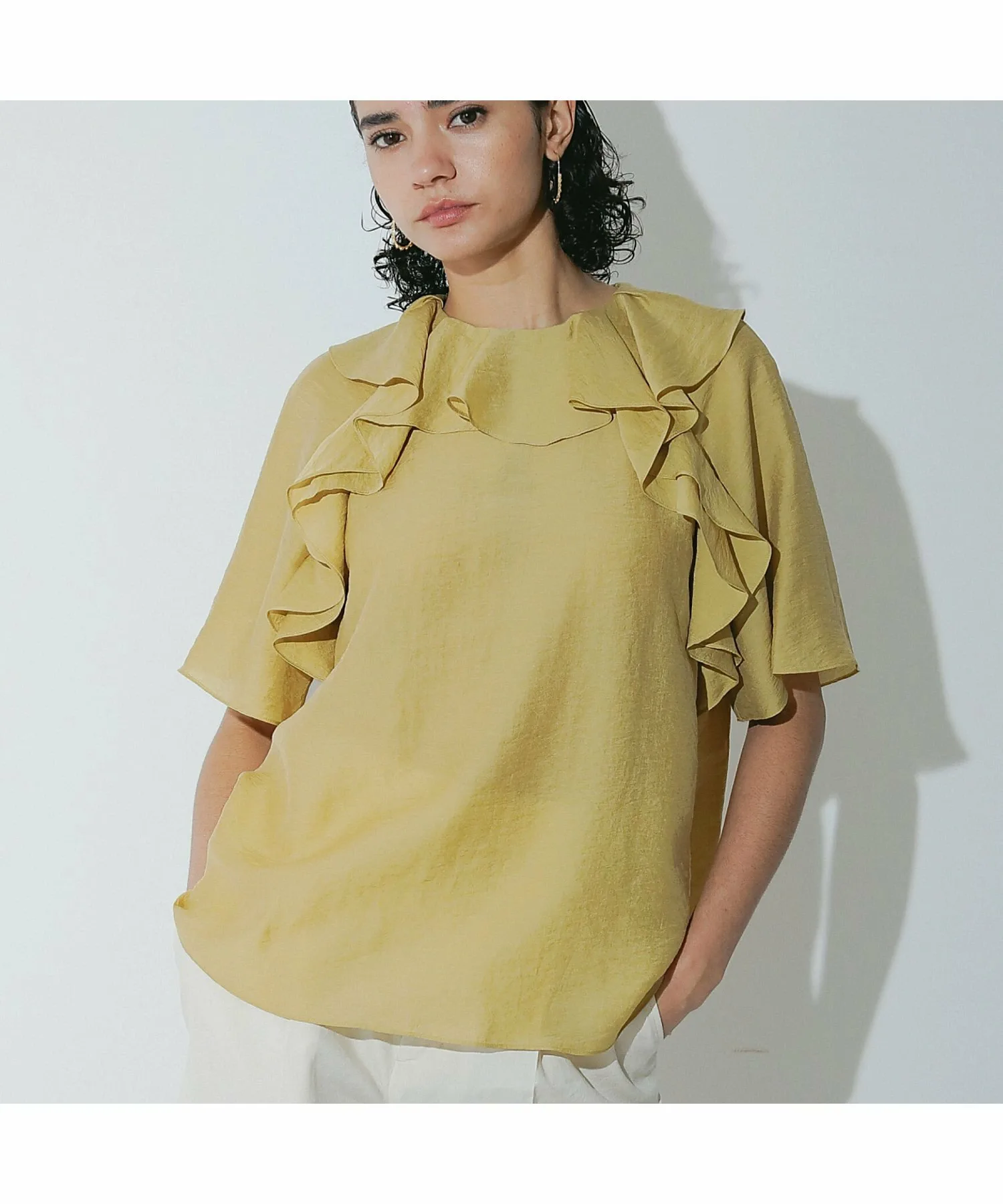 Эта блузка украшена эффектными объемными оборками, которые добавляют образу гламура. Изготовленная из легкого, дышащего материала, она прохладна и удобна в ношении даже весной и летом. Ее удачный дизайн прекрасно сочетается с простыми брюками и юбками, создавая стильный и модный образ. Эта универсальная вещь идеально подходит для повседневной носки, делового стиля и даже для неформальных прогулок. [Примечания] Изображения товара могут отличаться от реальных цветов в зависимости от условий освещения и настроек вашего компьютера. Обратите внимание. Изображения товара являются образцами. Характеристики и отделка могут незначительно отличаться от реального продукта. Размеры указаны только для справки. Этот товар нельзя приобрести вместе с другими товарами, оформленными по предварительному заказу, или обычными товарами. Доставка может быть задержана или ускорена в зависимости от наличия товара на складе.