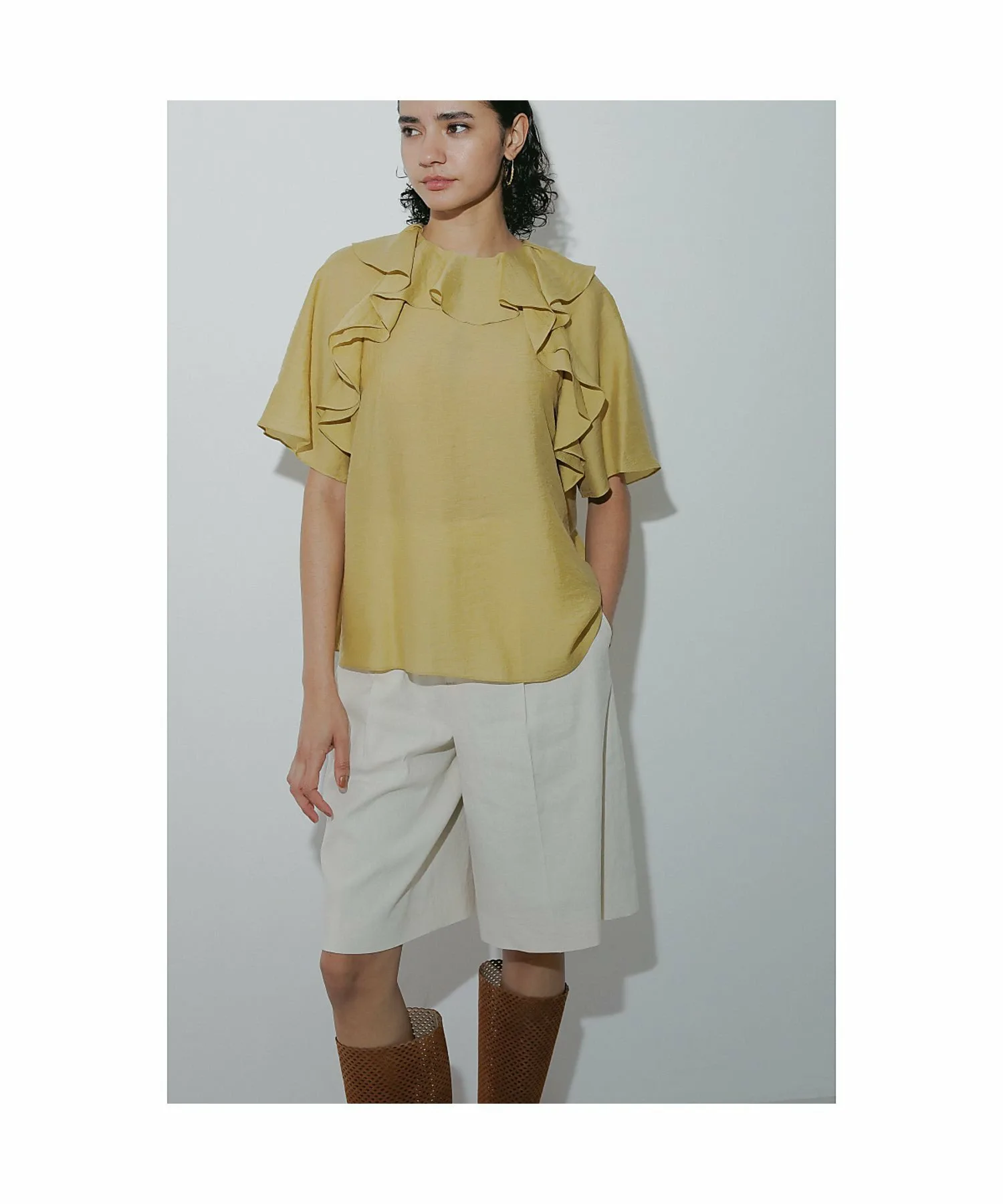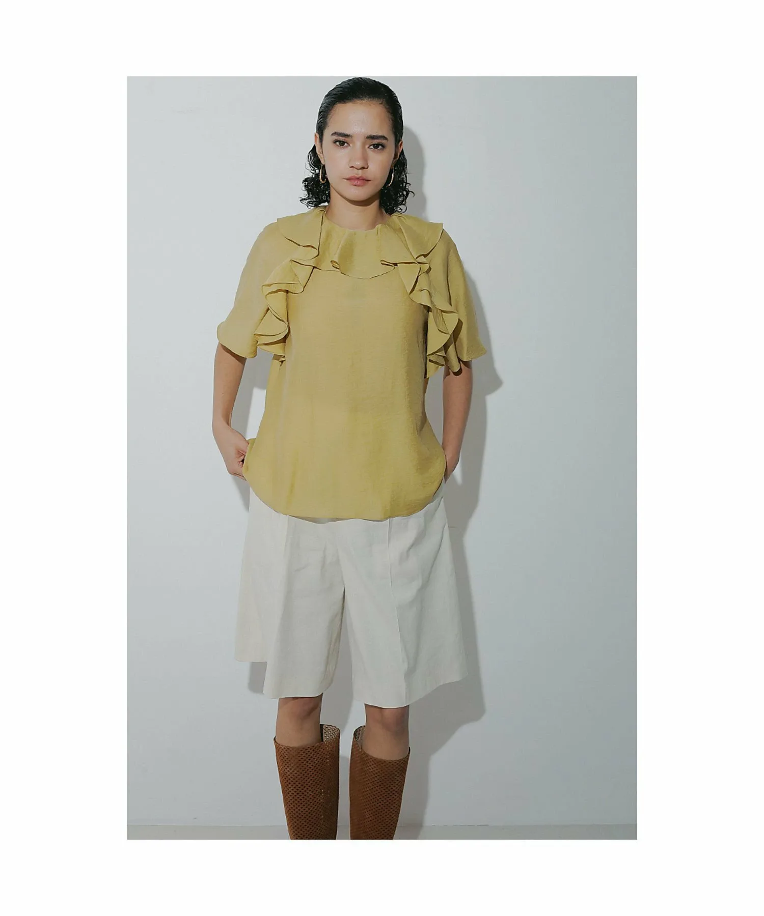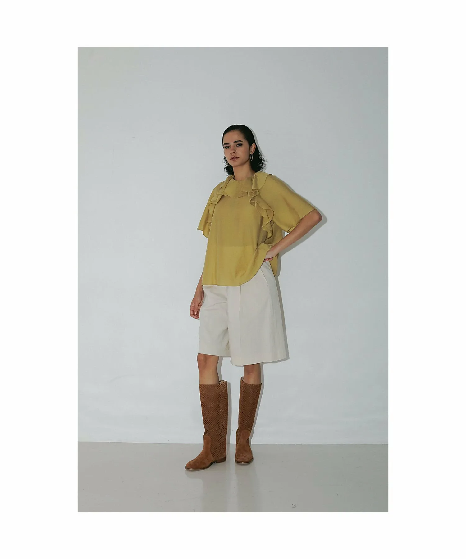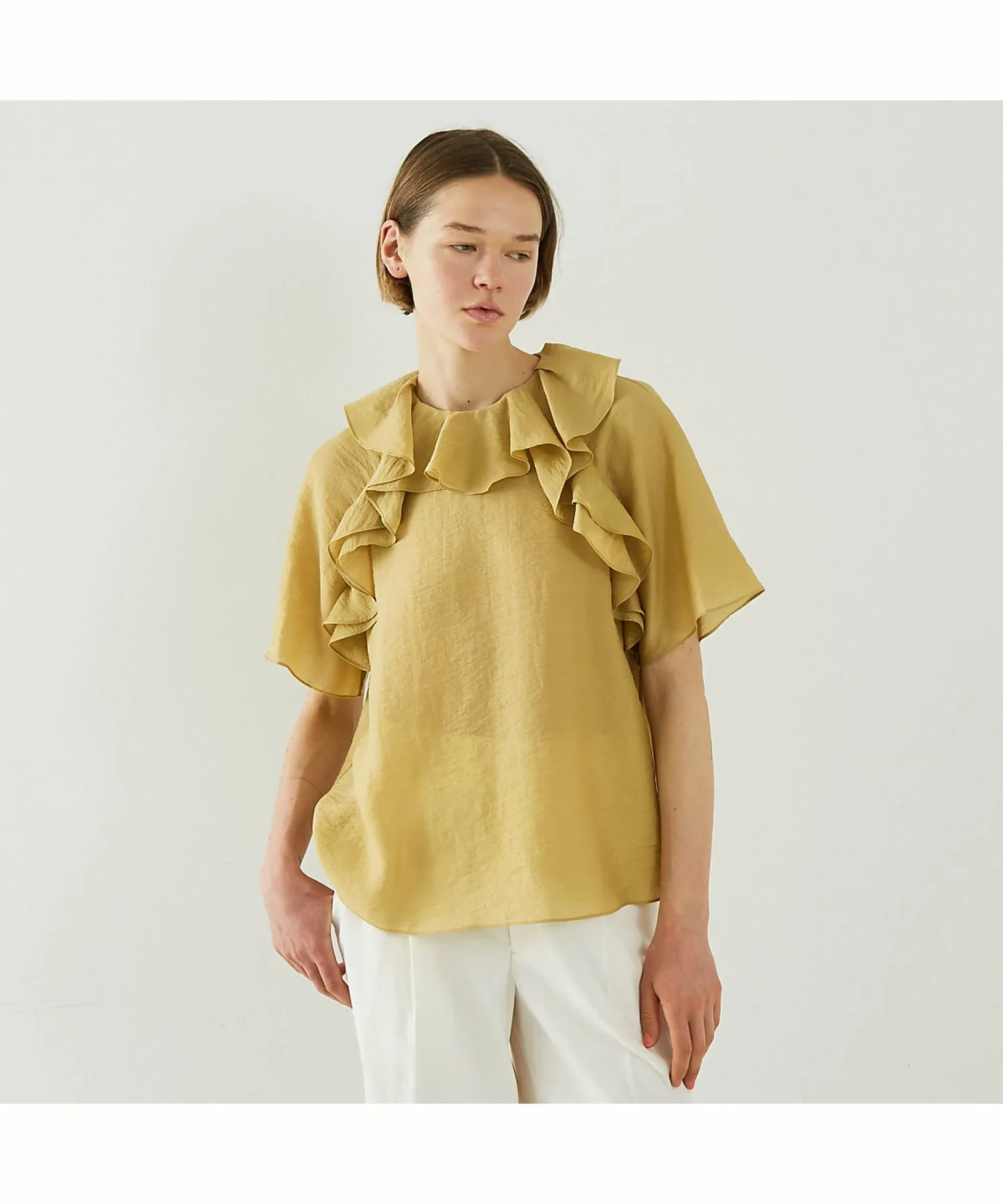 Эта блузка украшена эффектными объемными оборками, которые добавляют образу гламура. Изготовленная из легкого, дышащего материала, она прохладна и удобна в ношении даже весной и летом. Ее удачный дизайн прекрасно сочетается с простыми брюками и юбками, создавая стильный и модный образ. Эта универсальная вещь идеально подходит для повседневной носки, делового стиля и даже для неформальных прогулок. [Примечания] Изображения товара могут отличаться от реальных цветов в зависимости от условий освещения и настроек вашего компьютера. Обратите внимание. Изображения товара являются образцами. Характеристики и отделка могут незначительно отличаться от реального продукта. Размеры указаны только для справки. Этот товар нельзя приобрести вместе с другими товарами, оформленными по предварительному заказу, или обычными товарами. Доставка может быть задержана или ускорена в зависимости от наличия товара на складе.